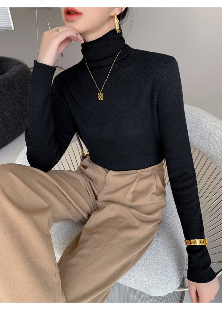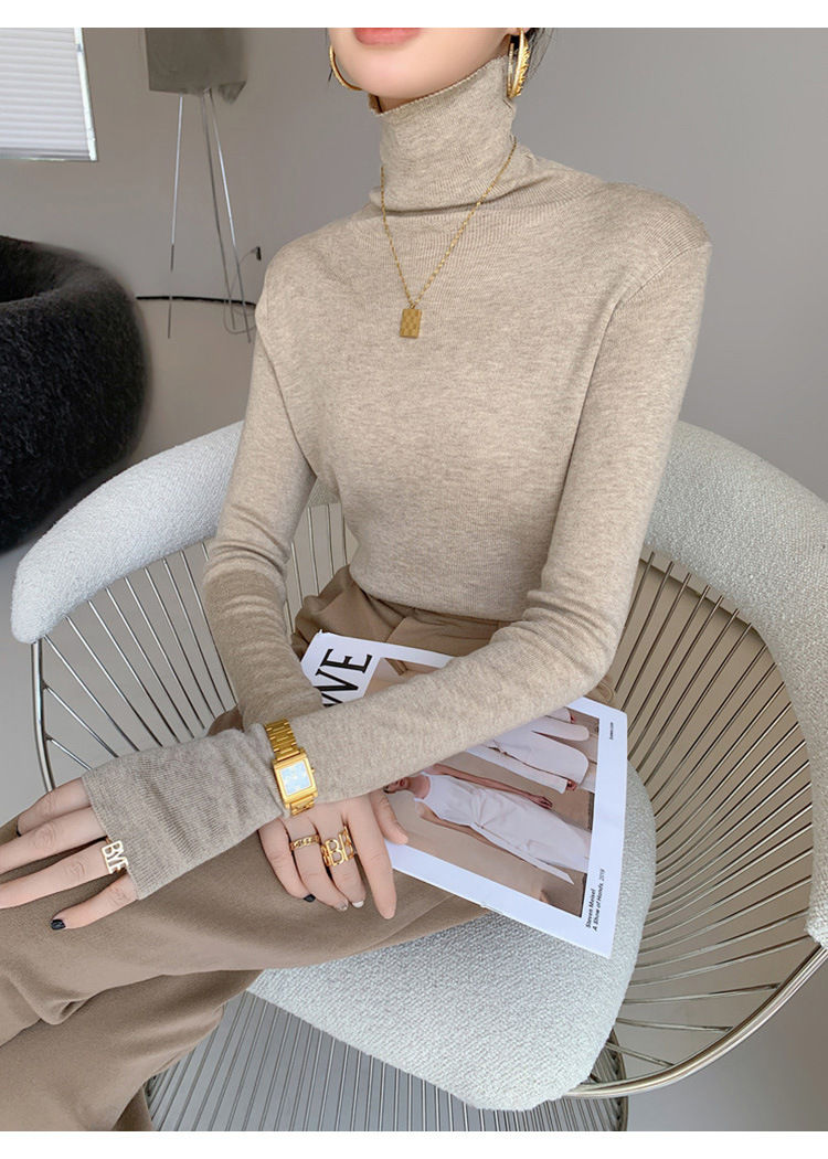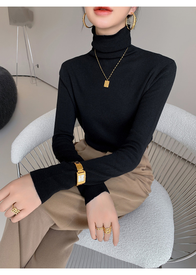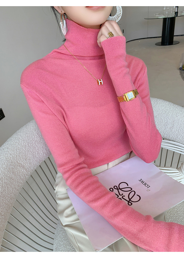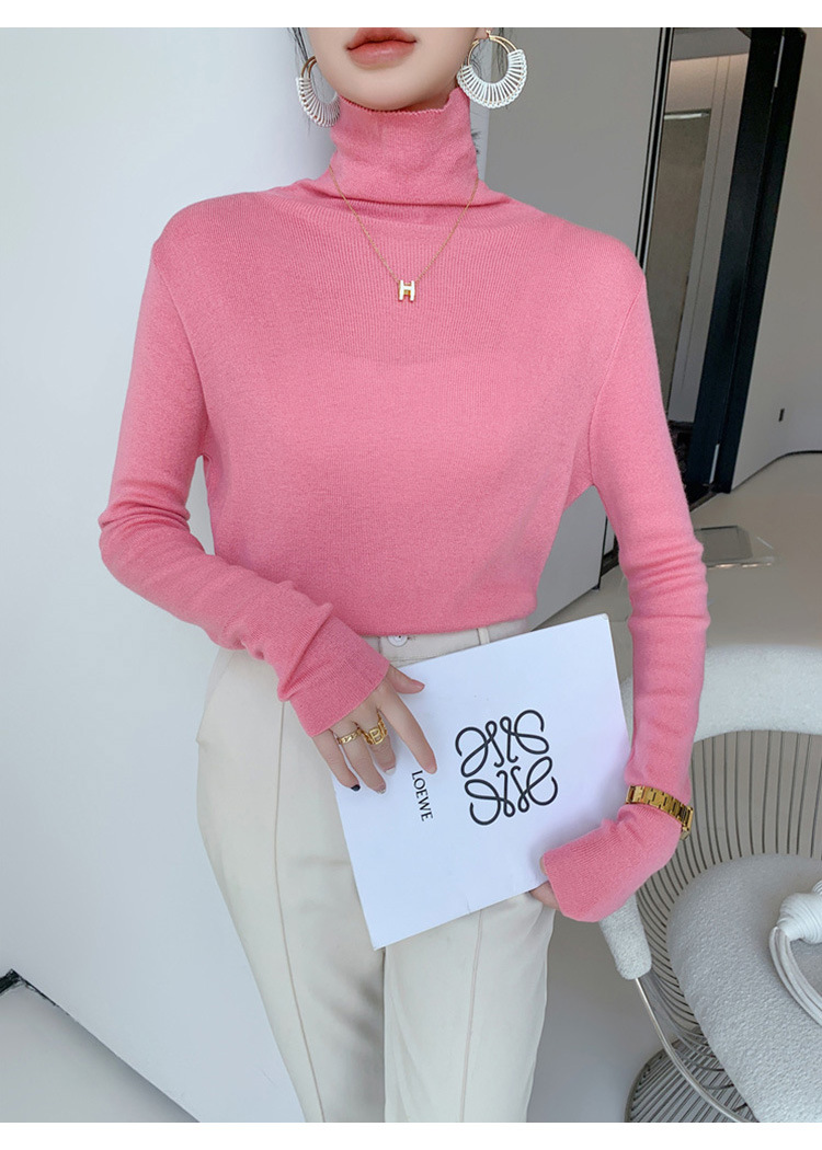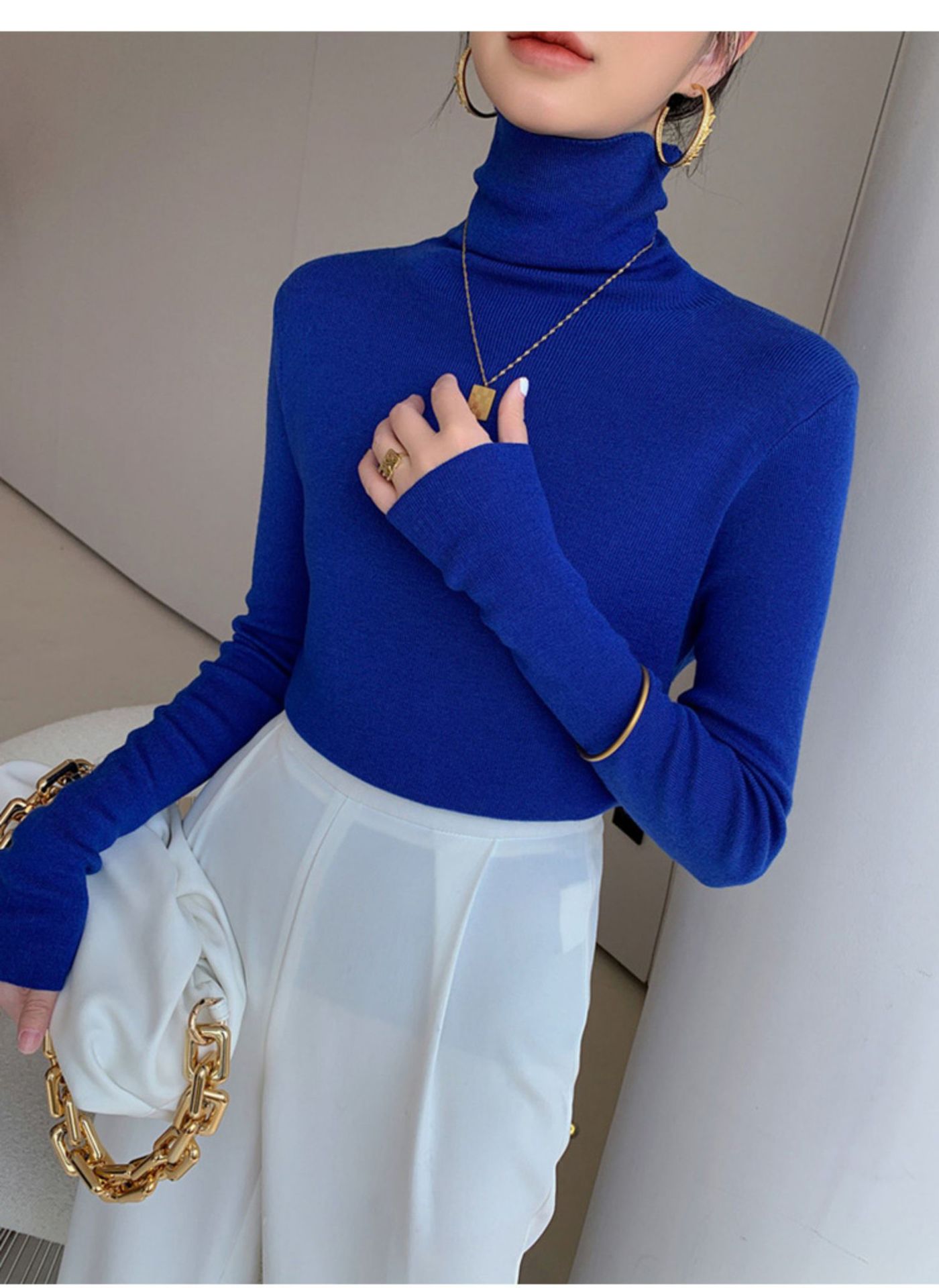 18 색 기본 조커 2024 가을과 겨울 내면베이스 셔츠 더미 높은 칼라 슬림 스웨터 탑 여성용 긴 소매