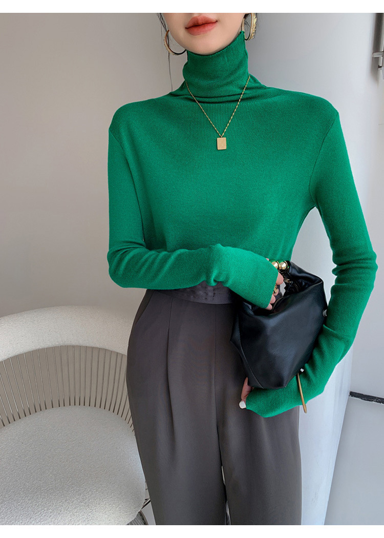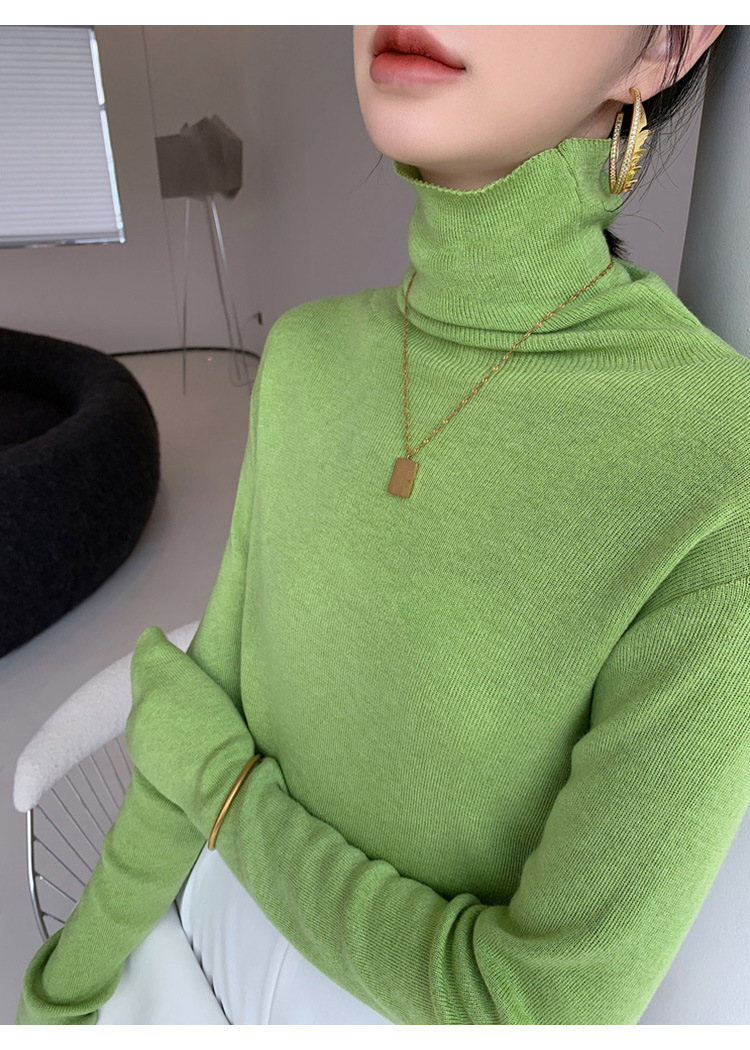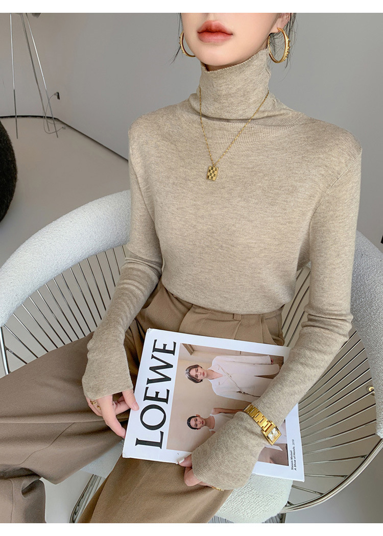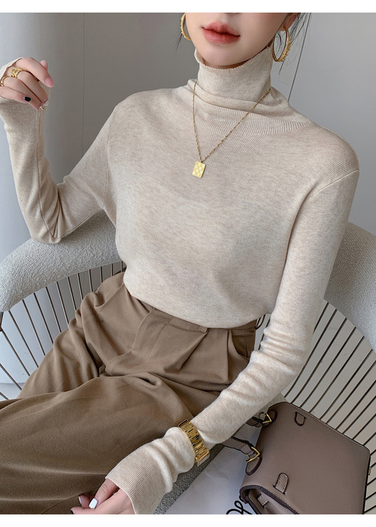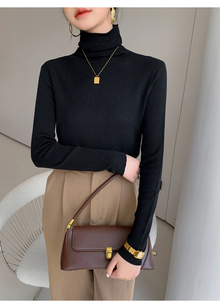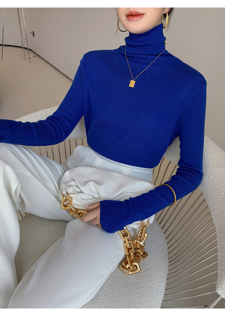 18 색 기본 조커 2024 가을과 겨울 내면베이스 셔츠 더미 높은 칼라 슬림 스웨터 탑 여성용 긴 소매