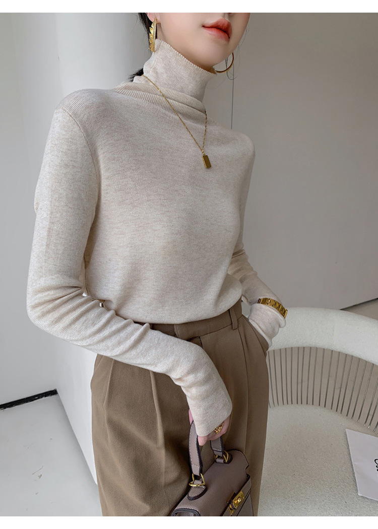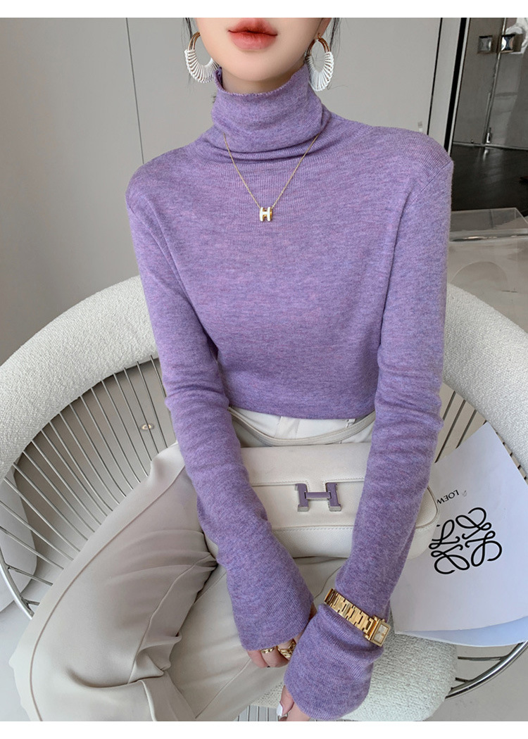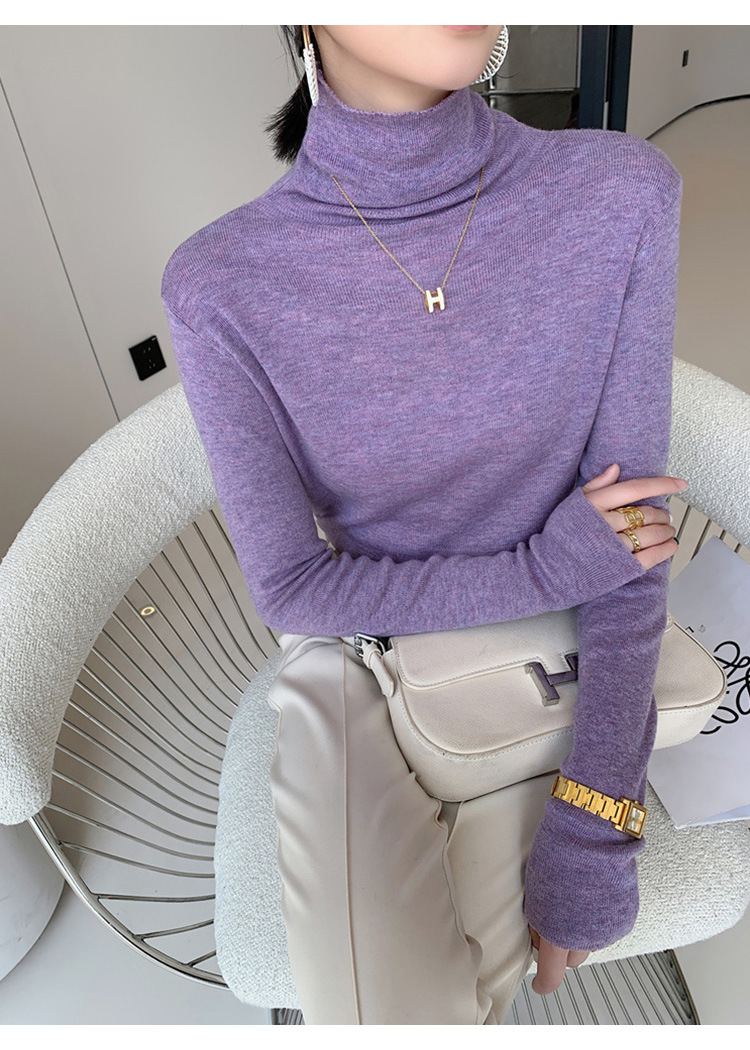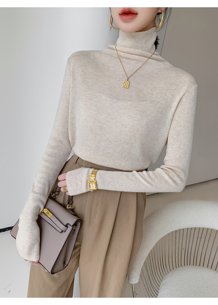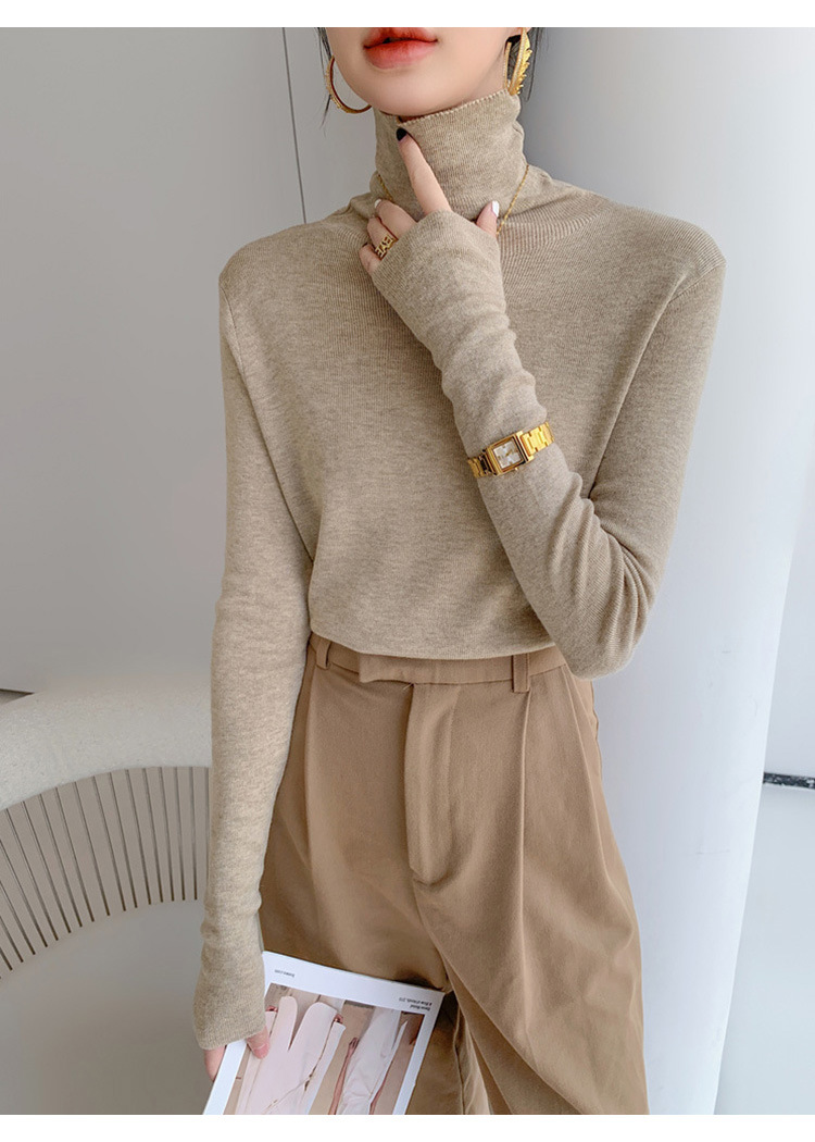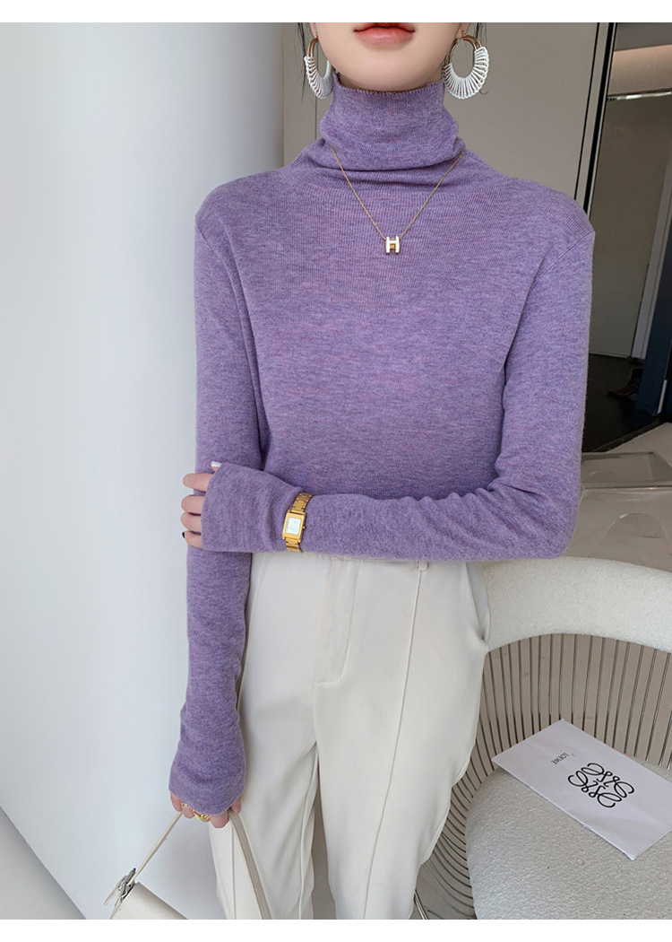 18 색 기본 조커 2024 가을과 겨울 내면베이스 셔츠 더미 높은 칼라 슬림 스웨터 탑 여성용 긴 소매