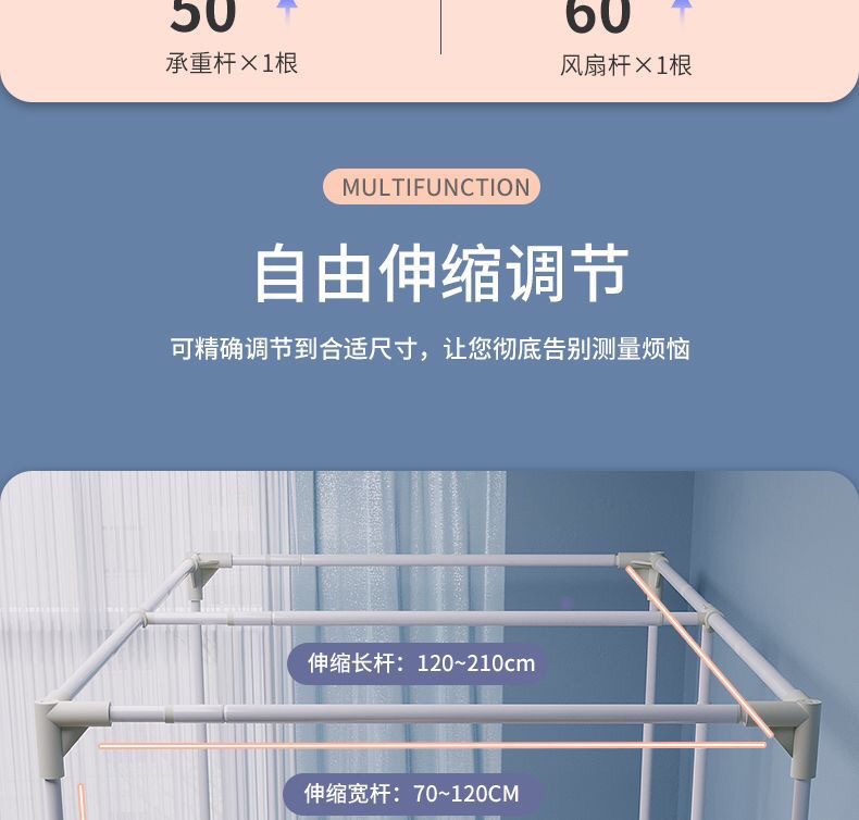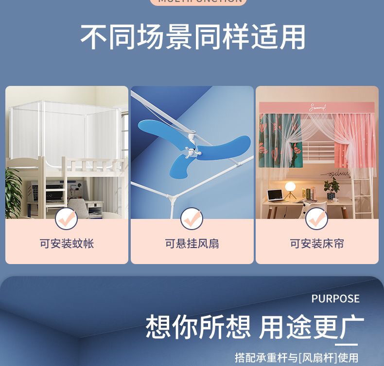 烤漆可伸缩支架学生宿舍蚊帐支架单人床上下铺床帘支架加粗加厚