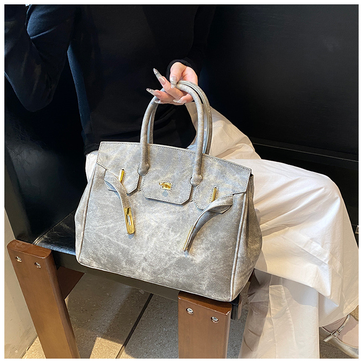 국경 간 프랑스 복고풍 대용량 플래티넘 가방 여성의 2024 새로운 스타일 간단한 하이 엔드 질감 핸드 숄더 크로스 바디 백스토어 가기