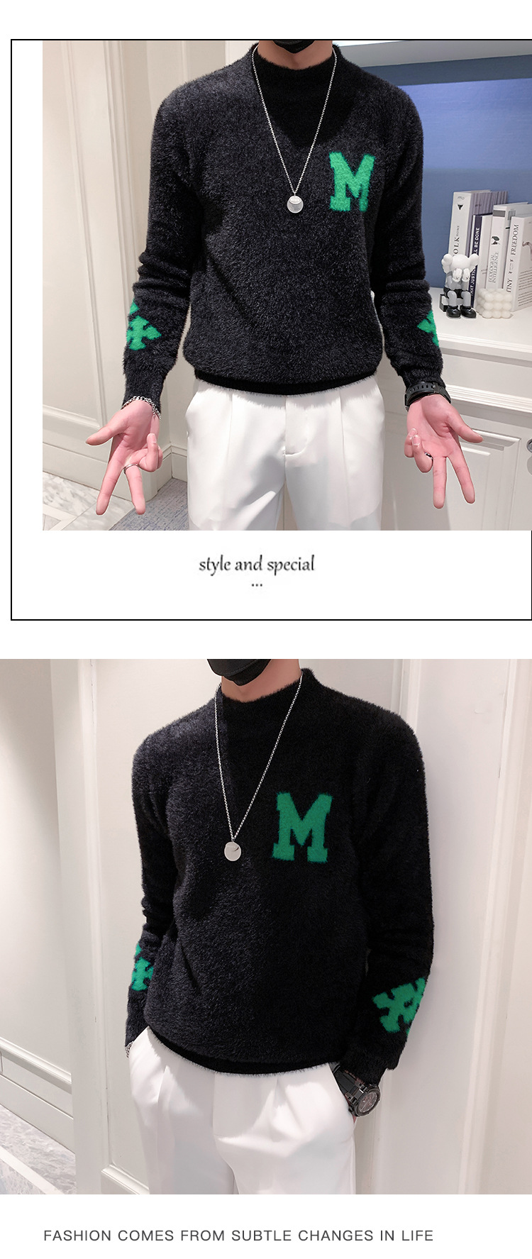 2024 모의 터틀넥 스웨터 남성용 트렌디 브랜드 한국 스타일 슬림 핏 터틀넥 스웨터 가을 캐주얼 내베이스 스웨터스토어 가기