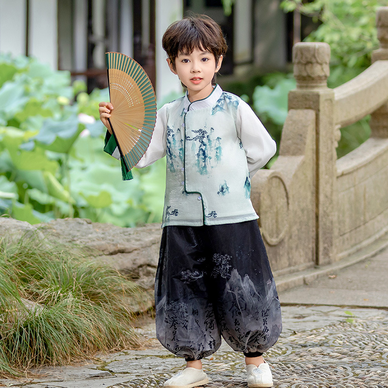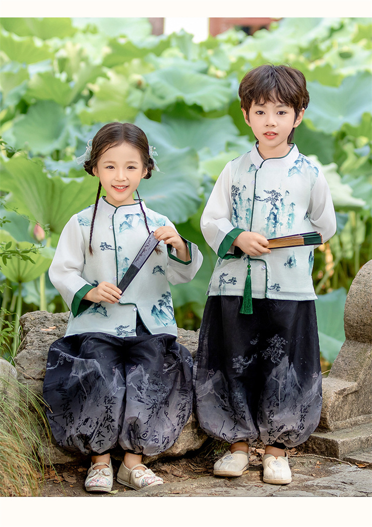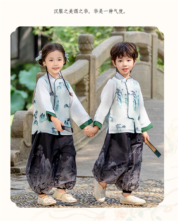 소년 소녀 한푸 가을 2024 새로운 어린이 하이 엔드 탕 세트 국가 스타일 어린 소녀의 고대 세트 중추절 공연 세트