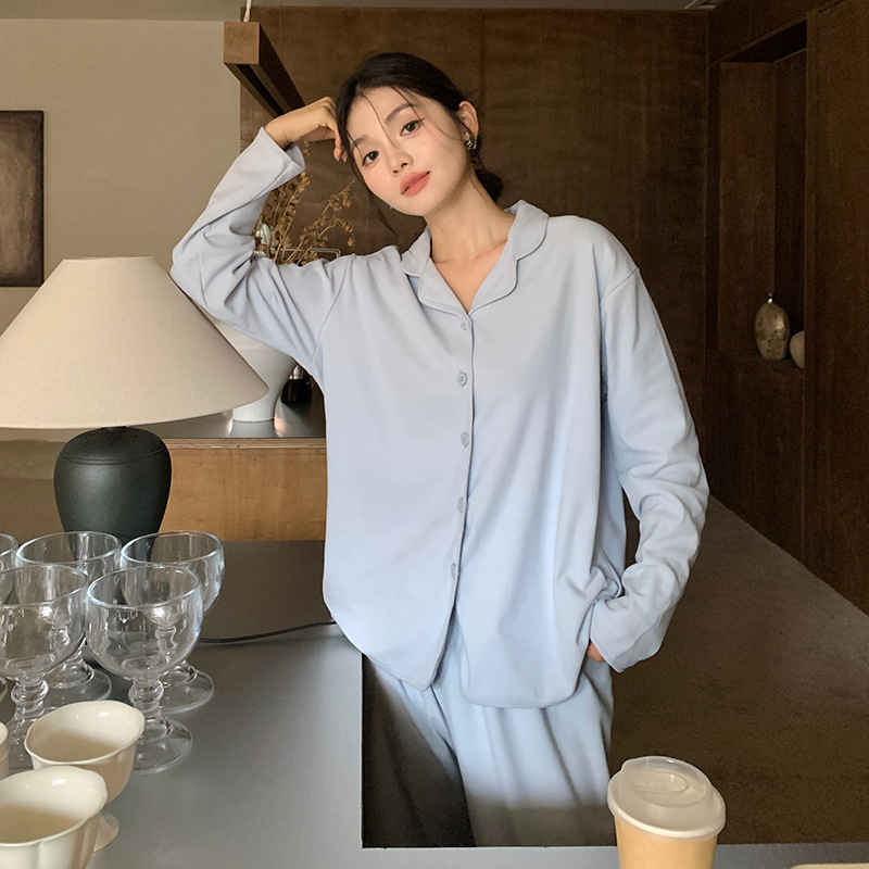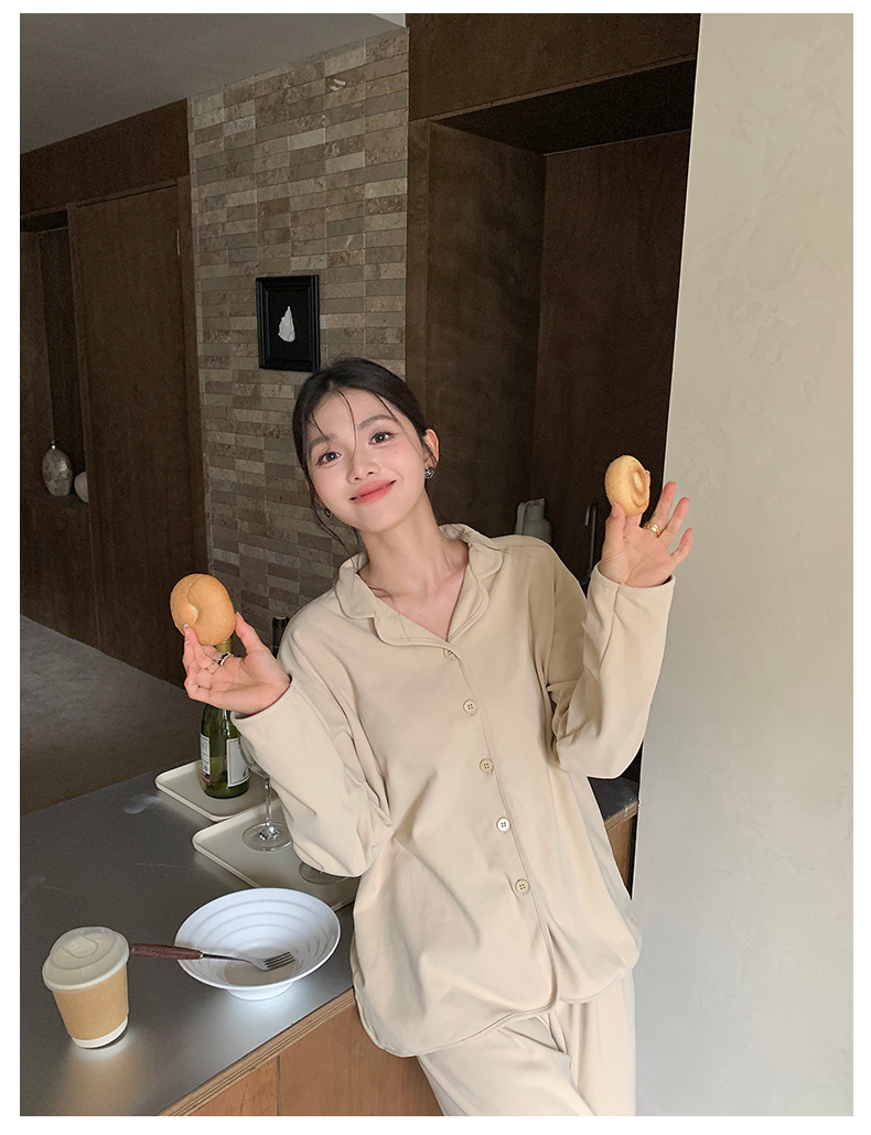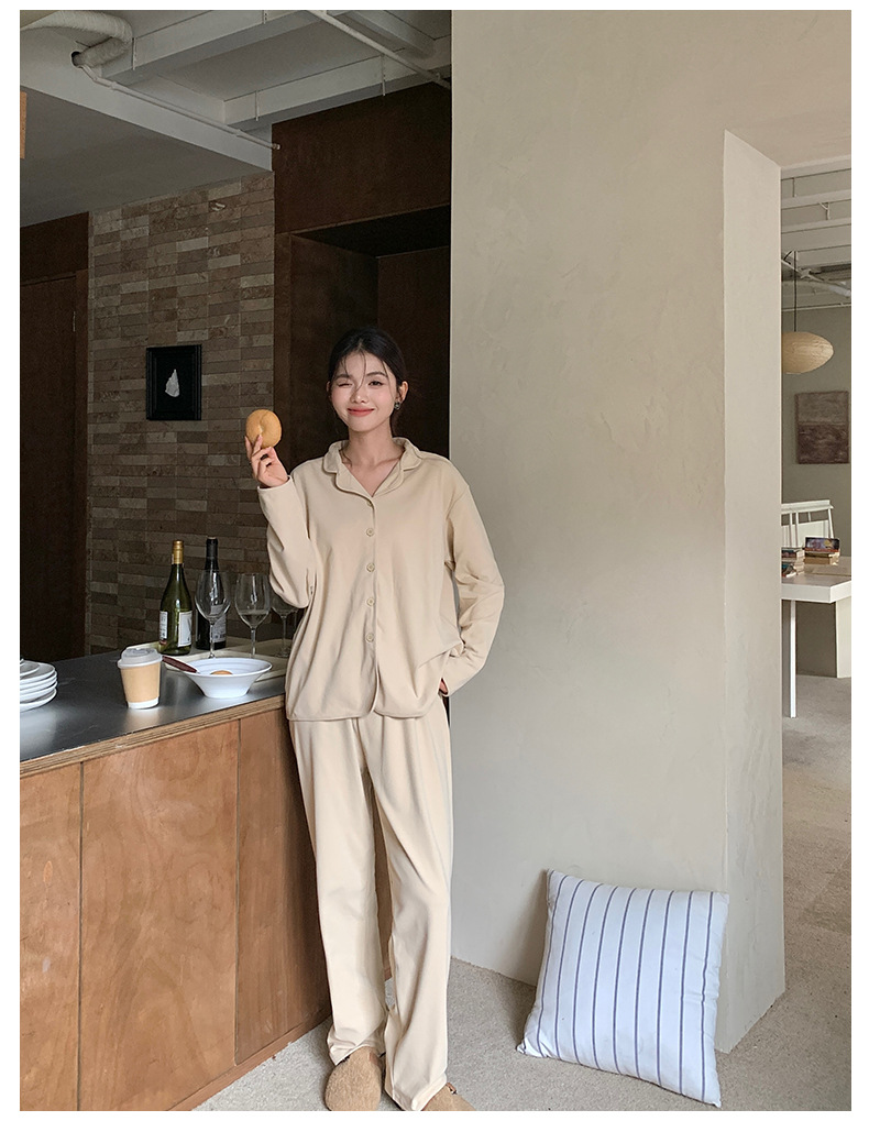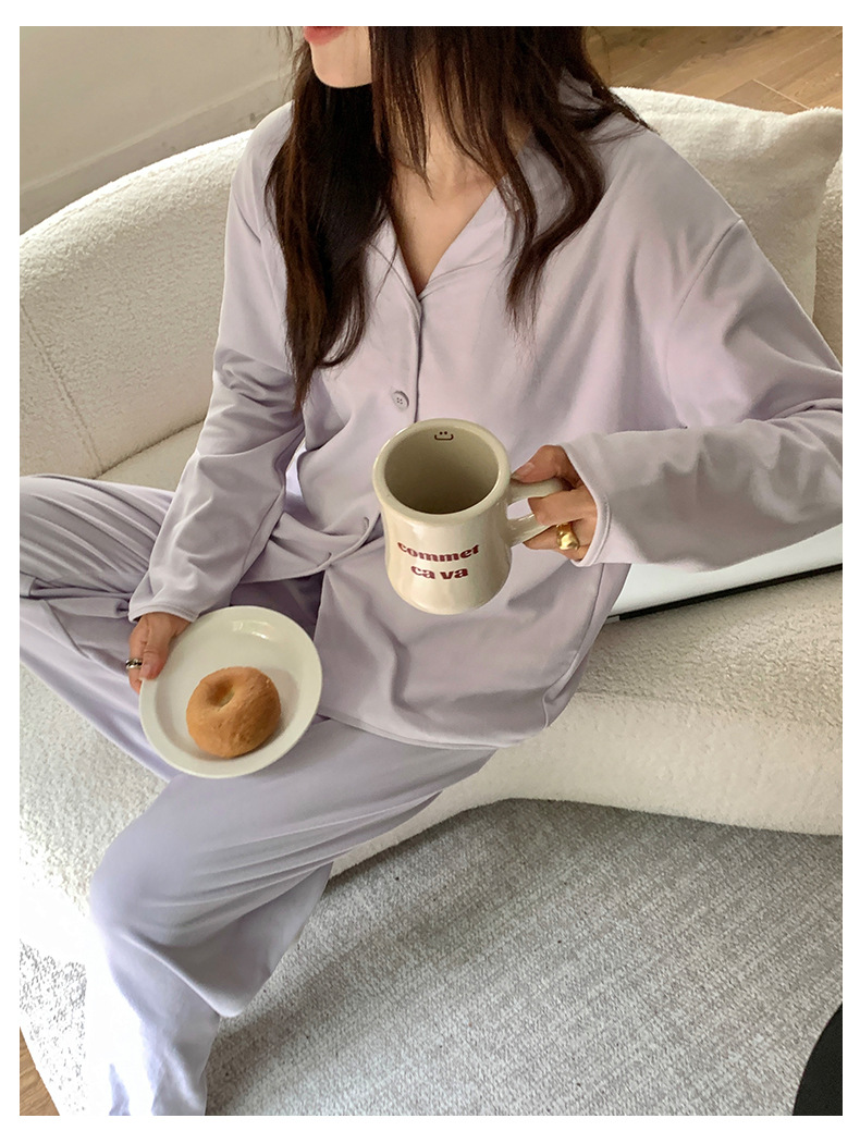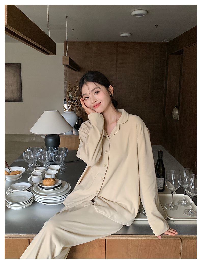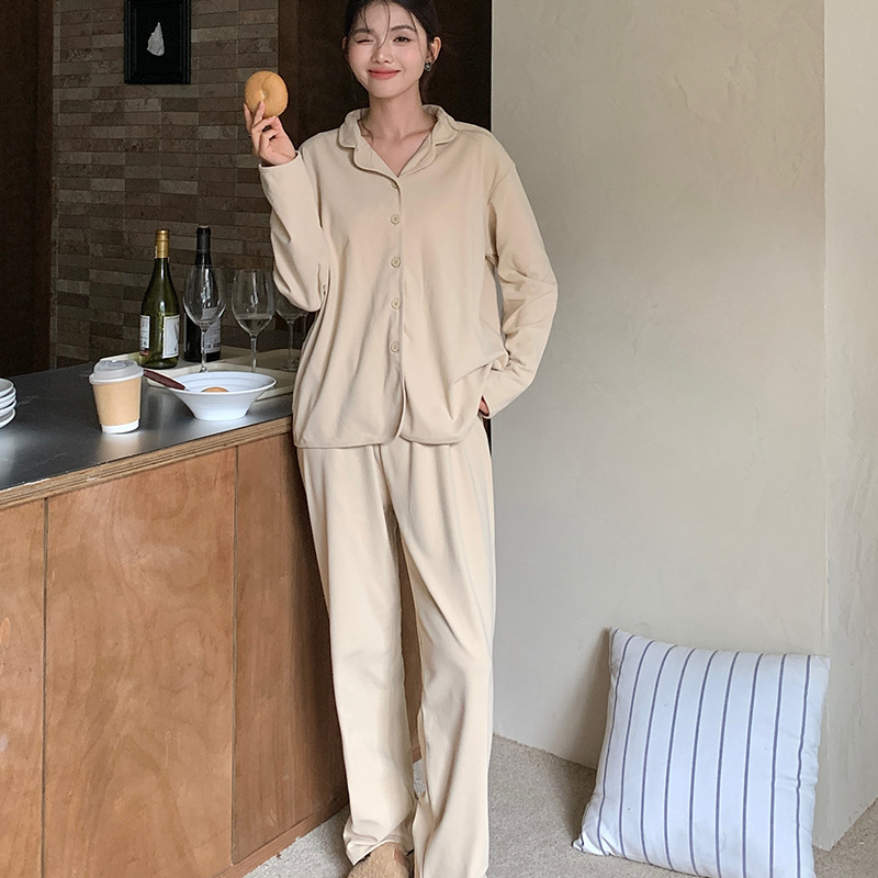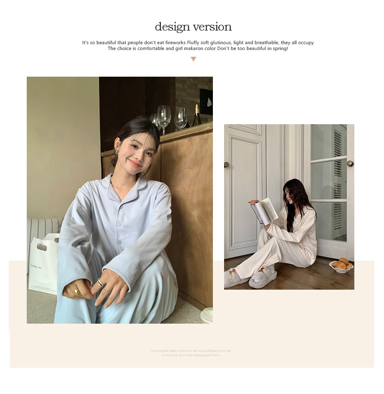 모리시마 가을, 겨울 솔리드 컬러 여성 홈웨어 버튼 라펠 긴팔 탑과 바지 정장 루즈한 겉옷 잠옷스토어 가기