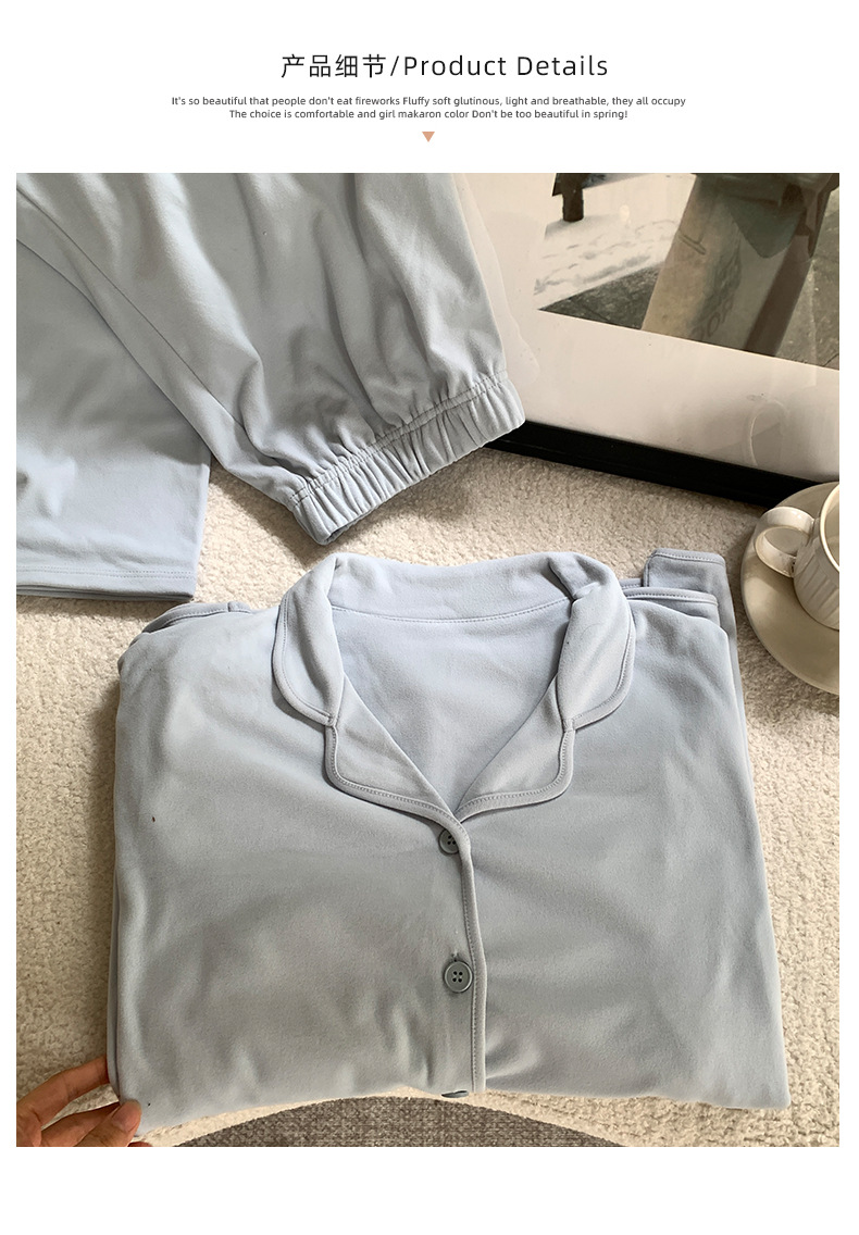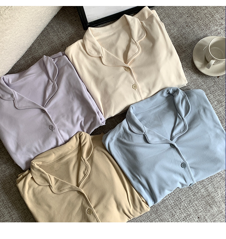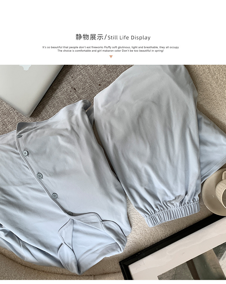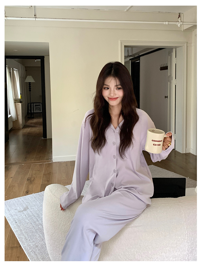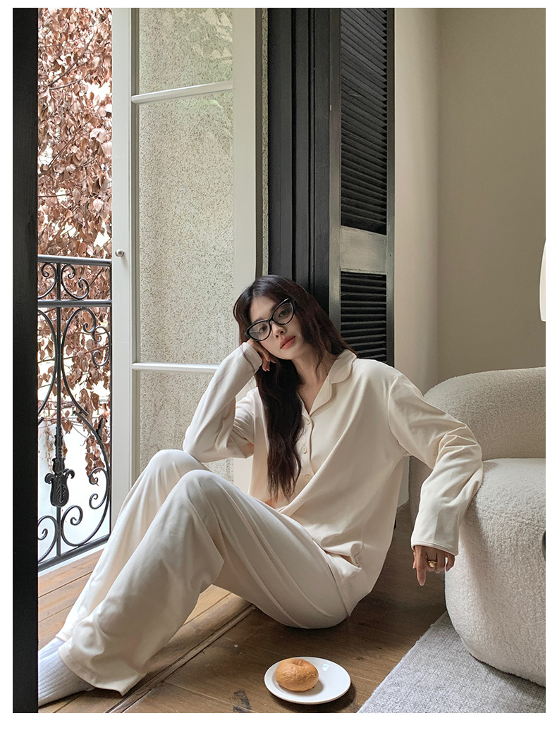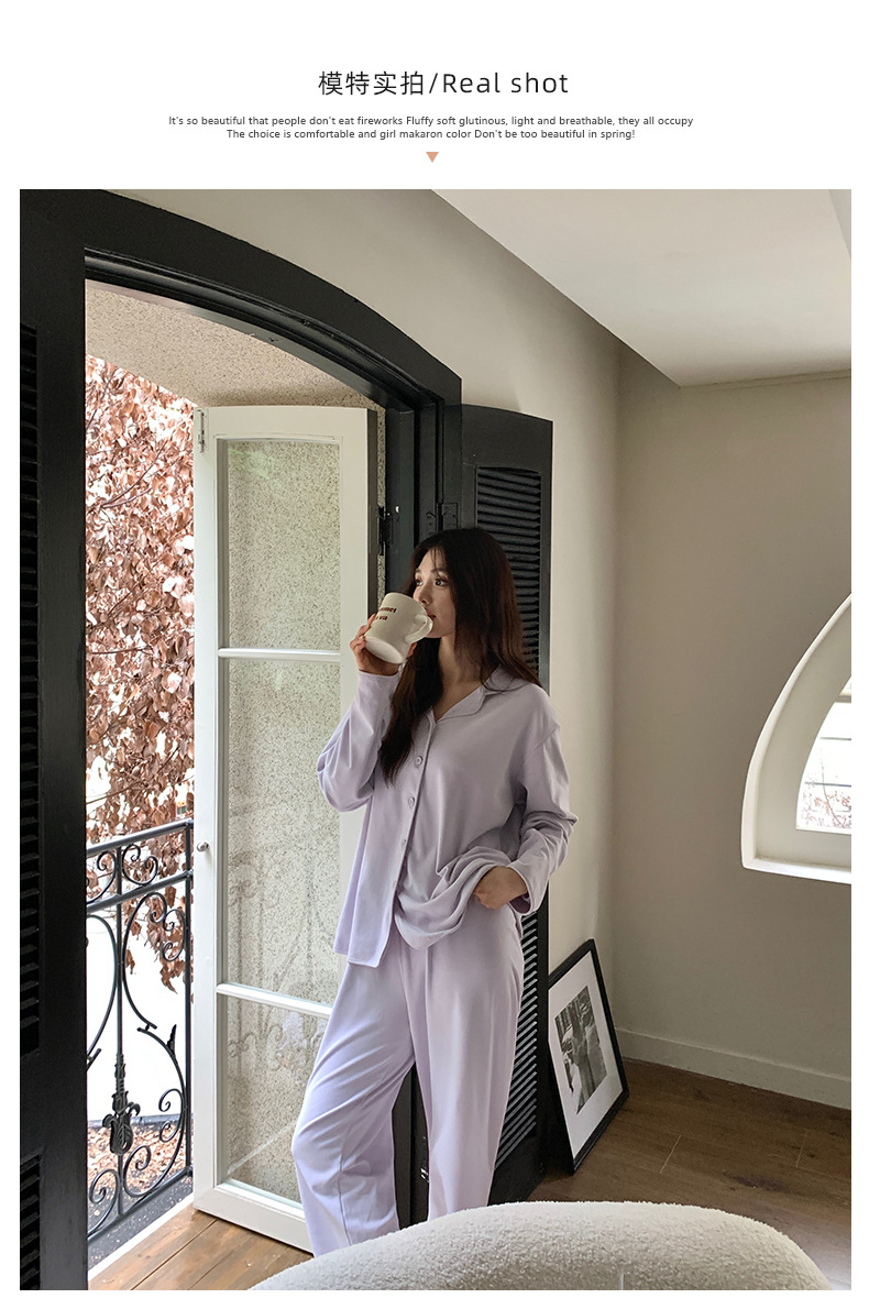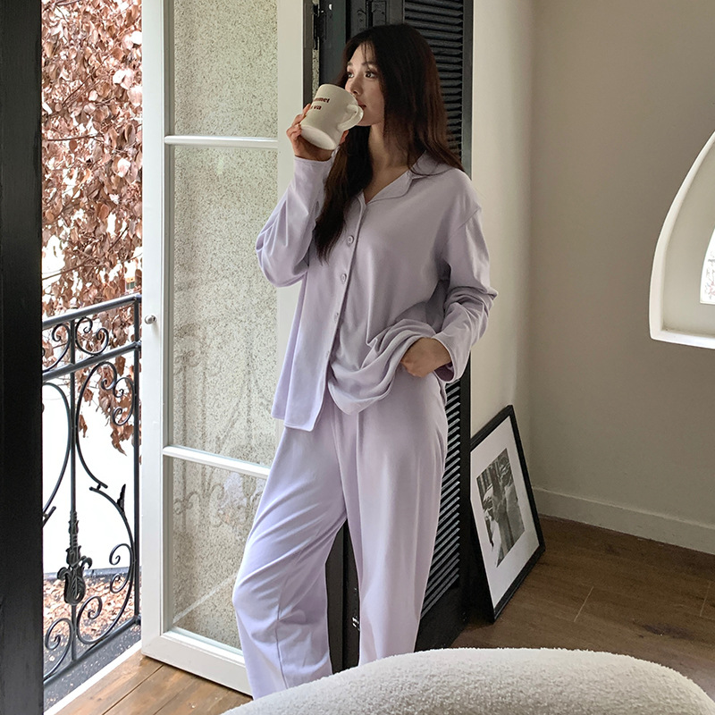 모리시마 가을, 겨울 솔리드 컬러 여성 홈웨어 버튼 라펠 긴팔 탑과 바지 정장 루즈한 겉옷 잠옷스토어 가기