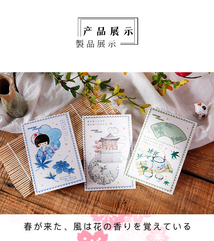 Mu Ran 엽서 핑 베이징 꽃 언어 복사 중국어 텍스트 축복 카드 필기 메시지 카드 장식 감사 카드스토어 가기