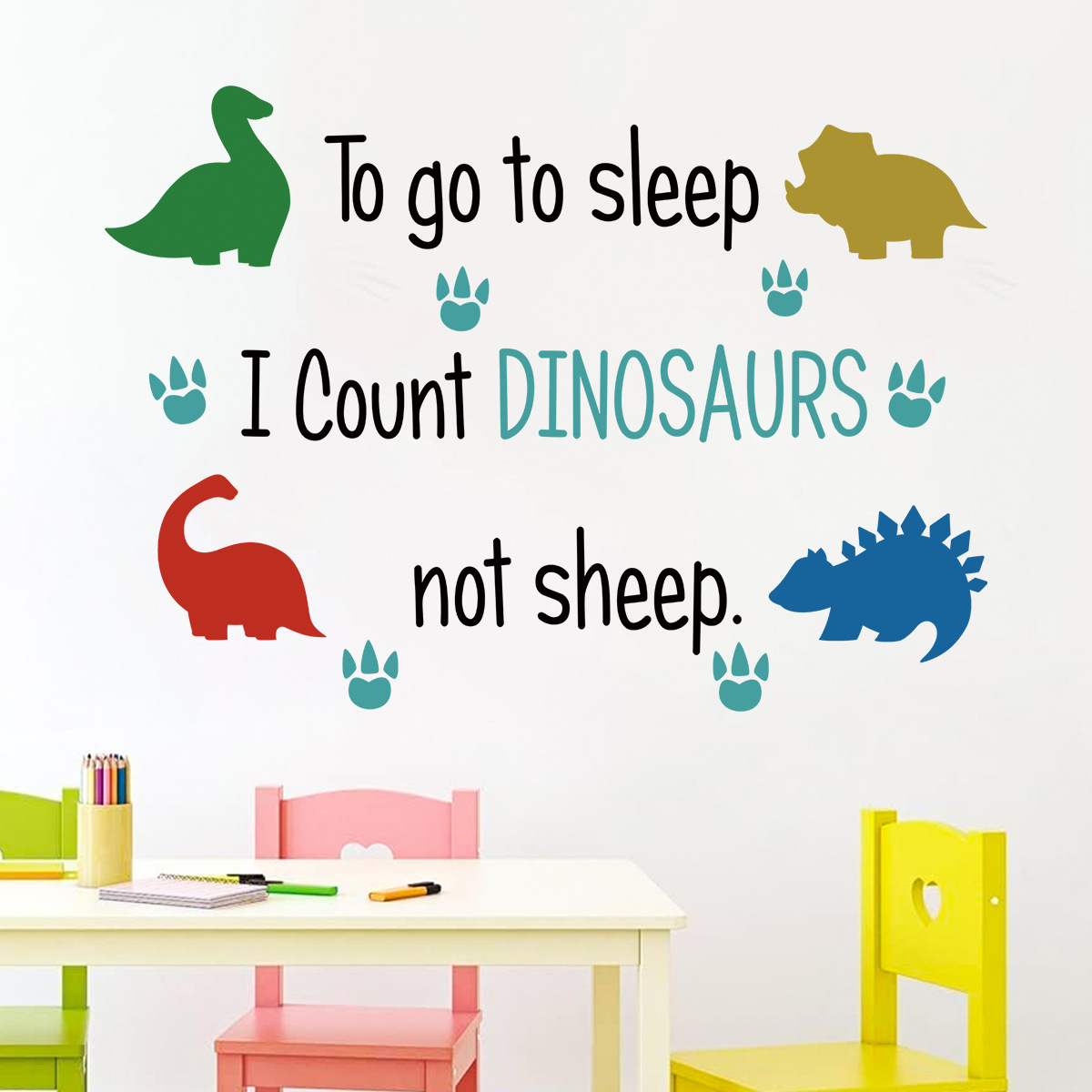 만화 귀여운 작은 공룡 영어 문구 자체 접착 벽 스티커 어린이 방 침실 거실 장식 스티커 BR0907E스토어 가기