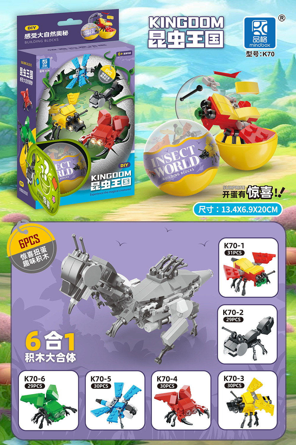 공장 도매 꼬인 계란 빌딩 블록 장난감 곤충 잠자리 동물 과학 및 교육 6 1 퍼즐 빌딩 블록 장난감 박스스토어 가기