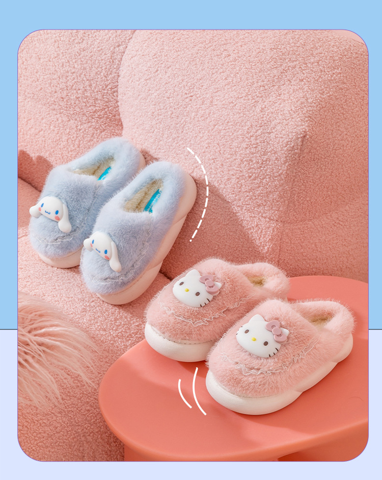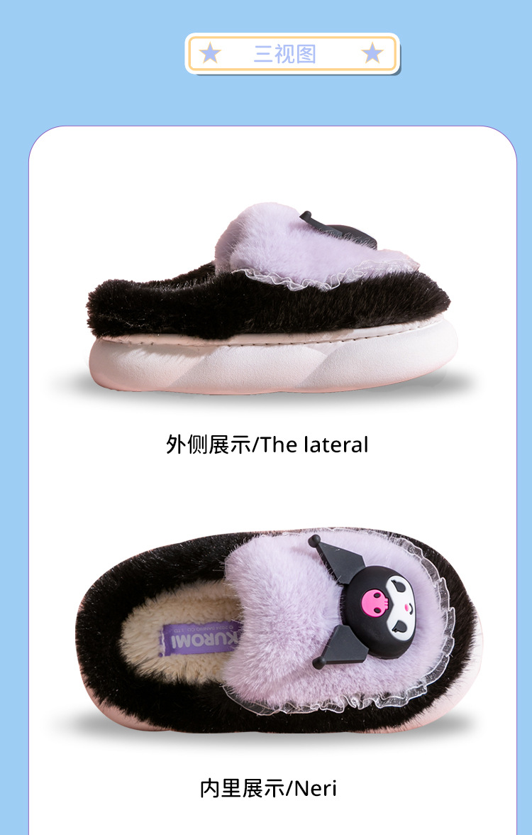 산리오 면화 슬리퍼 두꺼운 바닥 울 플러시 따뜻한 여성의 가을과 겨울 감금 실내 홈 미끄럼 방지 기모 슬리퍼스토어 가기