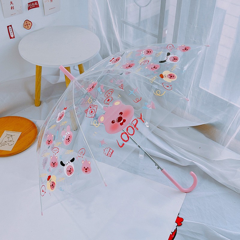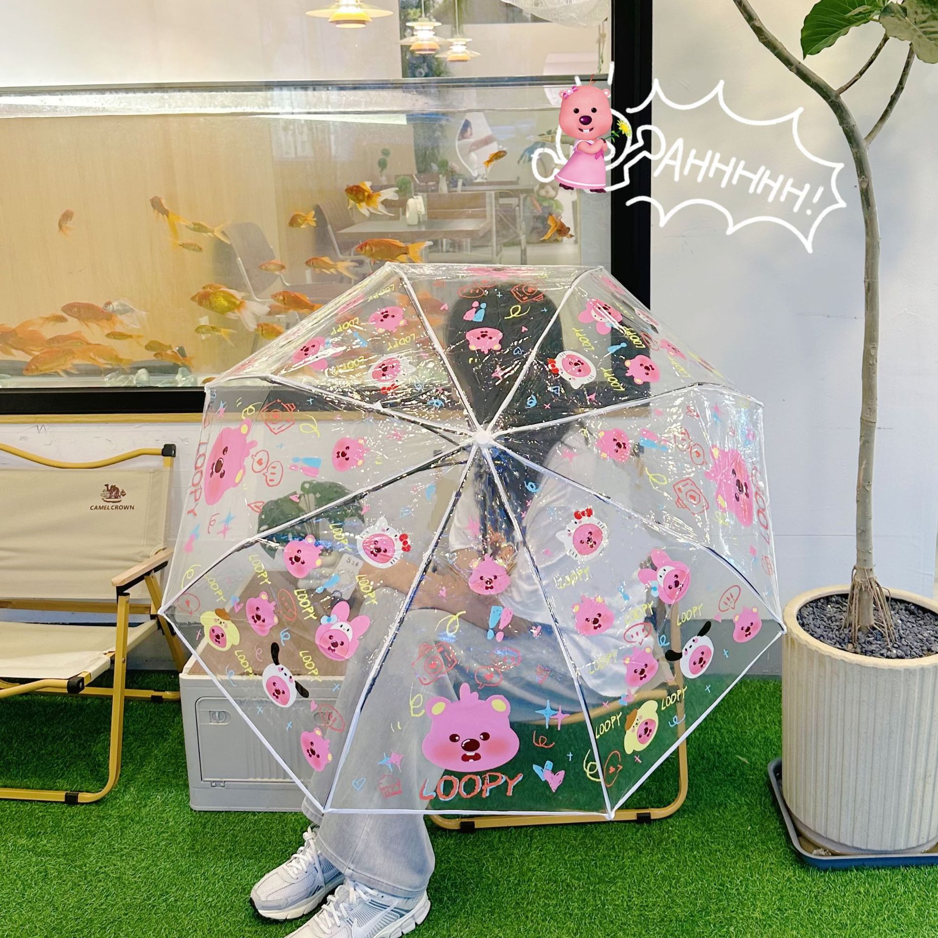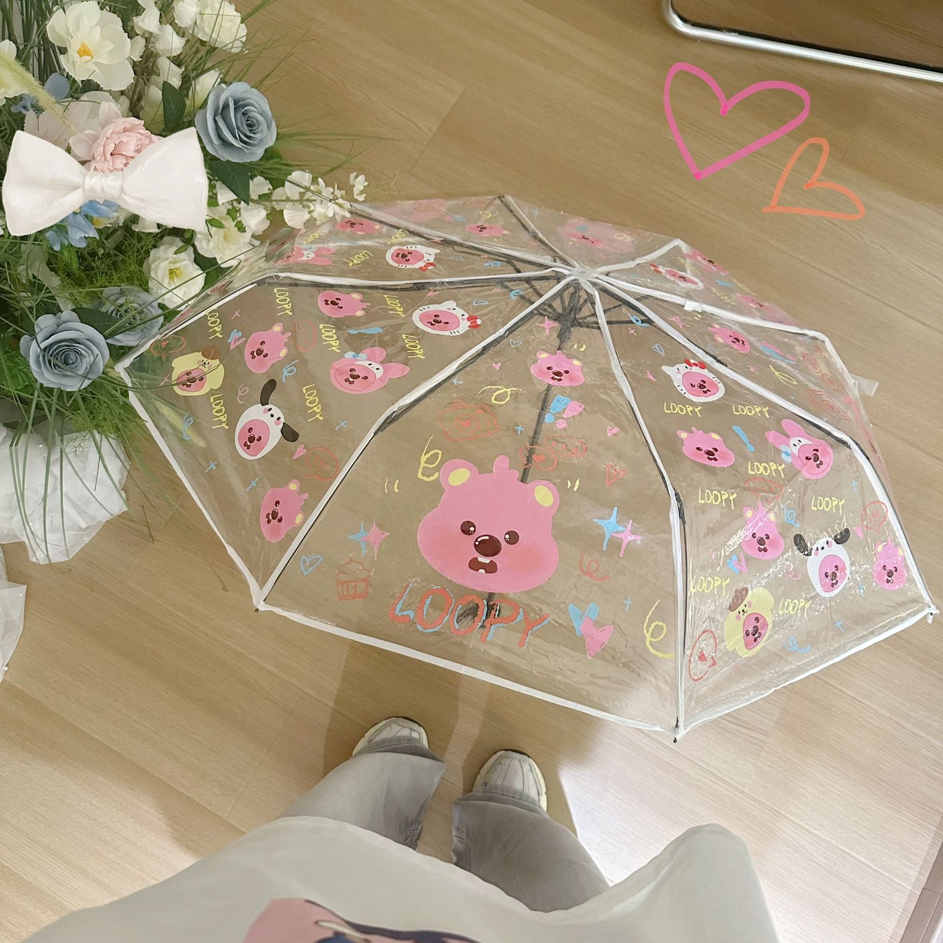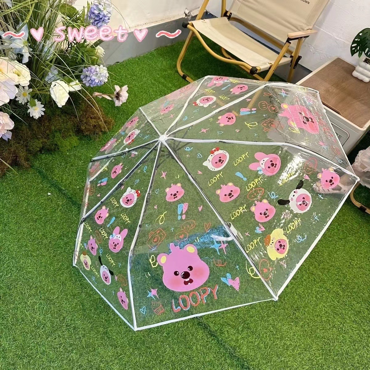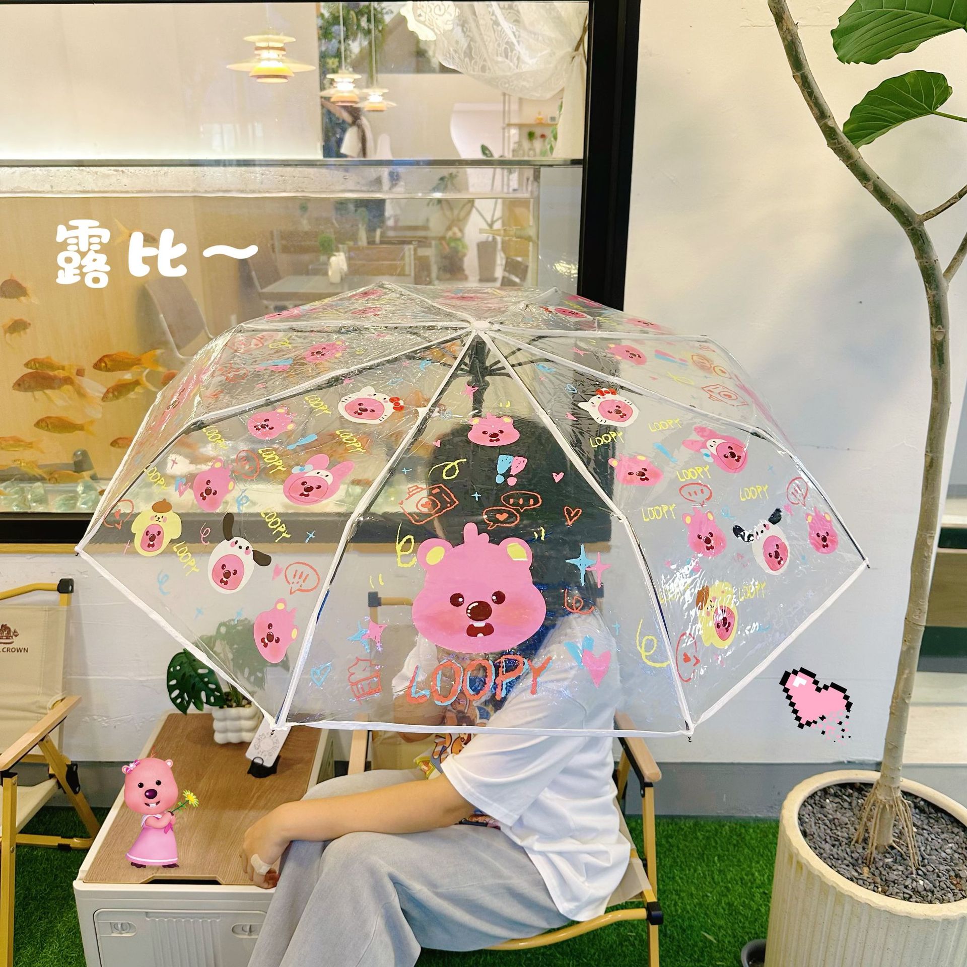비버 루피 자동 접이식 투명 우산 만화 온라인 빨간 우산 학생 귀여운 키즈 Ins 틈새스토어 가기