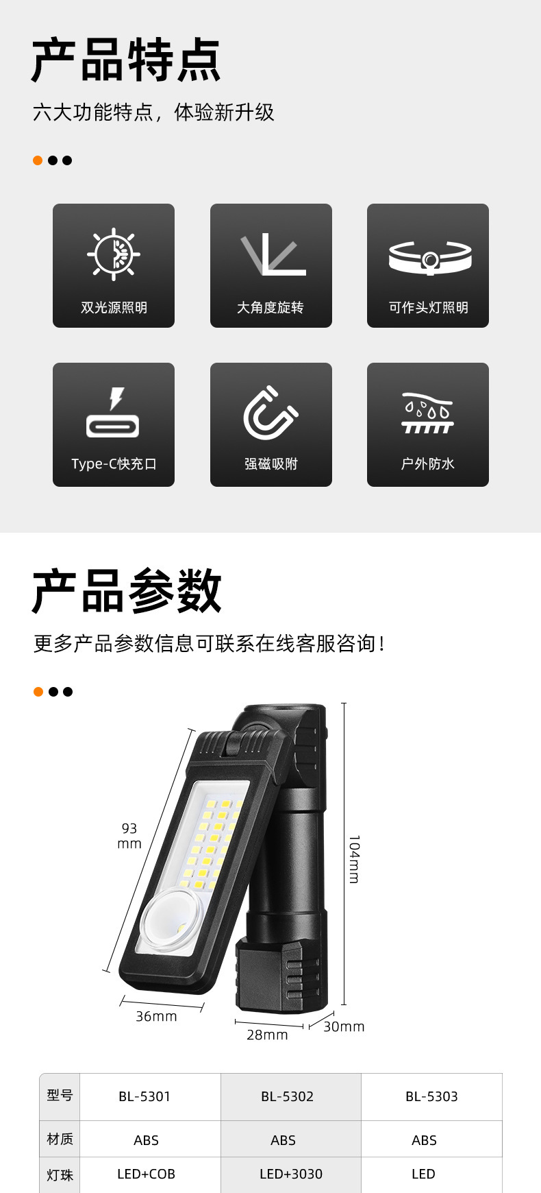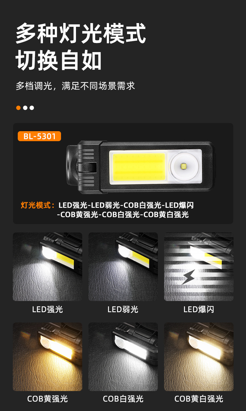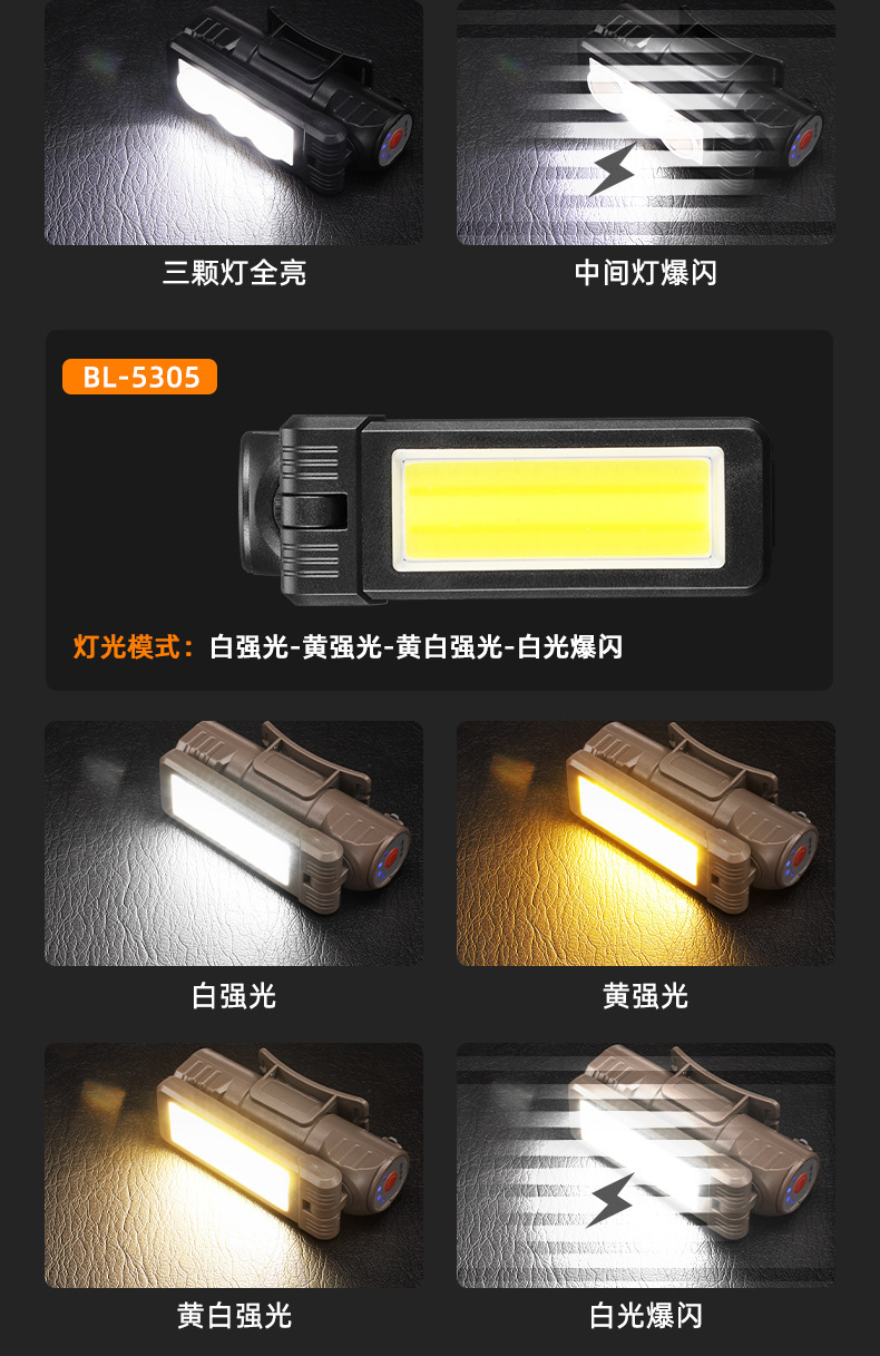 국경 다기능 COB 자석 자동 수리 램프 LED 적색 경고 빛 강한 손전등 유지 보수 작업 램프 헤드 램프