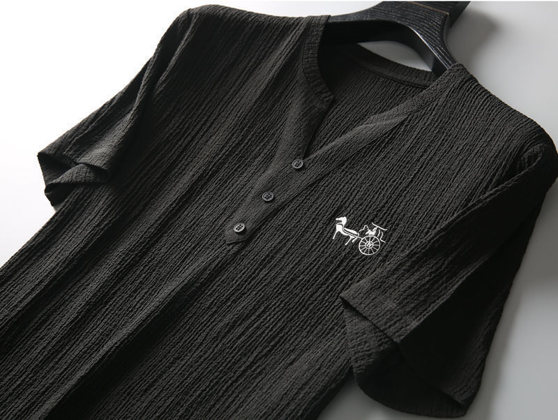 하이 퀄리티 초박형 반팔 아이스 실크 리넨 세트 남자 여름 플러스 사이즈 느슨한 중소매 티셔츠 코튼 리넨 투피스 세트스토어 가기