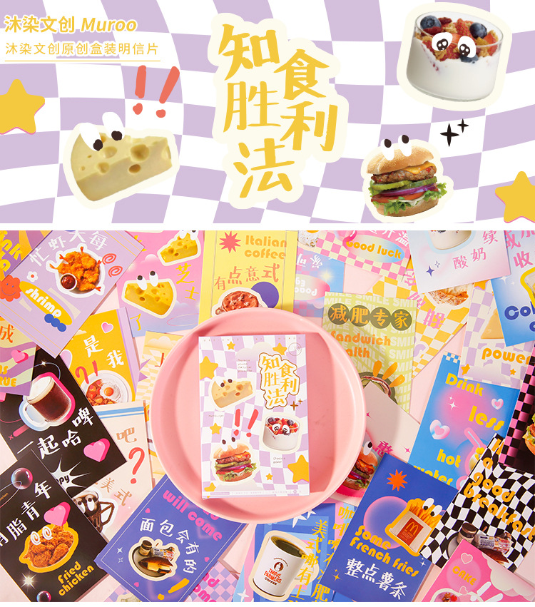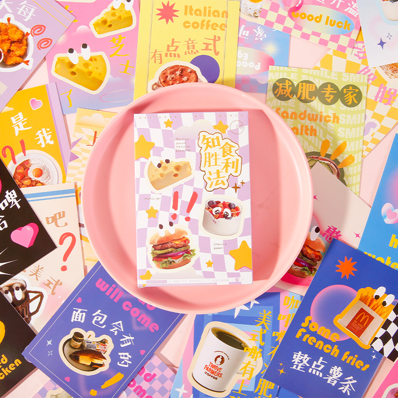 Mu Ran 엽서 알고 음식 승리 방법 창조적 인 음식 카드 학생 선물 축복 메시지 카드 감사 카드스토어 가기