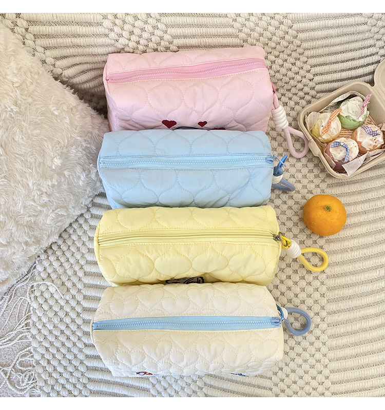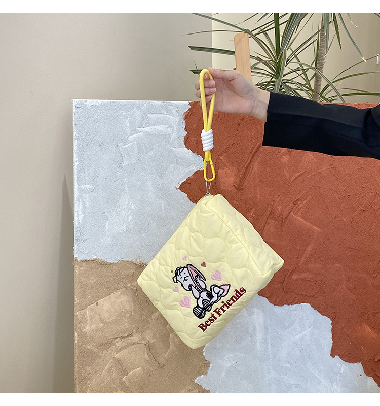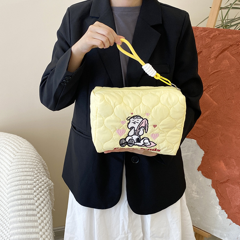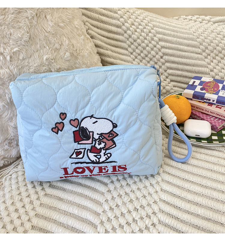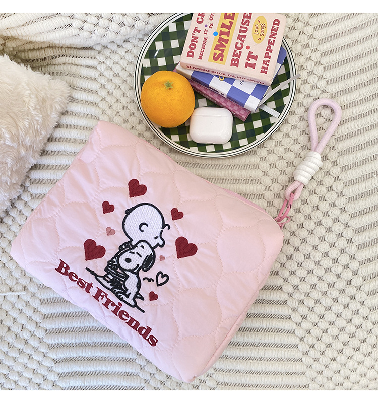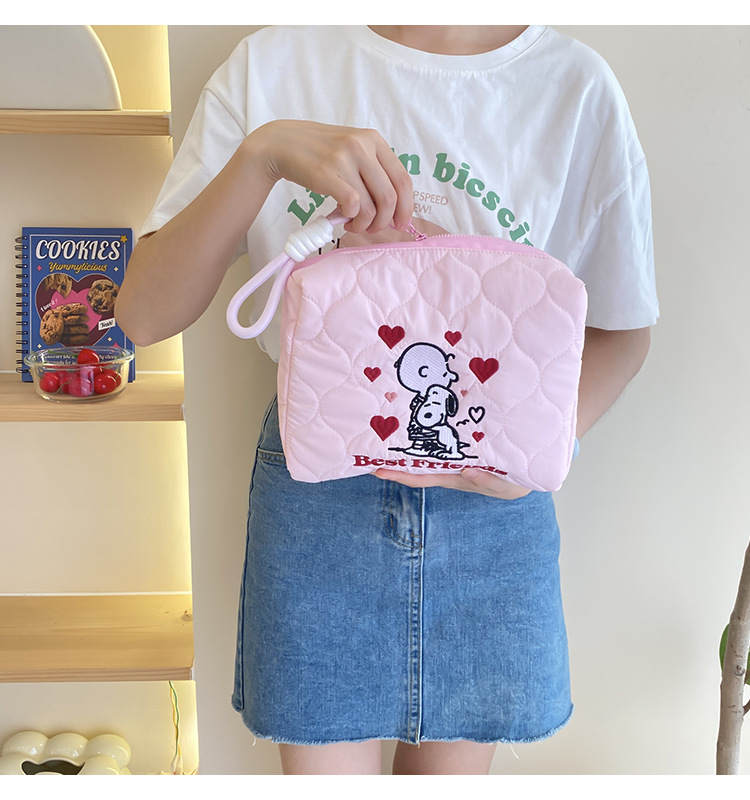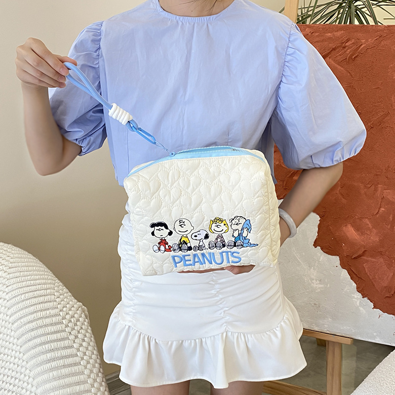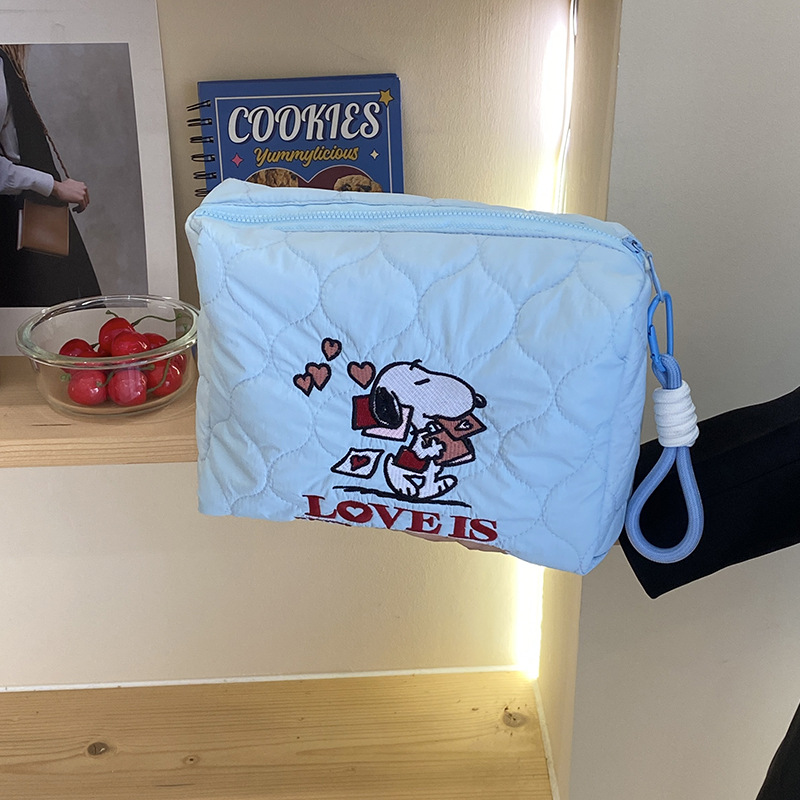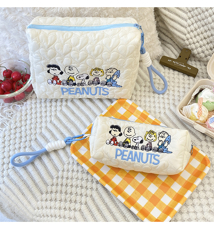 SNOOPY 귀여운 학생 퀼트 자수 대용량 화장품 보관 가방 휴대용 세척 가방