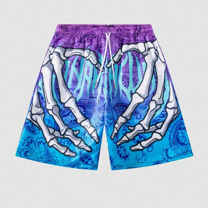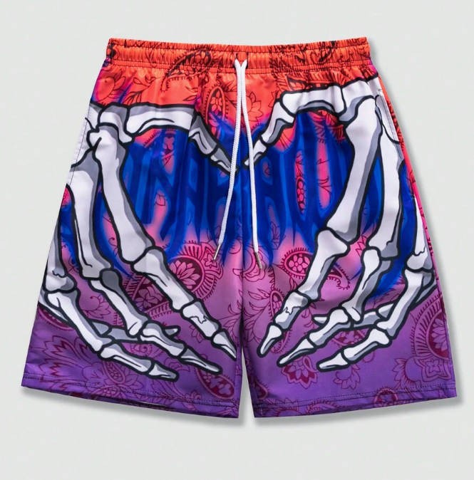 2024 년 여름 새로운 남성 국경 특별 아마존 temu3D 디지털 인쇄 반바지 풀린 스트레이트 샌드