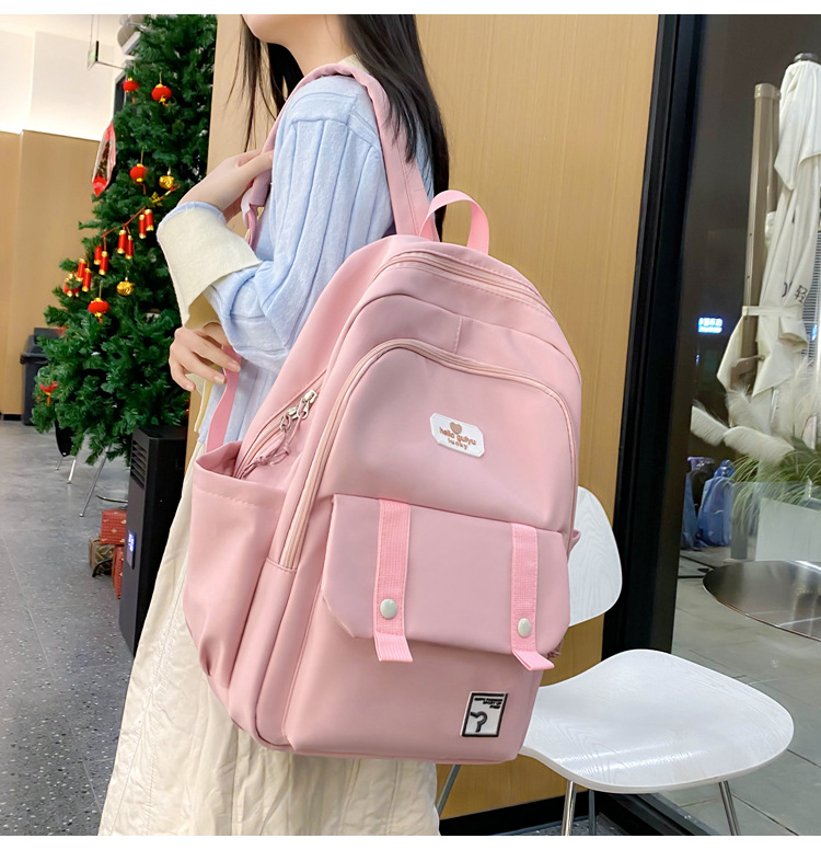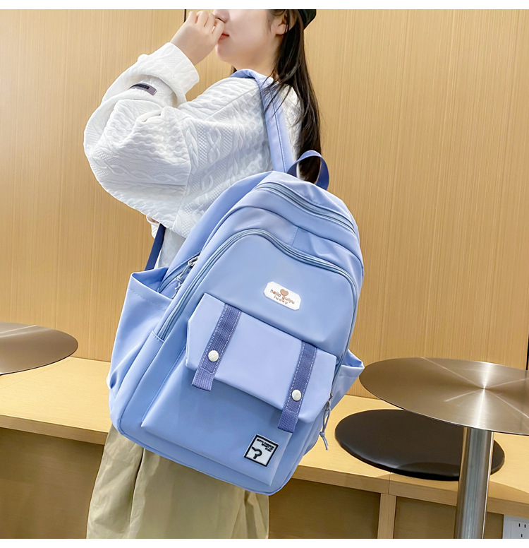 캐주얼 백팩 2024 새로운 솔리드 컬러 남성과 여성의 간단한 경량 대용량 4 피스 학생 스쿨백 배낭 여성스토어 가기