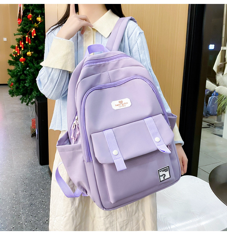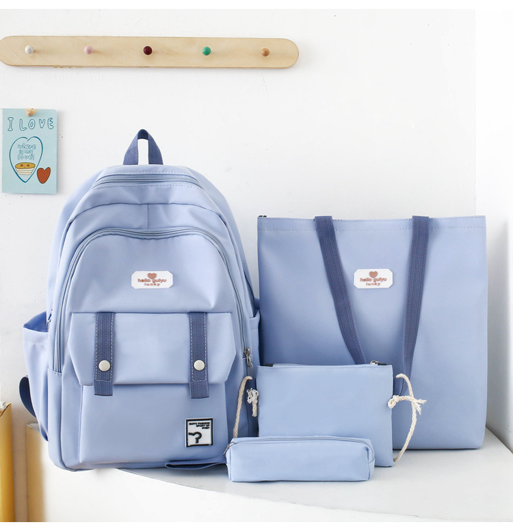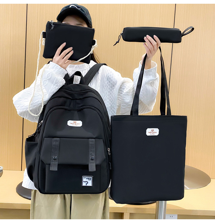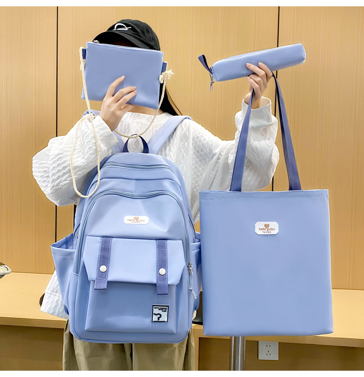 캐주얼 백팩 2024 새로운 솔리드 컬러 남성과 여성의 간단한 경량 대용량 4 피스 학생 스쿨백 배낭 여성