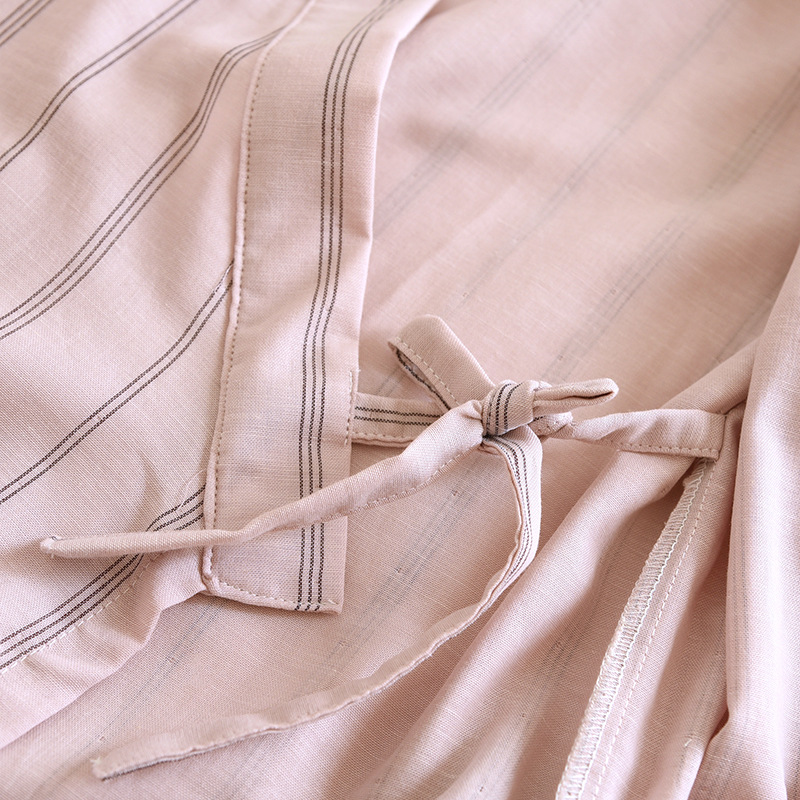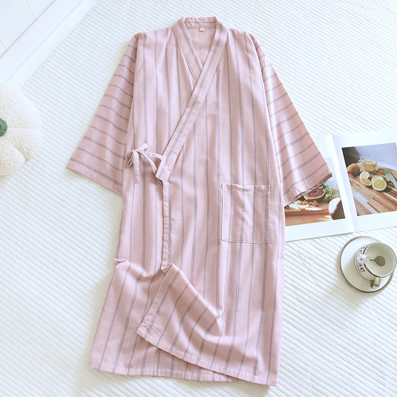 • 스트라이프 원사 염색 거즈 나이트가운 - 여성용 핑크