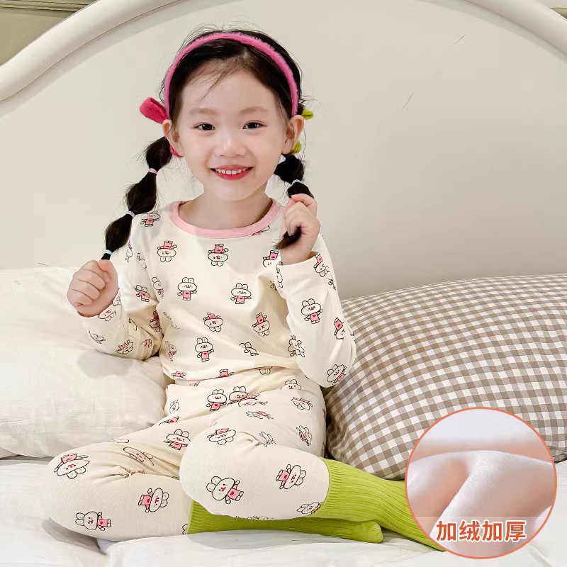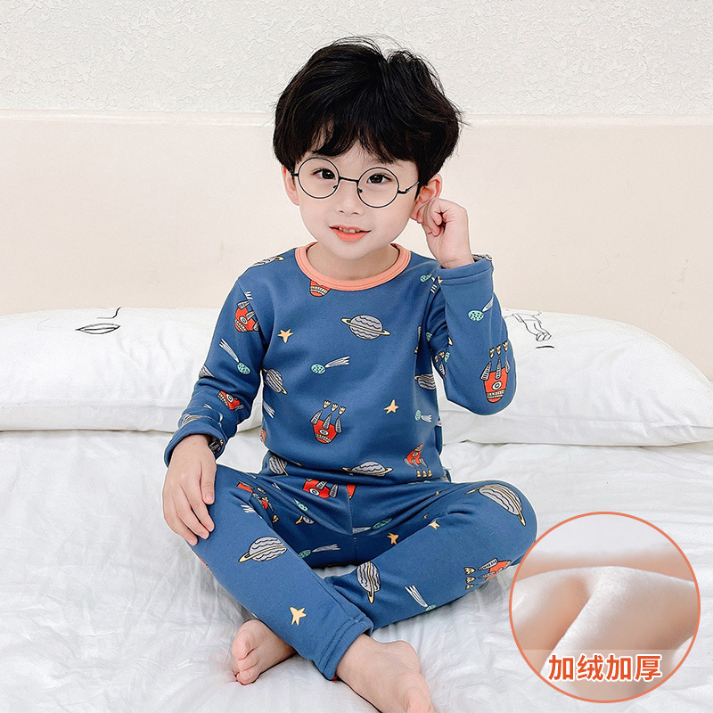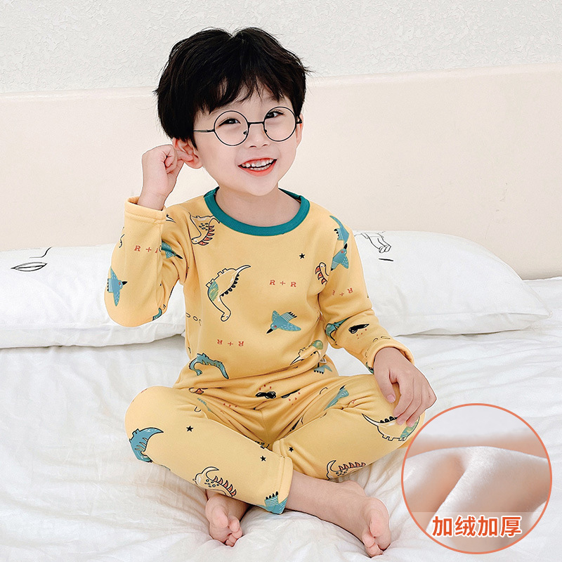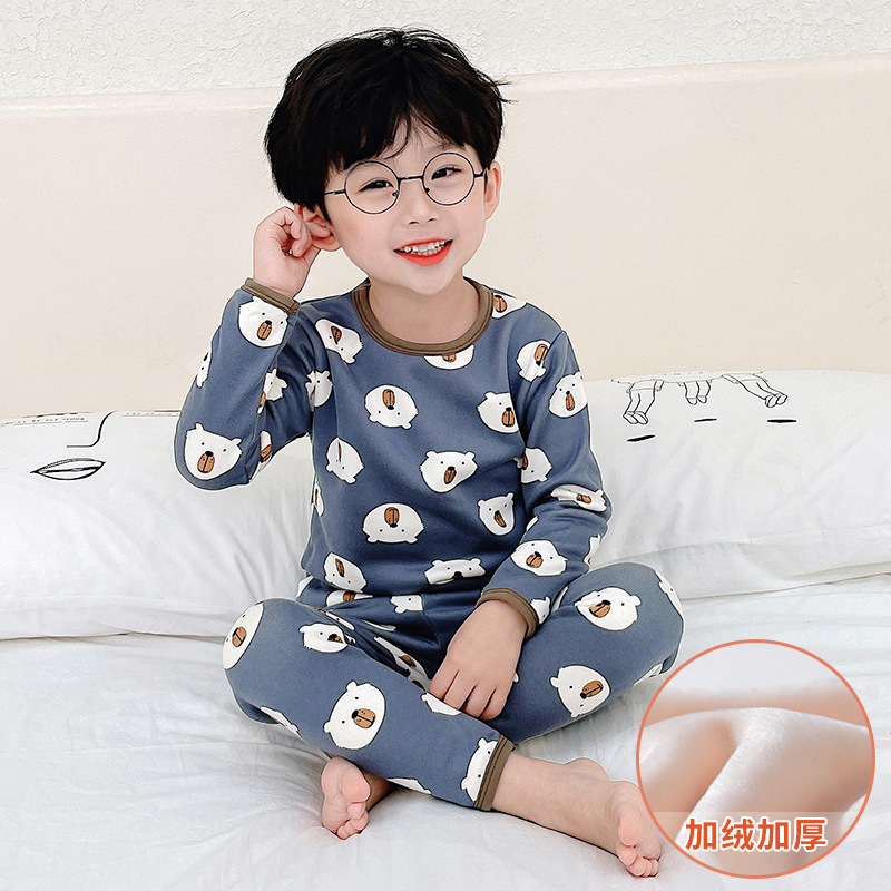 어린이 가을 옷과 바지 세트 소년 소녀 봄 가을 가정 옷 속옷 홈 잠옷 아기 어린이 원피스 벨벳