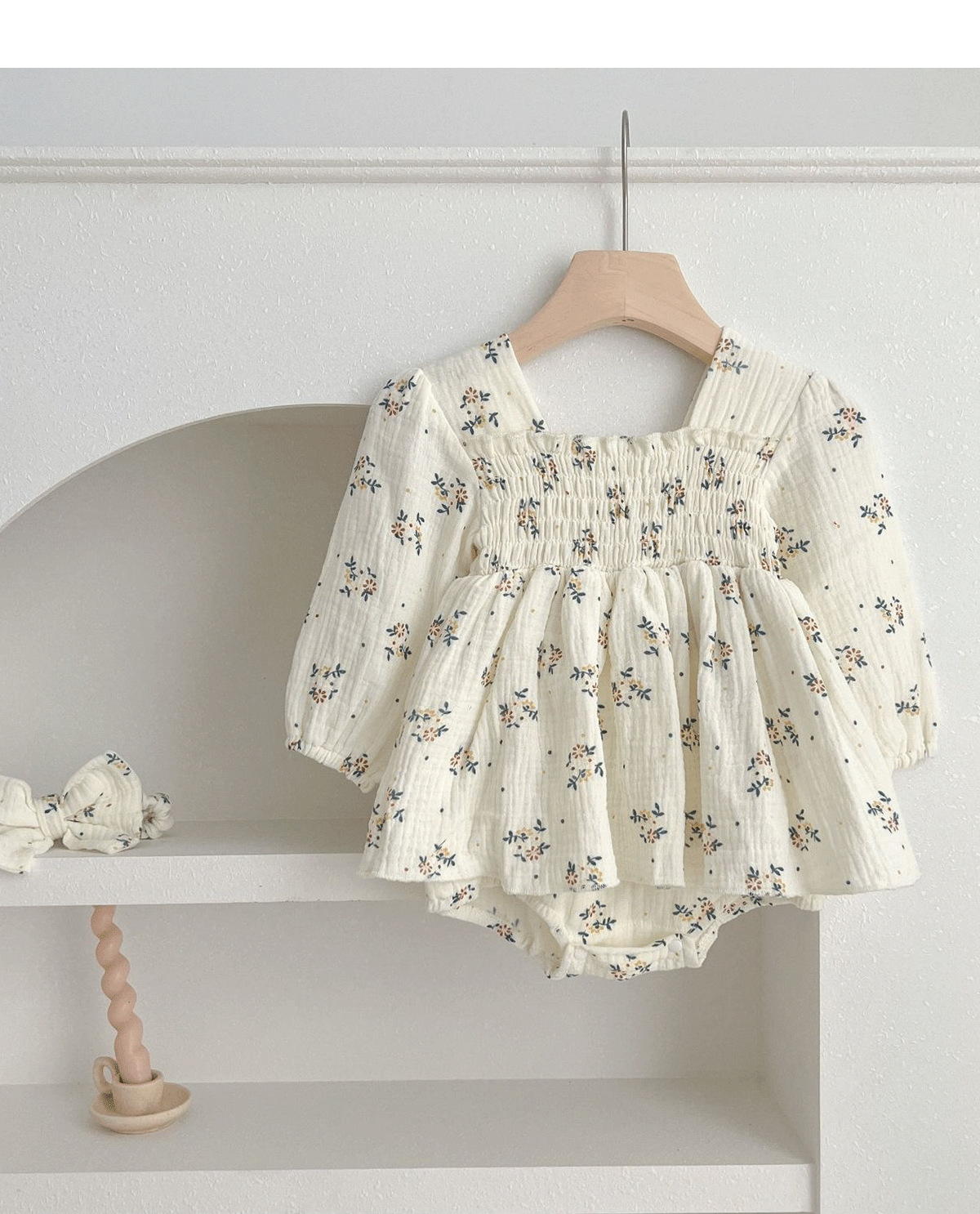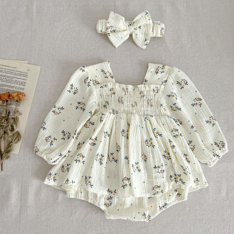 한국식 아기의 가을 점프 수트 아기 소녀의 공주 토끼 원피스 작은 꽃 가방 뚱뚱한 옷 서양식 달콤한 등반 옷