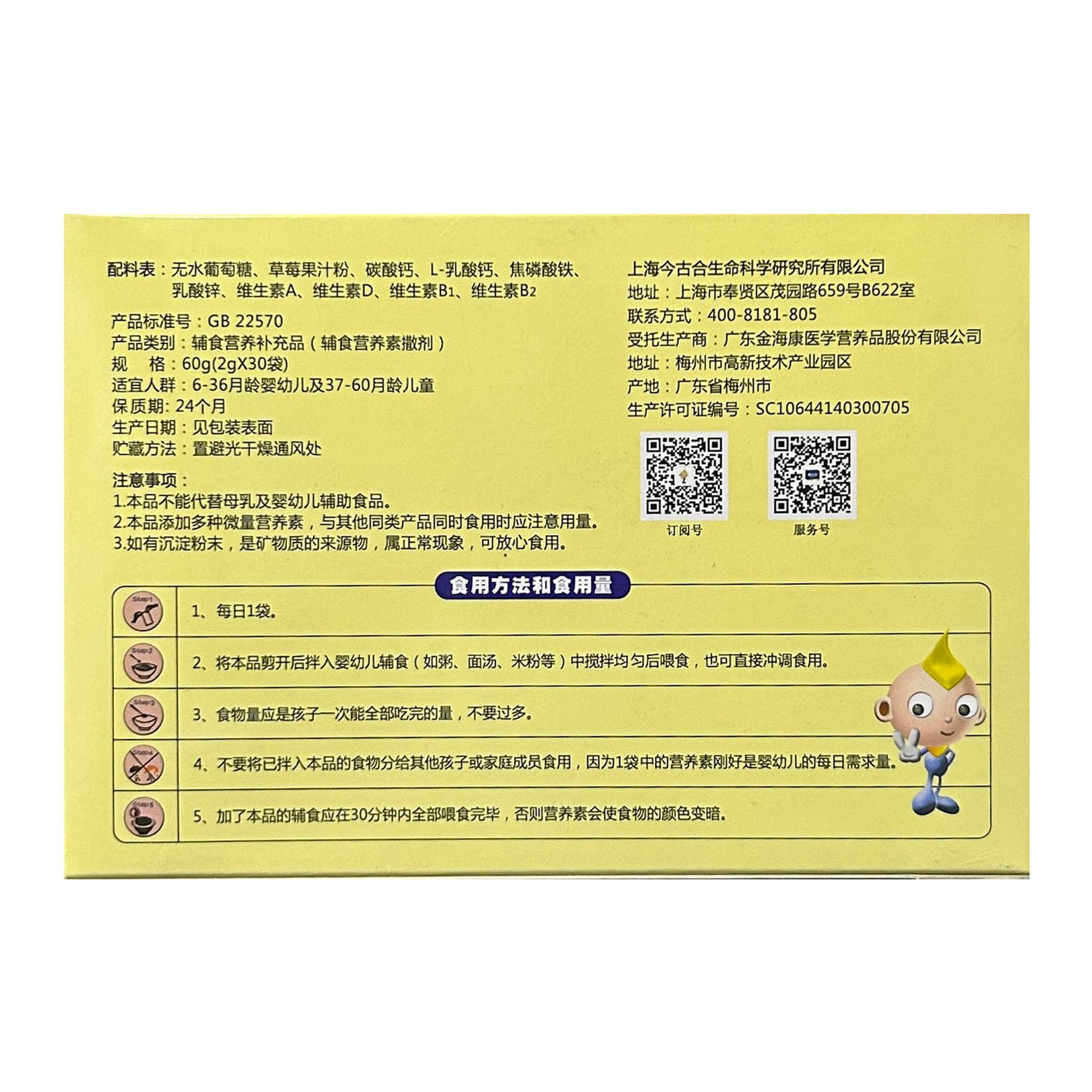 [머리카락의 세대] Shi erjia 유아 칼슘 영양 패키지 60g(2g * 30 가방) 도매 재고 아기