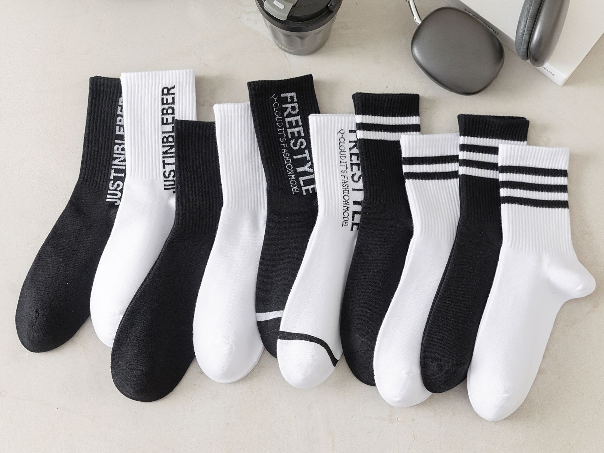 양말 남성 양말 원래 트렌드 간단한 스포츠 학생 영어 편지 가을과 겨울 두꺼운 땀 흡수성 남성 스타킹