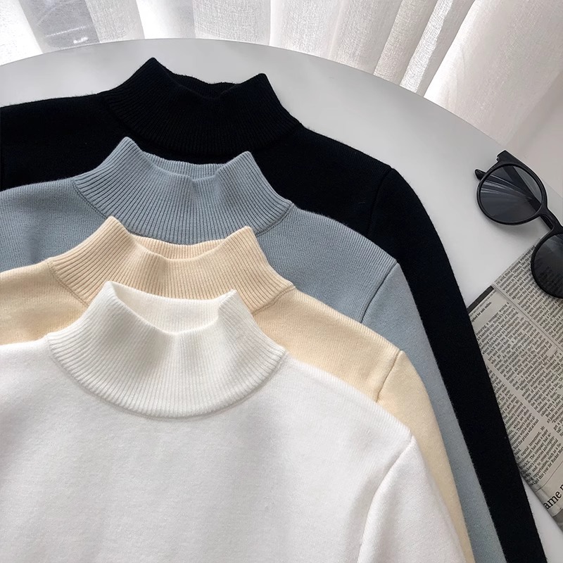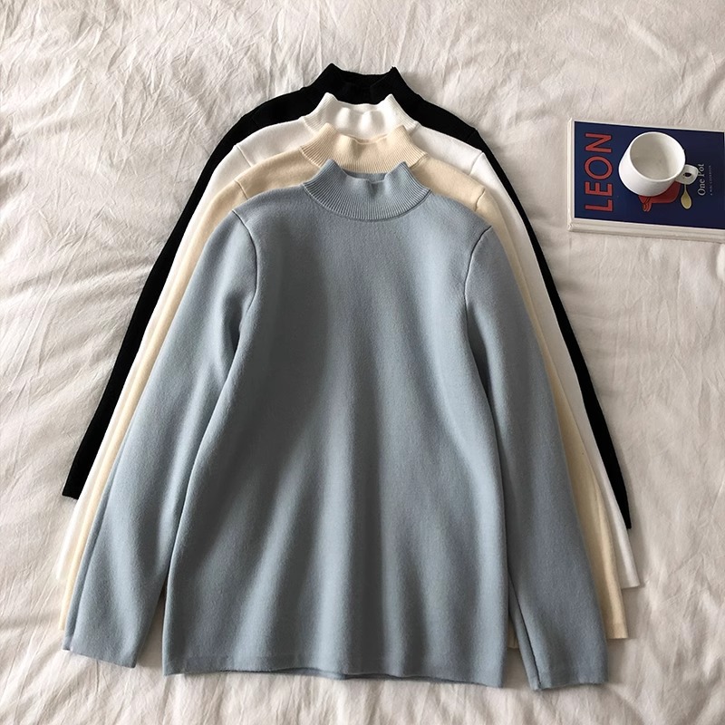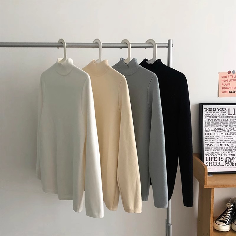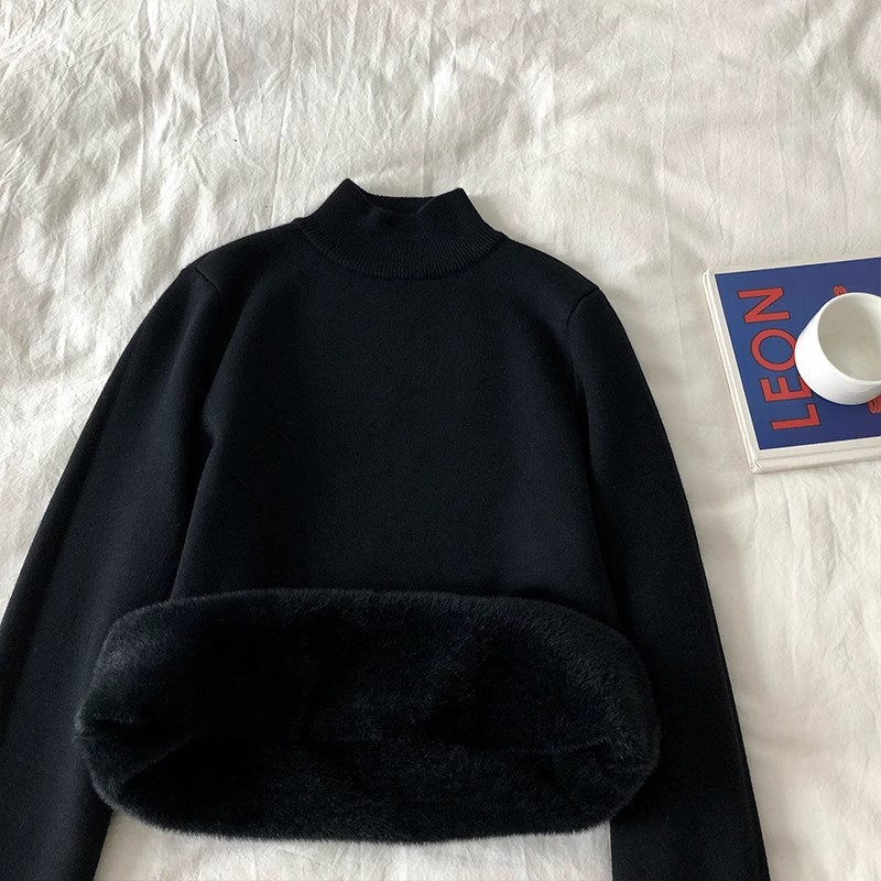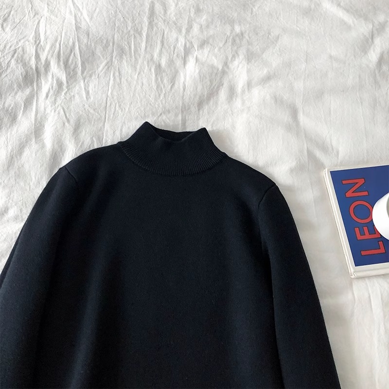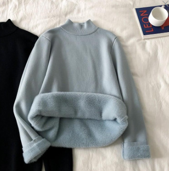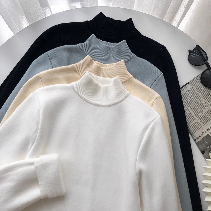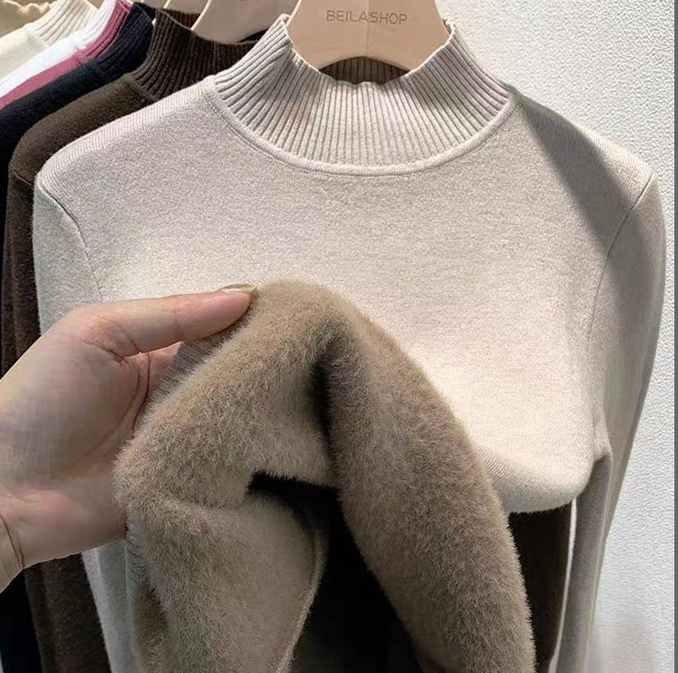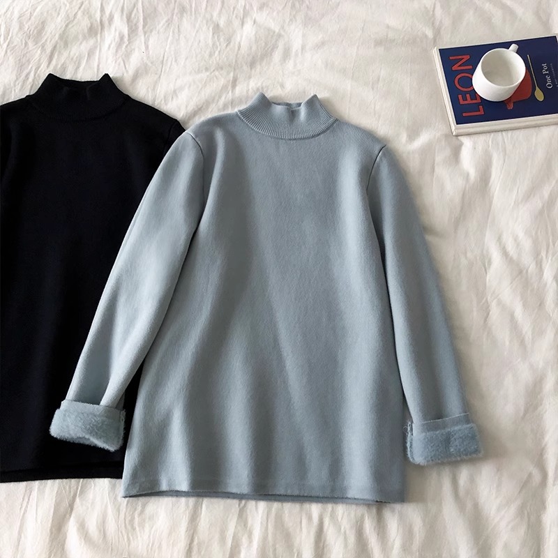 하프 하이 칼라 원피스 벨벳 기모 두꺼운 스웨터 탑 여성의 겨울 새로운 긴 소매 스웨터 풀오버 따뜻한 내부스토어 가기