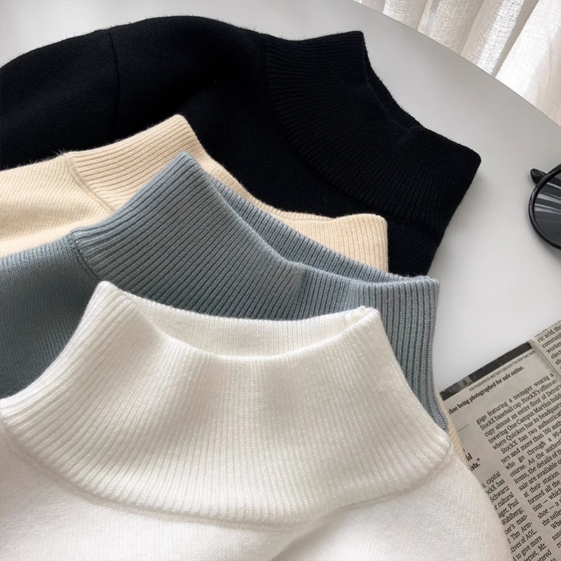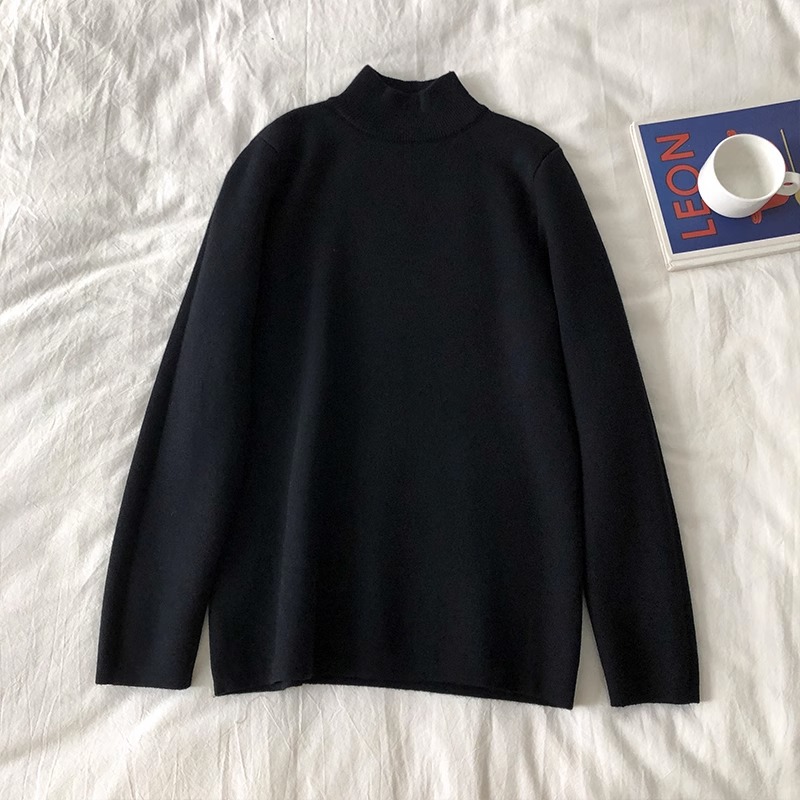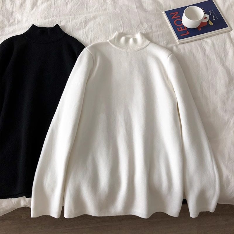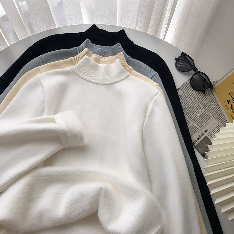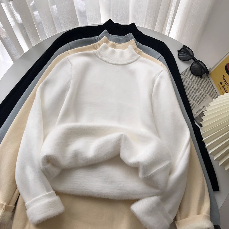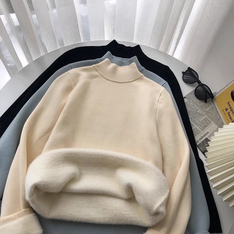 하프 하이 칼라 원피스 벨벳 기모 두꺼운 스웨터 탑 여성의 겨울 새로운 긴 소매 스웨터 풀오버 따뜻한 내부