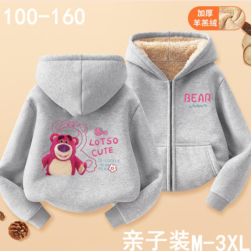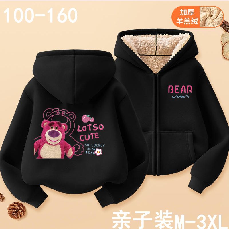 딸기 곰 소녀 가을과 겨울 카디건 후드 스웨터 Kulomi 어린이 지퍼 코트 기모 두꺼운 코트 트렌디