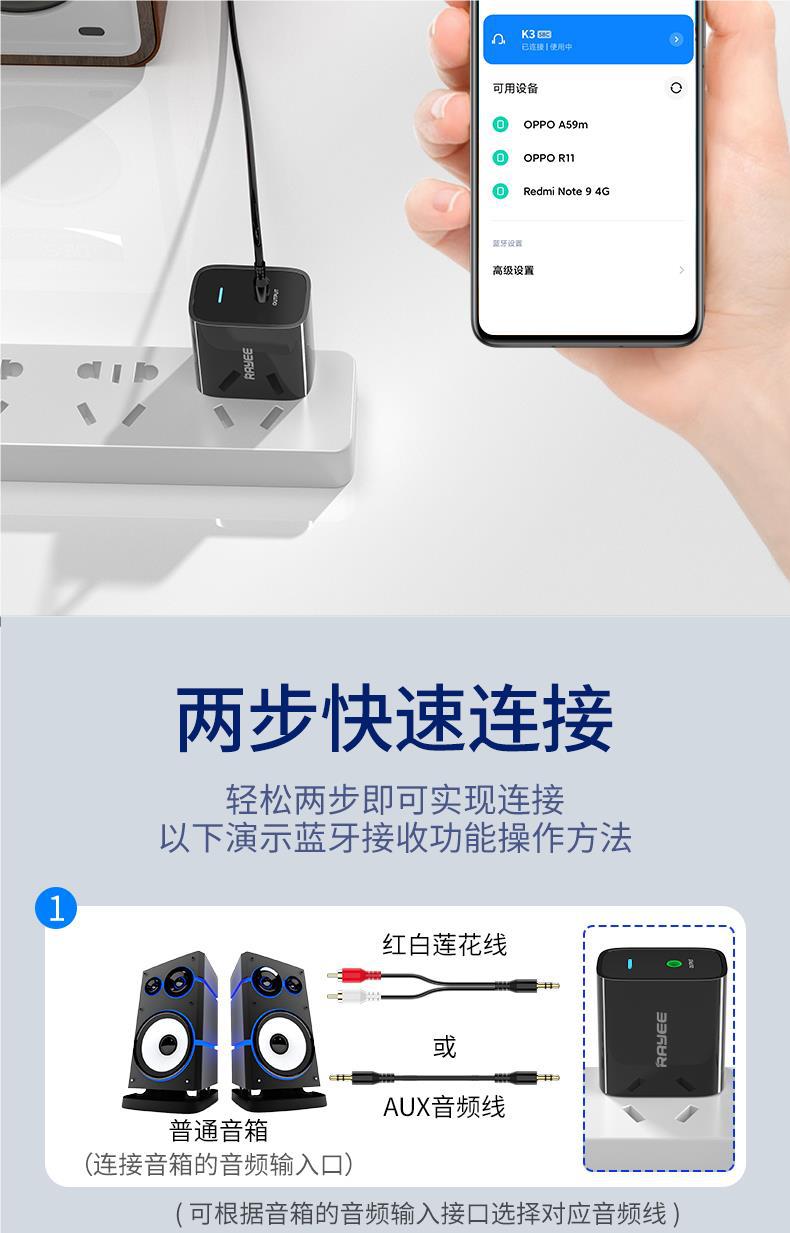 蓝牙接收器5.3适配器转音箱响aux老式功放无线转换音频发射器模块