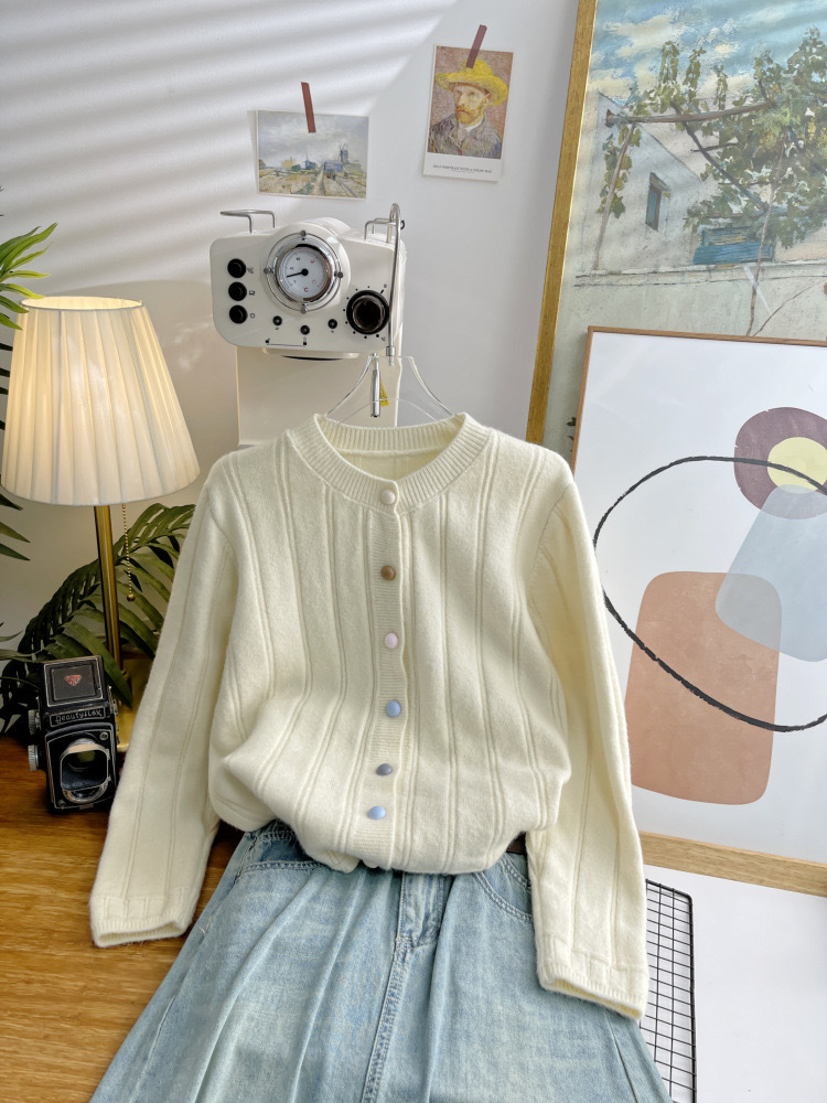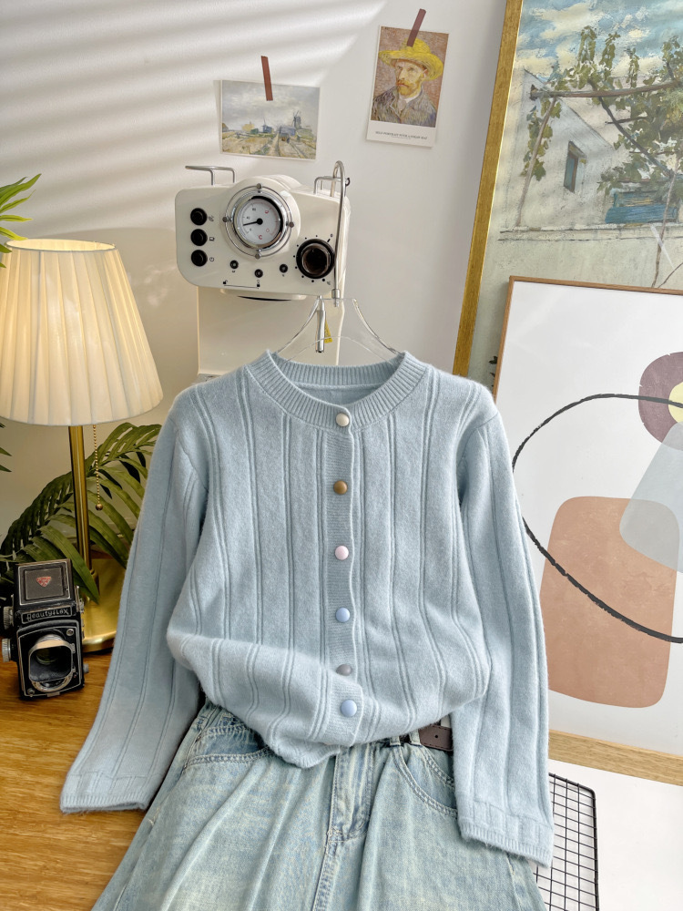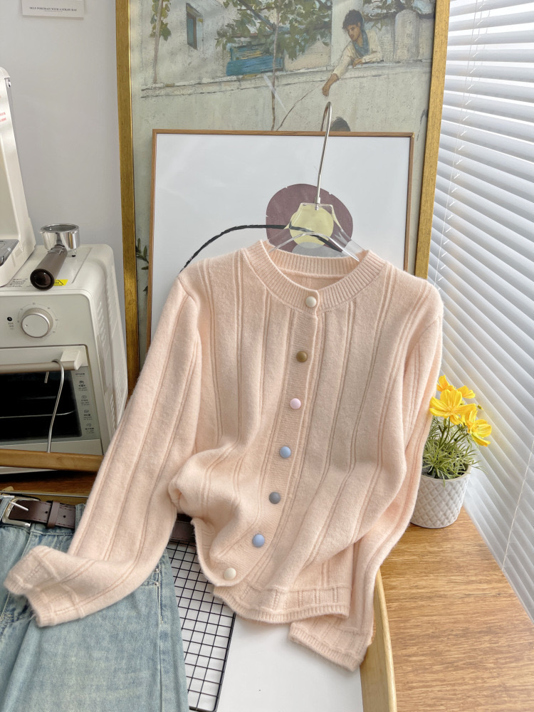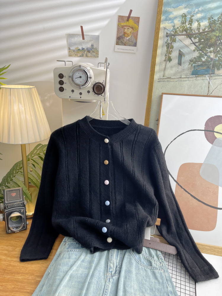 Limei Zi 짧은 핏 스웨터 재킷 한국 국경 간 니트 가디건 여성 가을, 겨울 새로운 멀티 컬러 버튼 루즈스토어 가기
