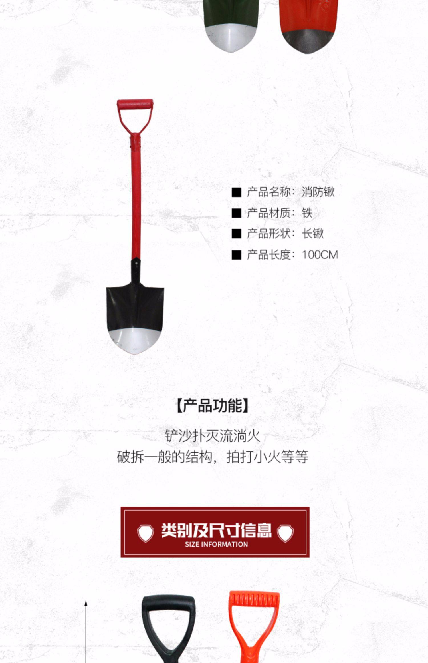 • 철제 빨간색 손잡이 소방삽(길이 1m )
