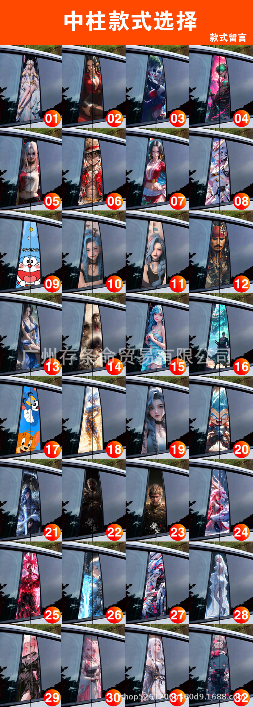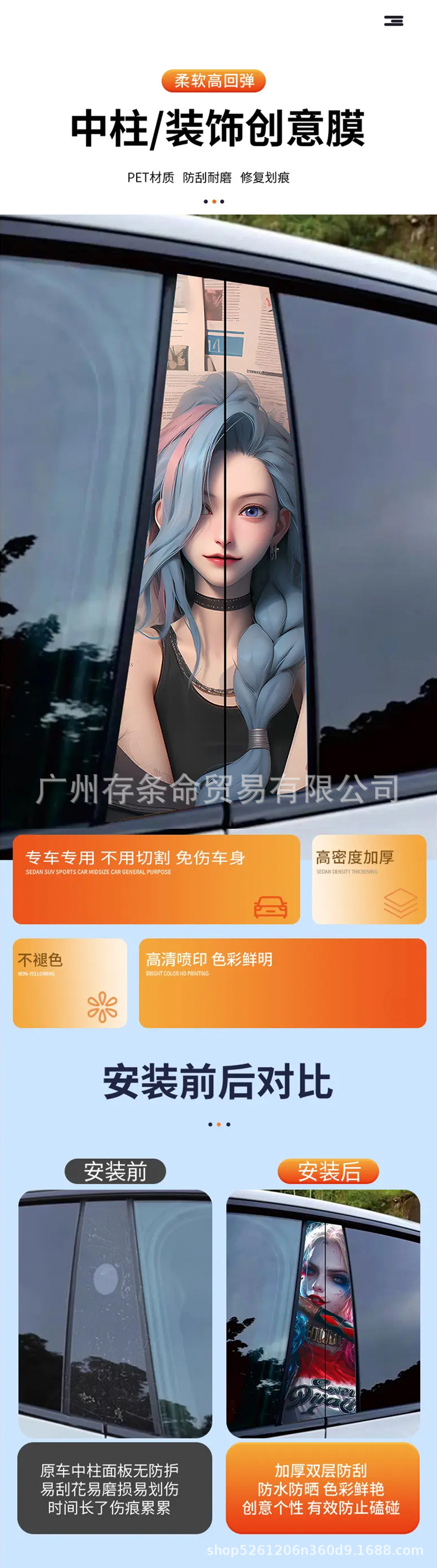 자동차 전용 B필러 컬러 변경 스티커 애니메이션 만화 미녀 장식 스티커 자동차 스티커 수출용 우수 제품스토어 가기