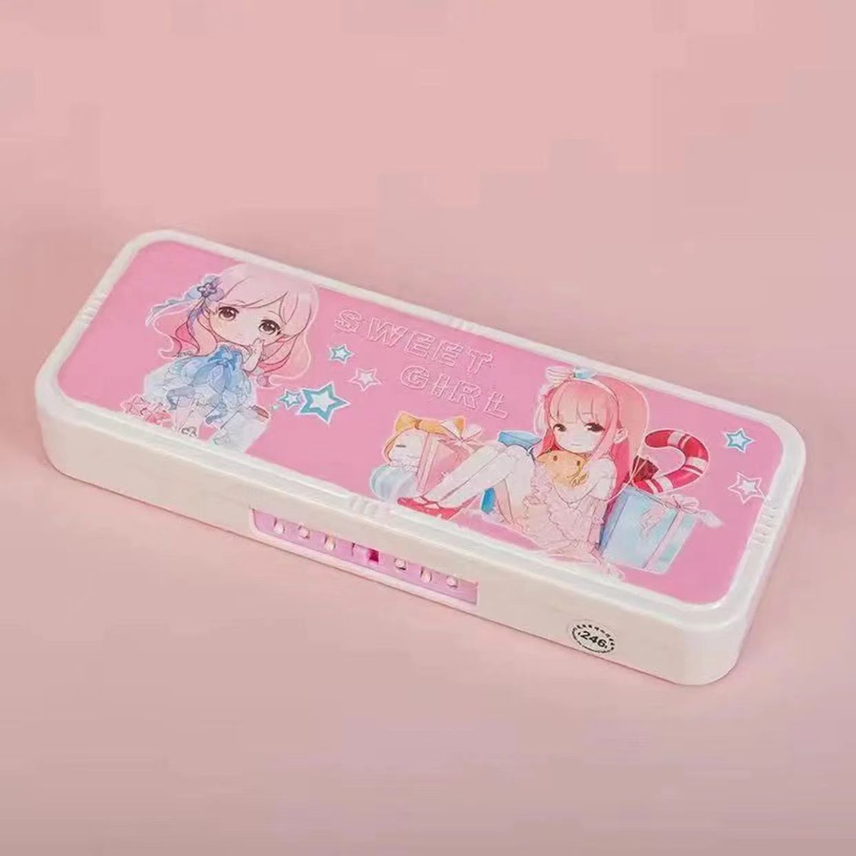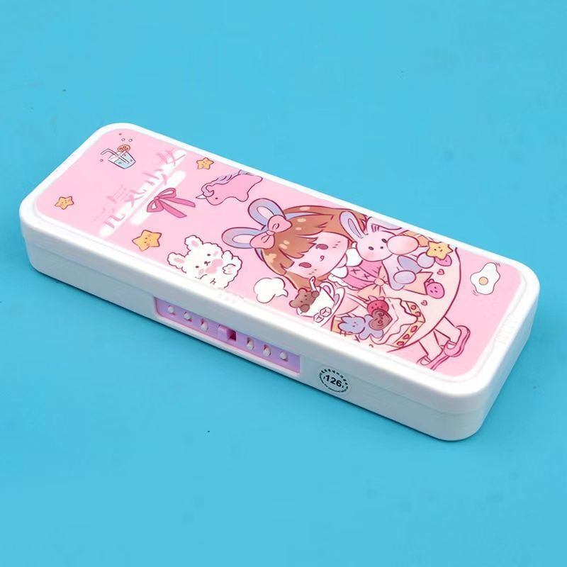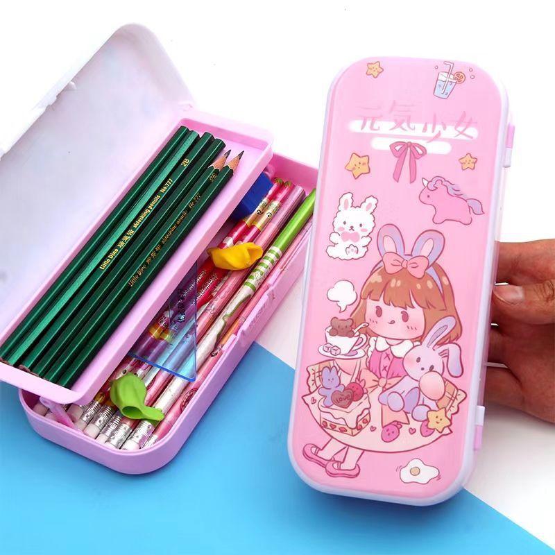 비밀번호 문구 상자 소년과 소녀 더블 레이어 플라스틱 연필 케이스 인터넷 비밀번호 잠금 어린이 유치원 다기능 연필 케이스