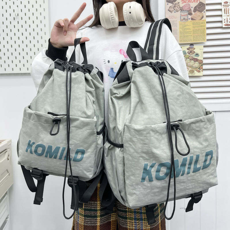 2024 새로운 Drawstring 백팩 대학 학생 클래스 가방 남녀 등산 가방 야외 스포츠 대용량