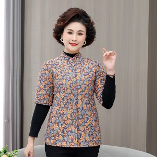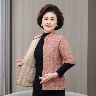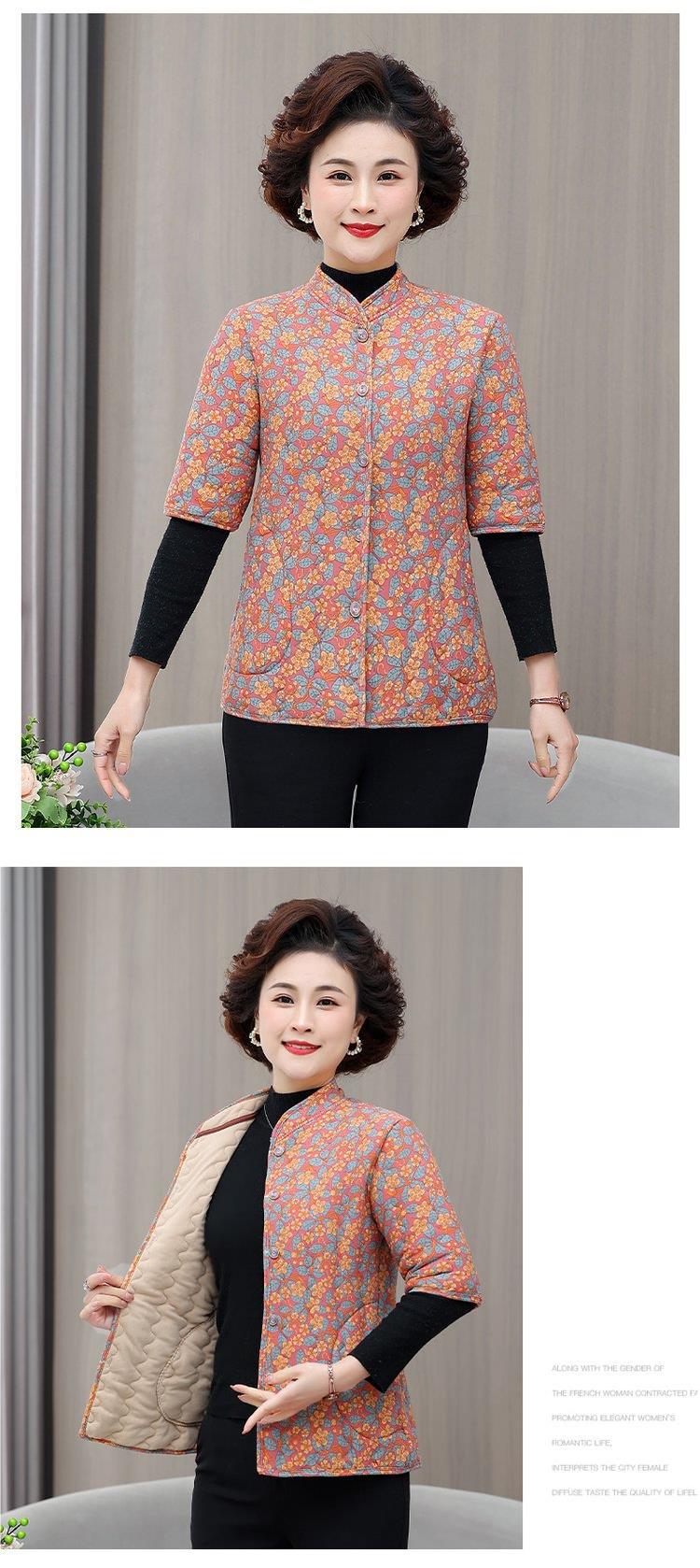 겨울 새 스타일 중년 및 노인 카멜 조끼 여성 플러스 사이즈 수직 칼라 중간 소매 허리 코트 면화 패딩 옷 두꺼운 따뜻한 조끼
