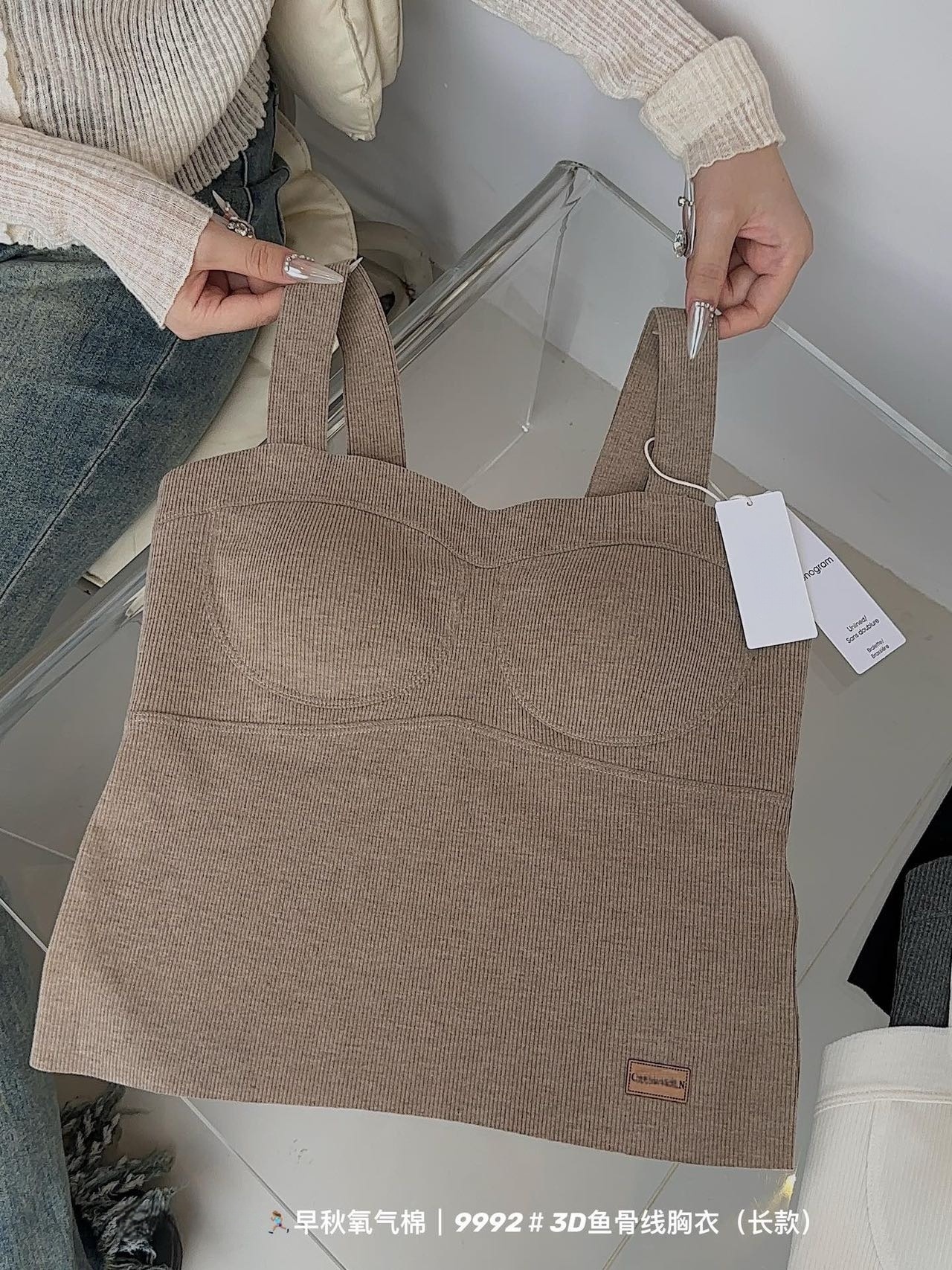 9992 # 초가을 산소면 3D 어본 라인 브래지어 (긴) 마이크로 샌딩 텍스처 스레드 패브릭 조끼 브라스토어 가기