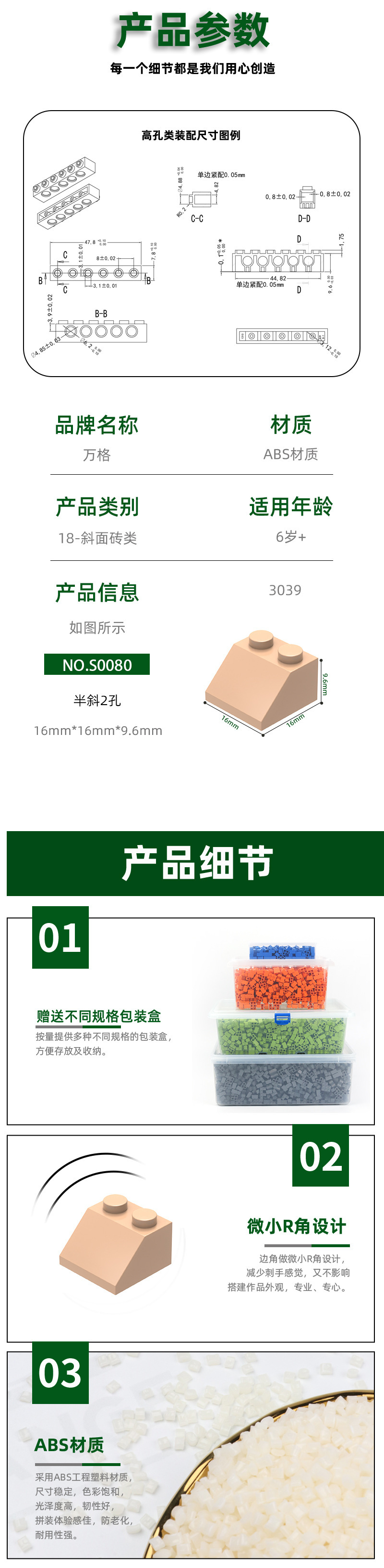 범용 3039 조립 부품과 호환되는 wange 국내 DIY 작은 입자 반 경사 2 홀 빌딩 블록 어린이 장난감 도매