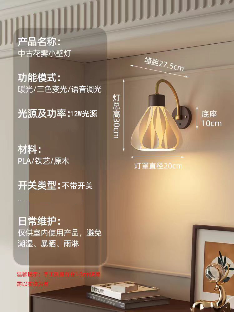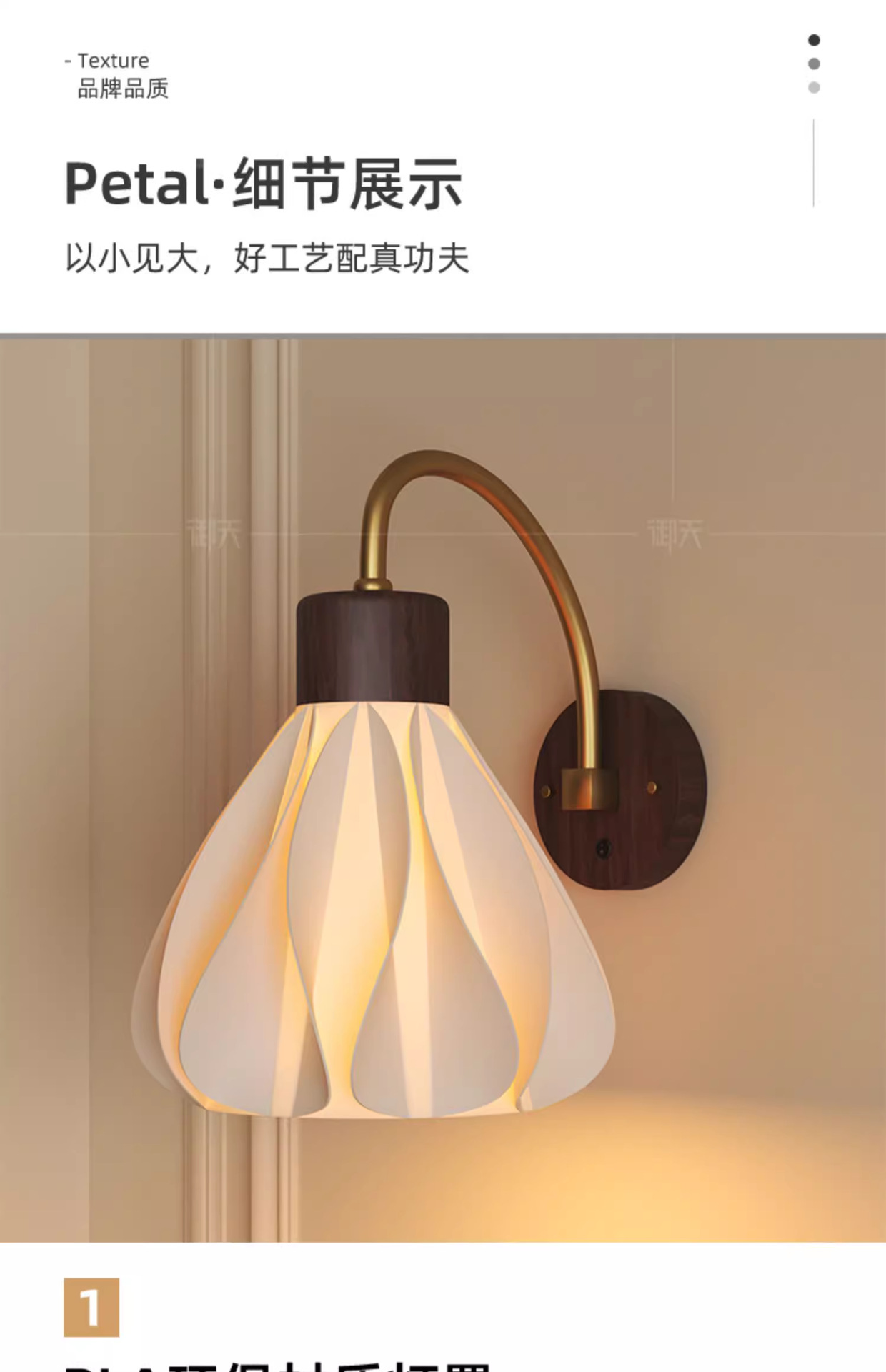 • 호두 꽃잎 벽 램프 15W 따뜻한 조명(풀 스위치 포함)