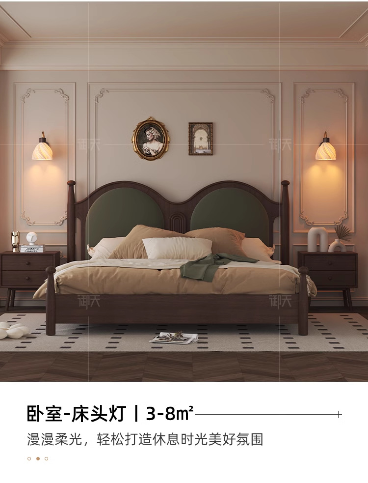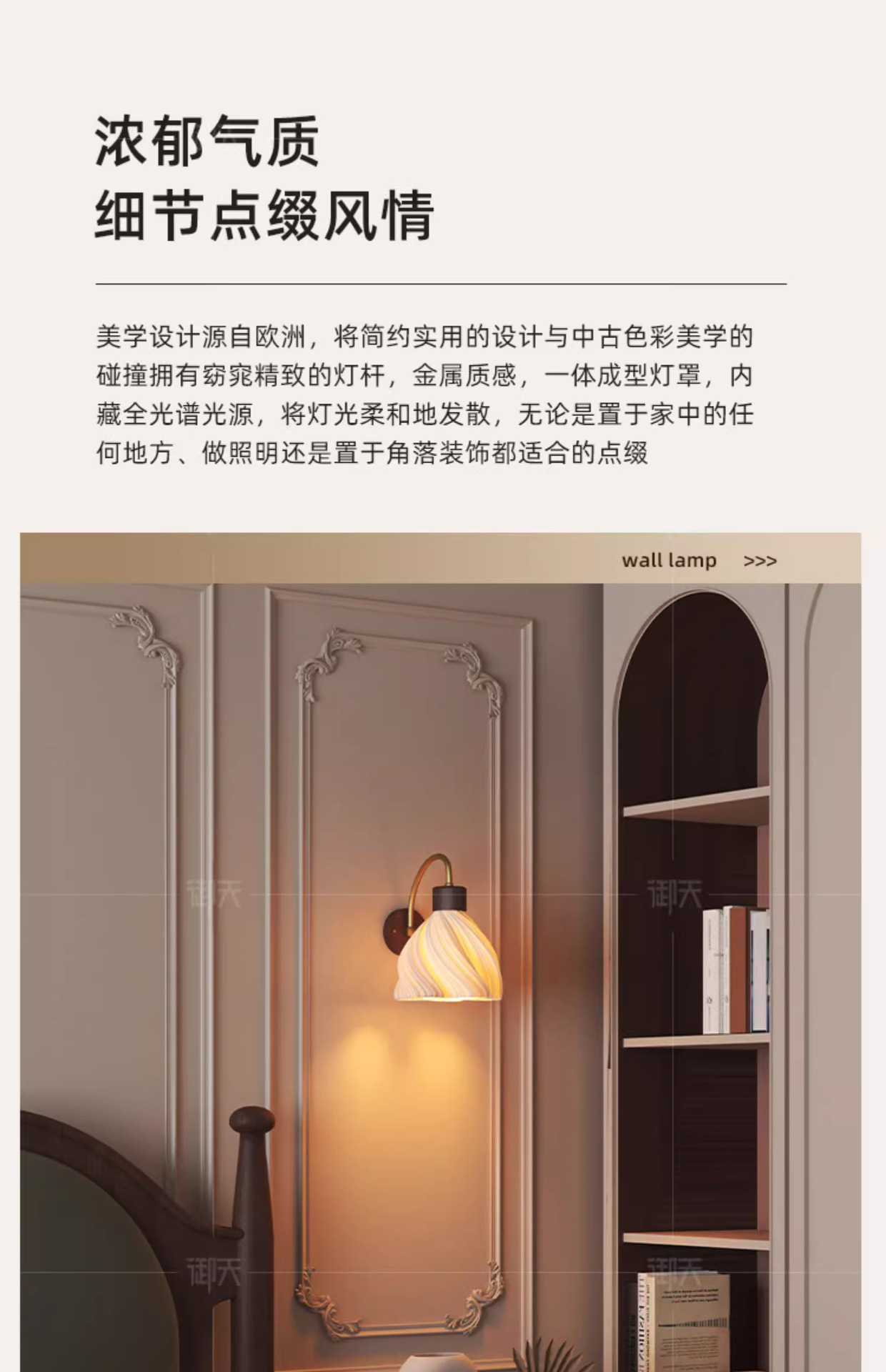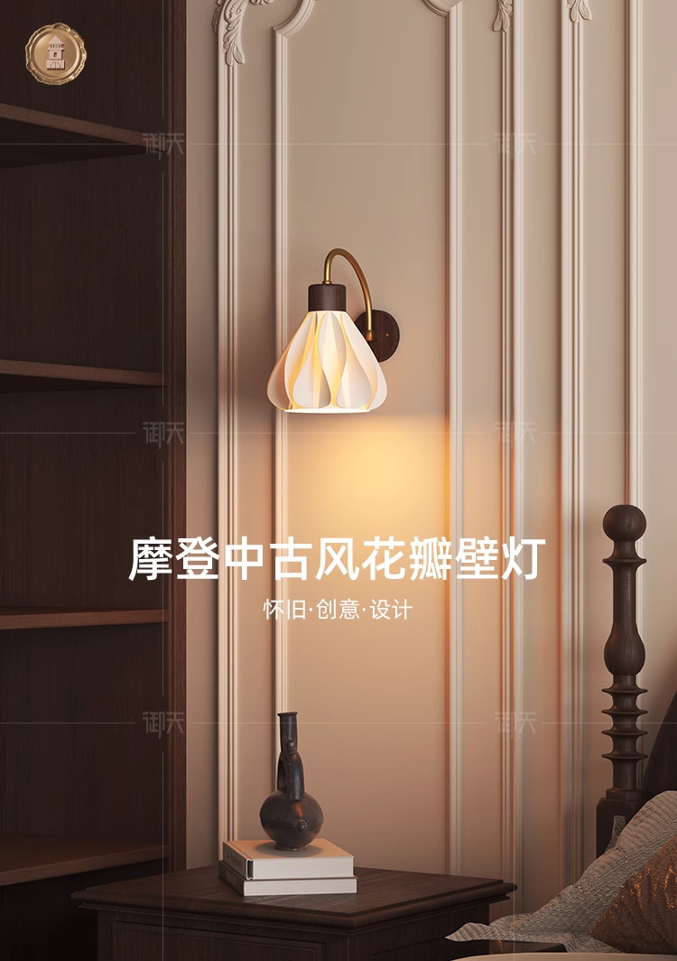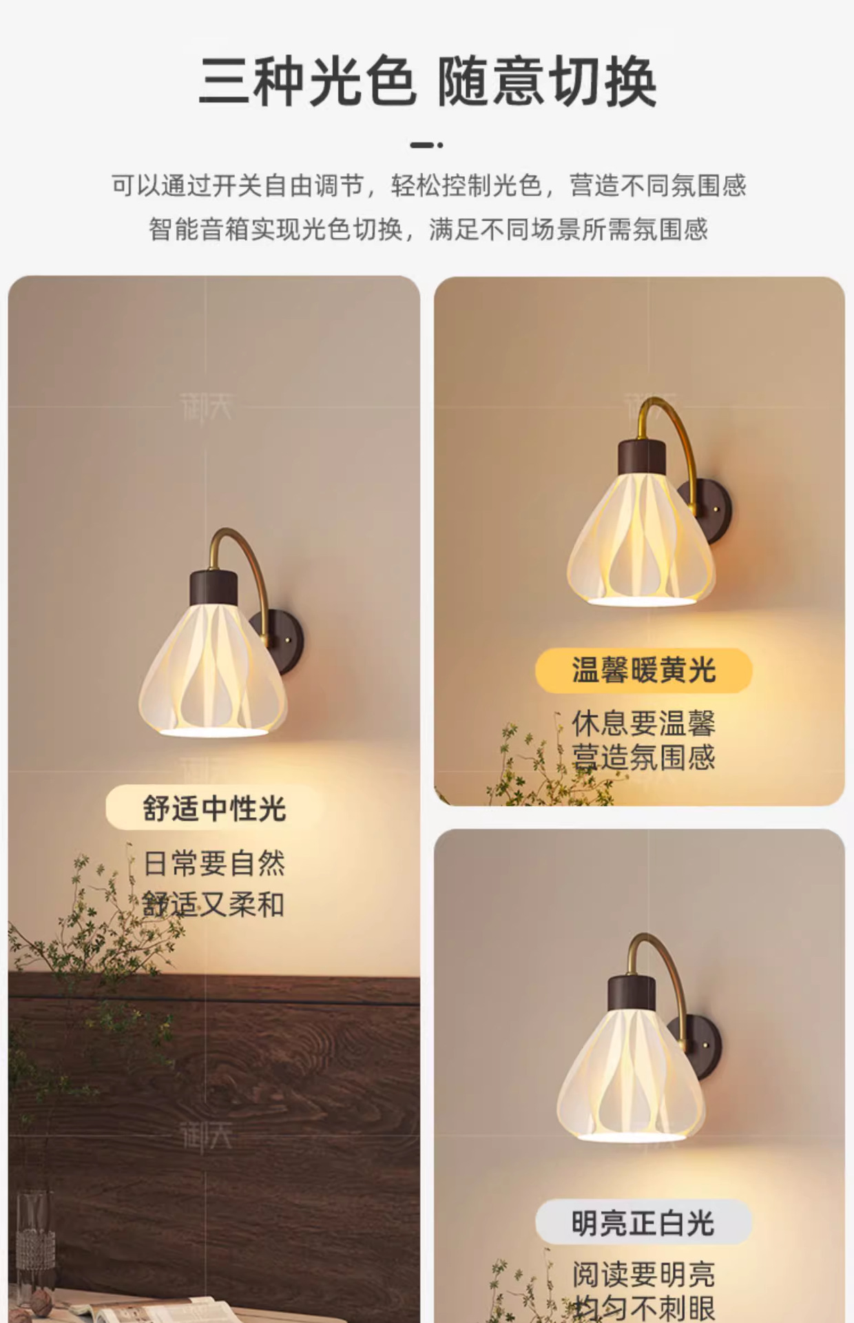 호두 프랑스 크림 침대 옆 벽 램프 침실 새로운 눈 보호 중간 빈티지 계단 거실 배경 벽 램프스토어 가기