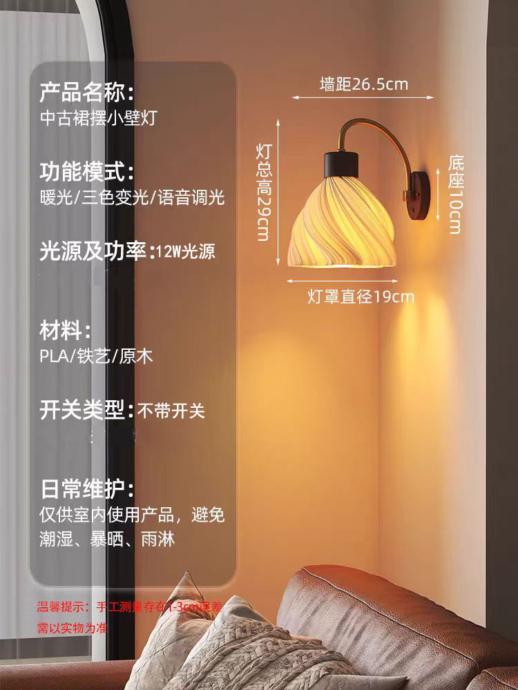 • 월넛 스커트 벽 램프 15W 무단계 디밍(풀 로프 스위치 포함)