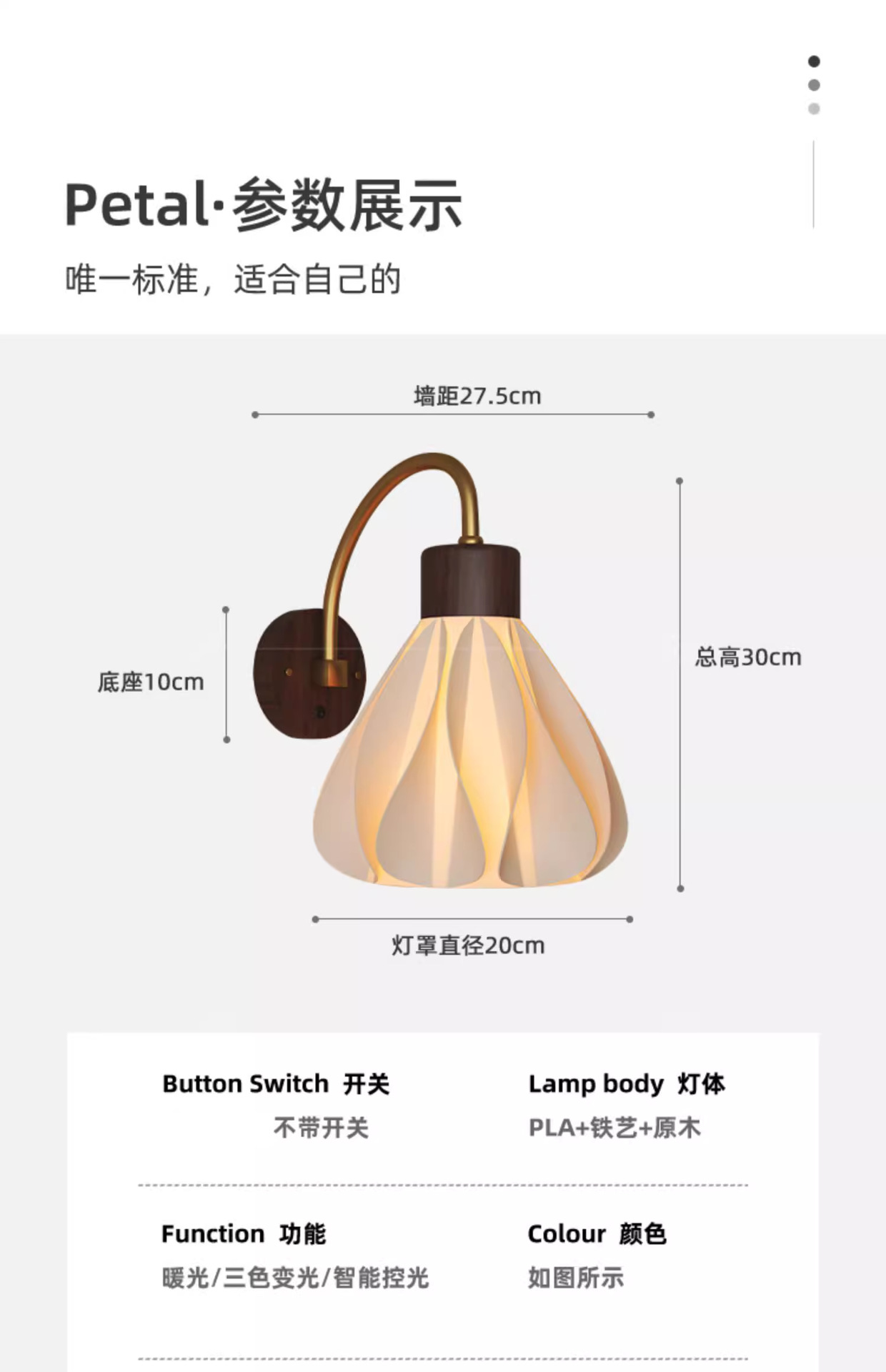 • 호두 꽃잎 벽 램프 15W 무단계 디밍(풀 로프 스위치 포함)