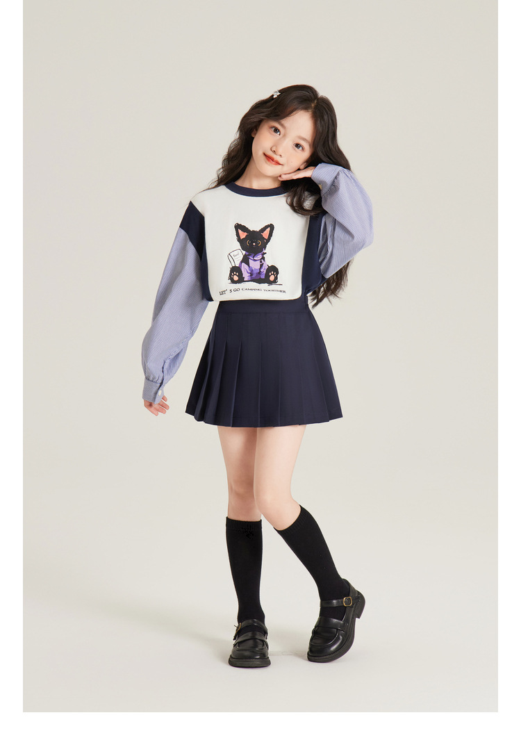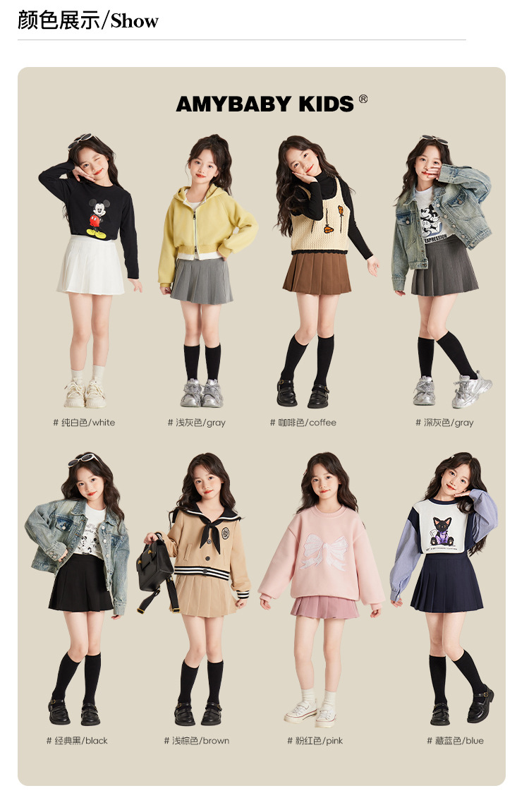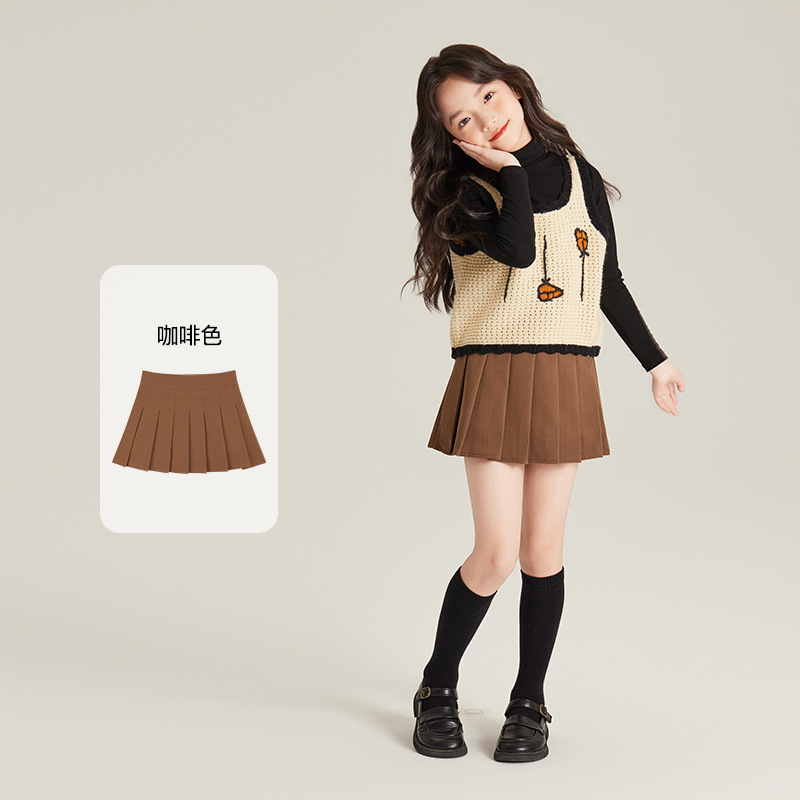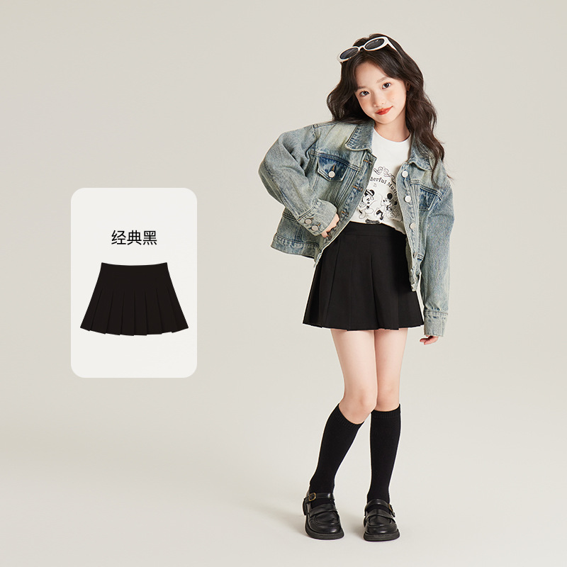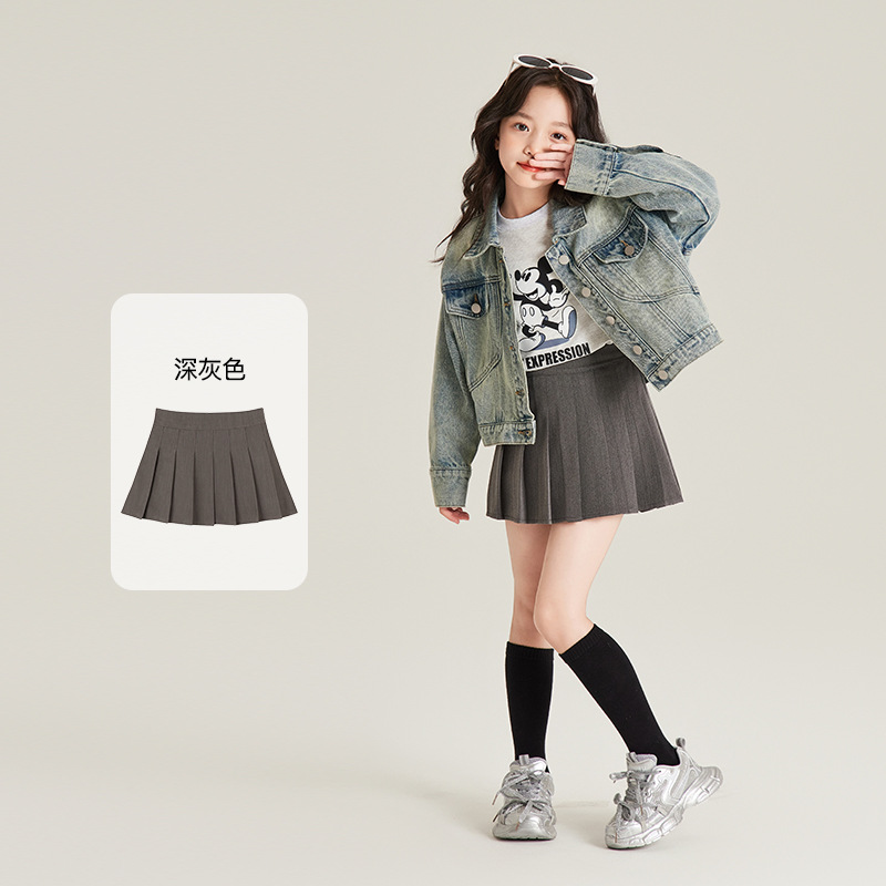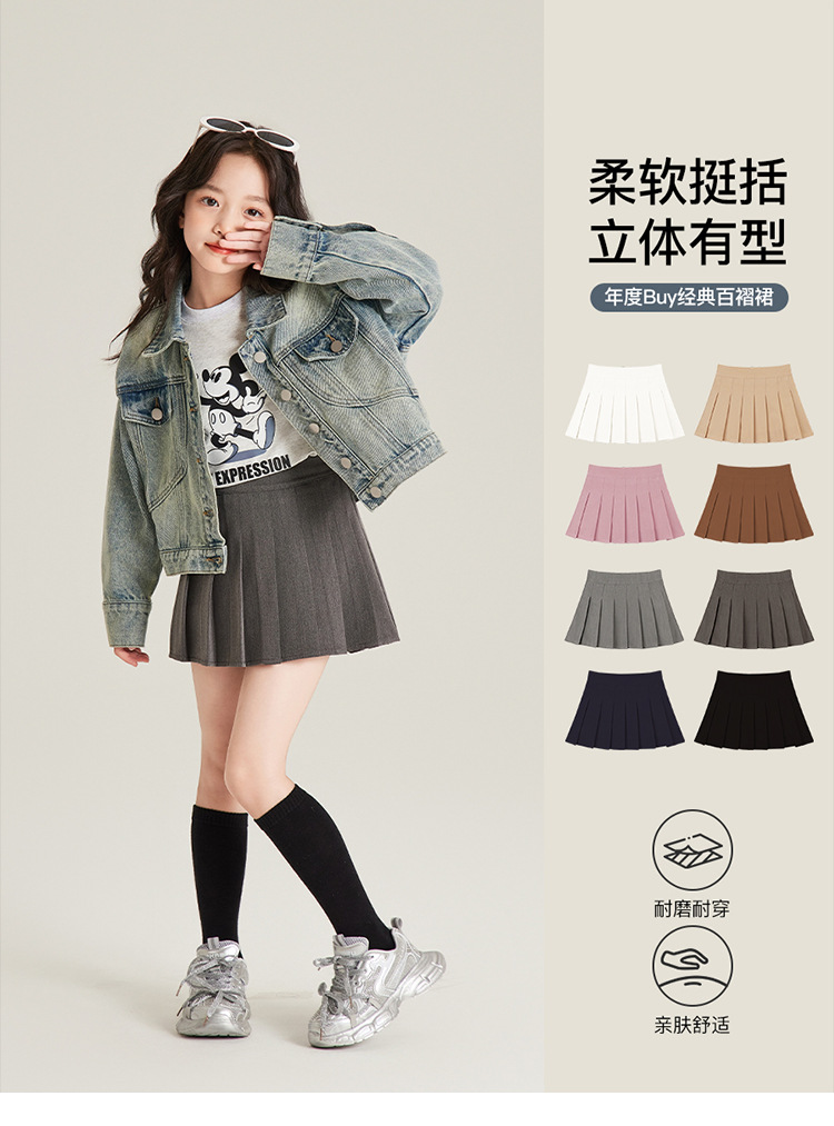 Amybaby 여자 스커트 가을 2025 새로운 단색 단순 다용도 스커트 A 라인 스커트 플리츠 스커트