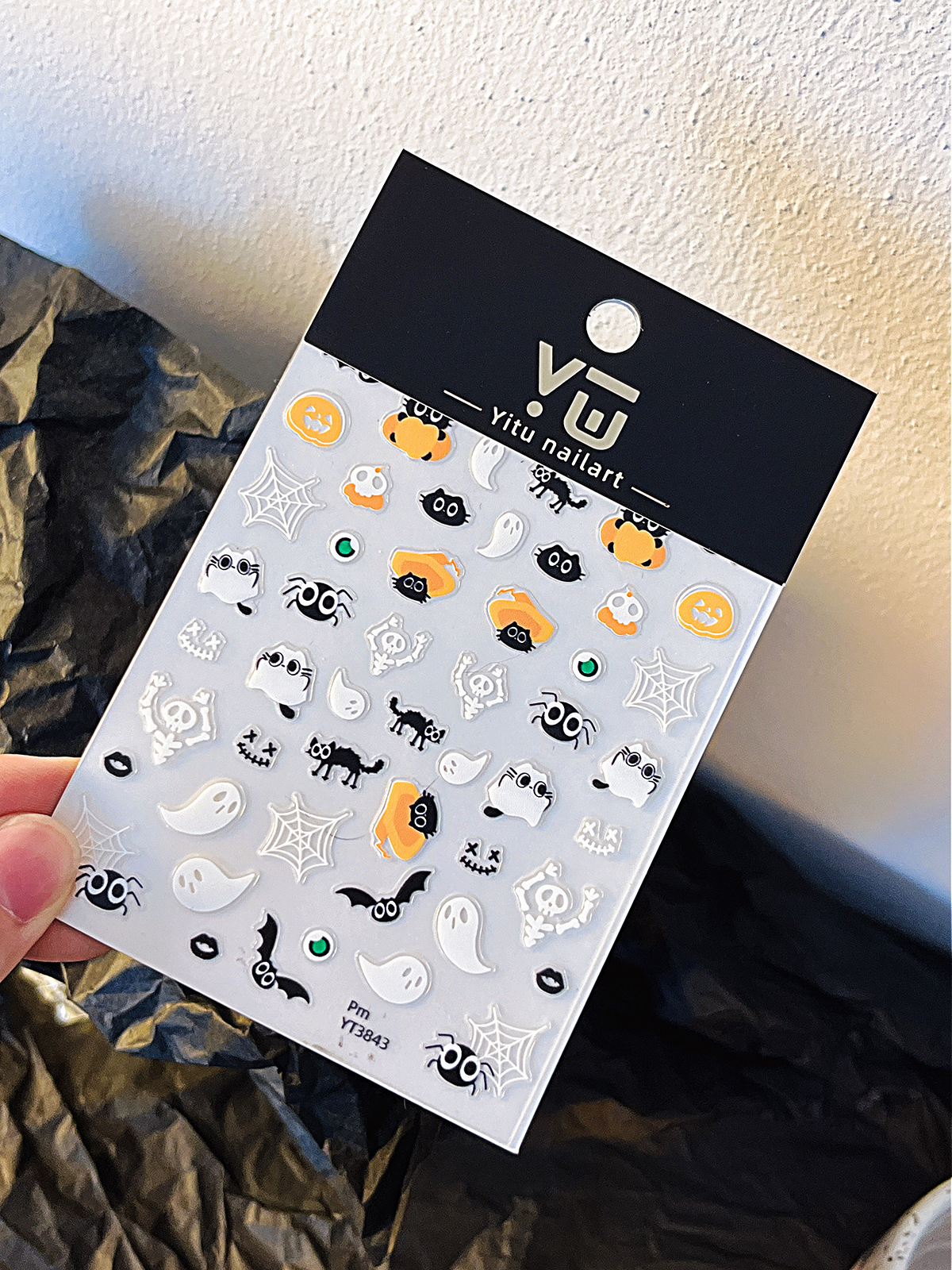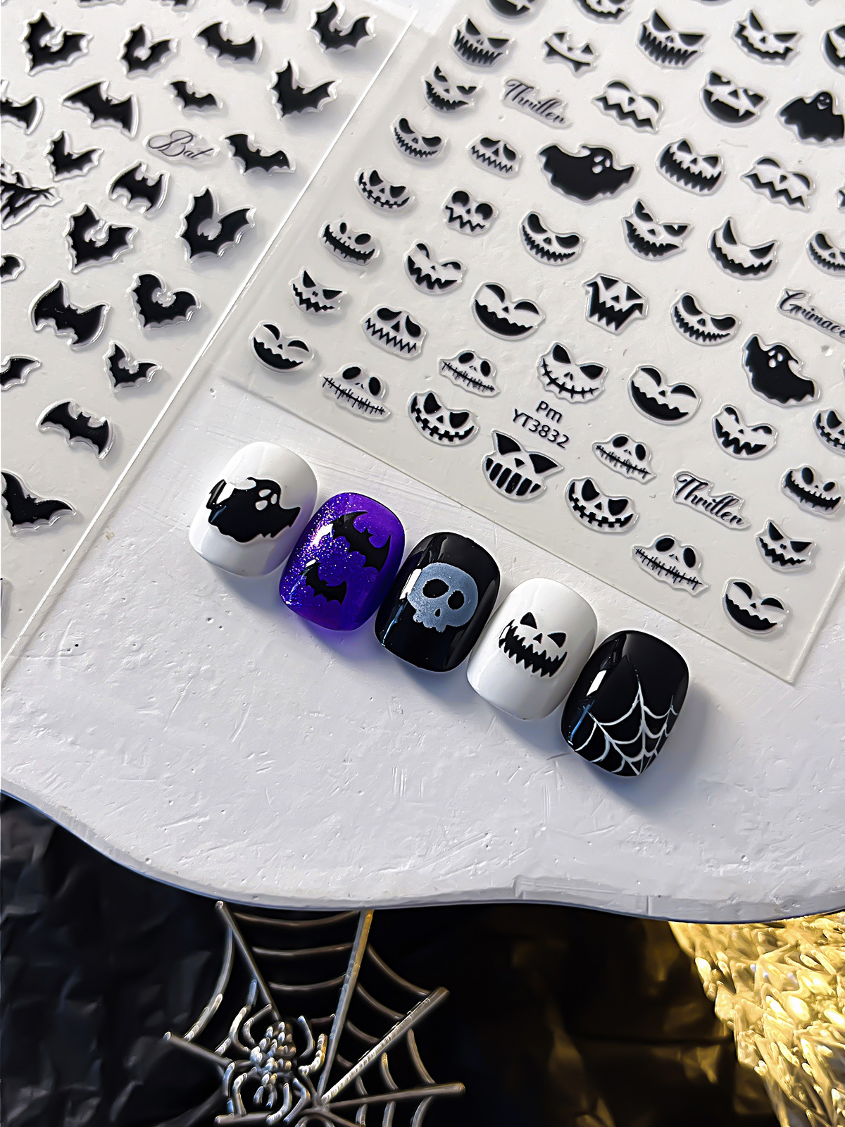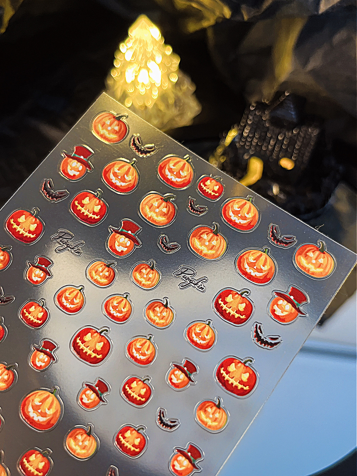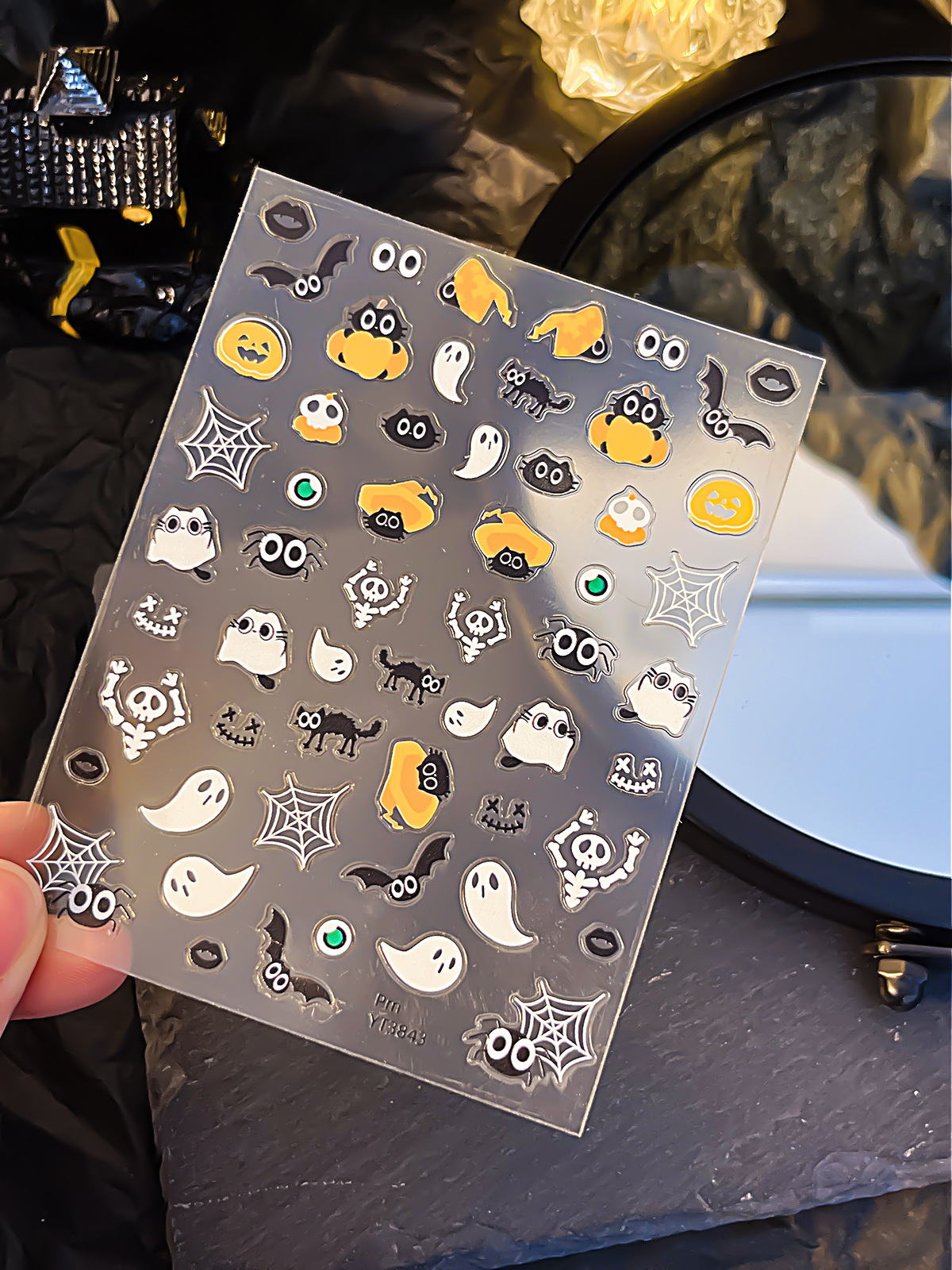 할로윈 시리즈 네일 아트 스티커 절묘한 복고풍 스타일 재미있는 유령 호박 접착제 네일 장식 도매