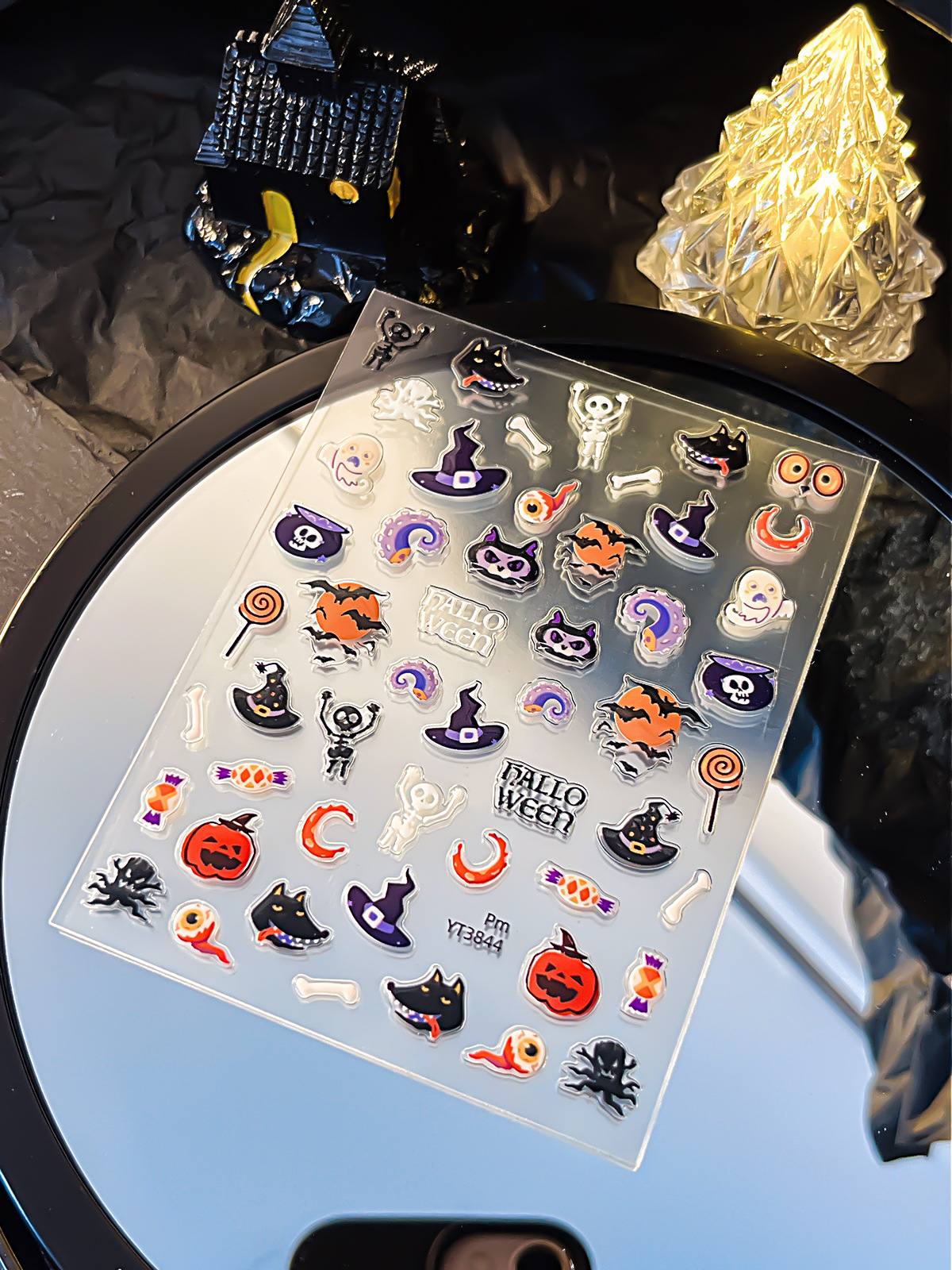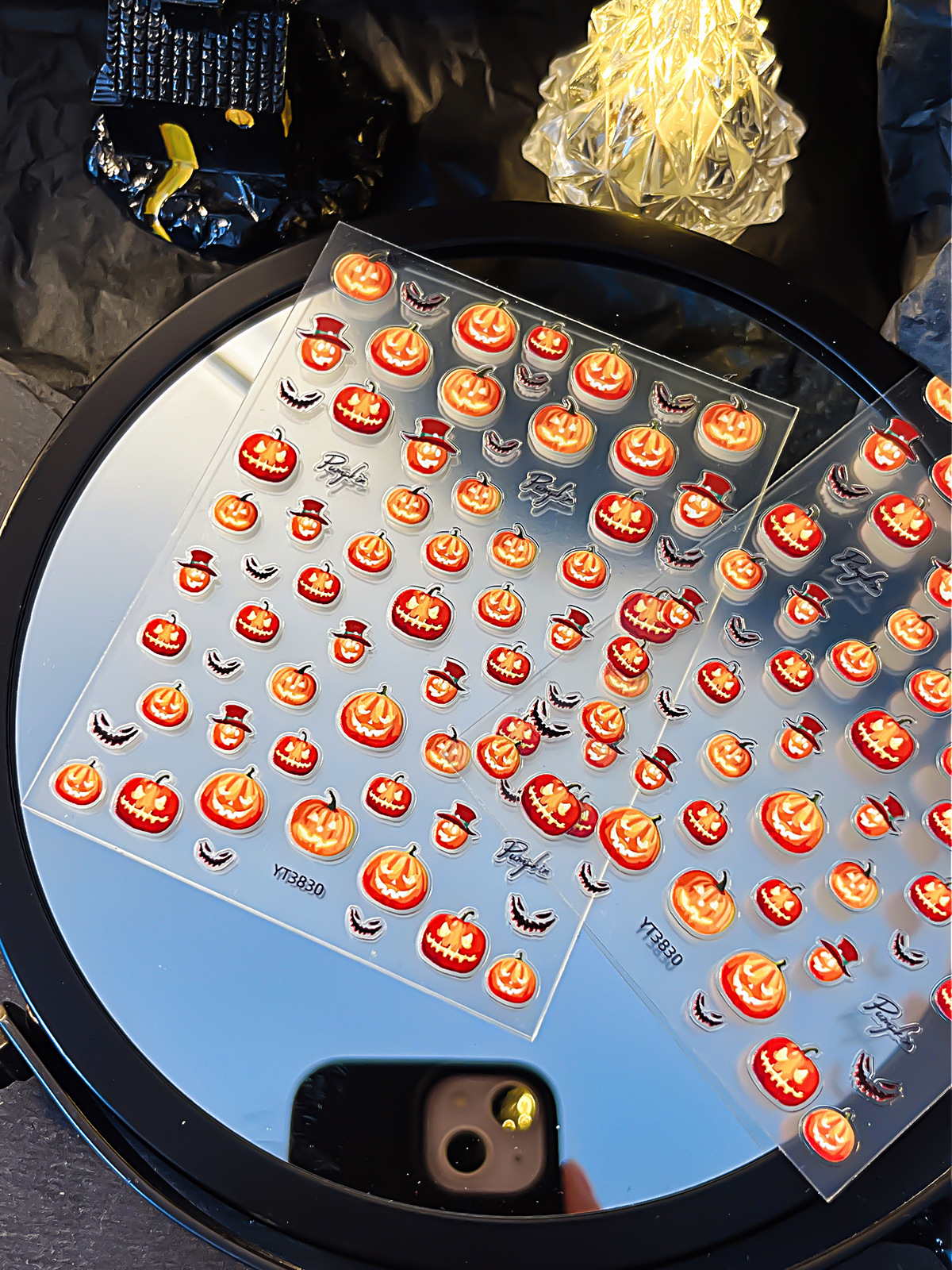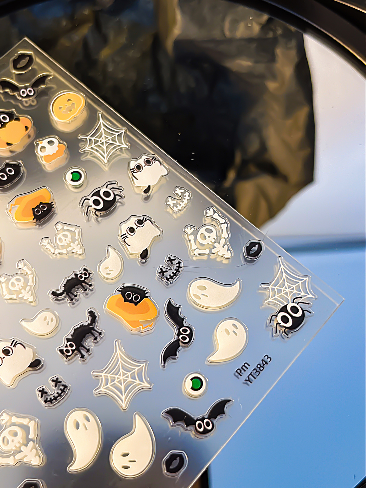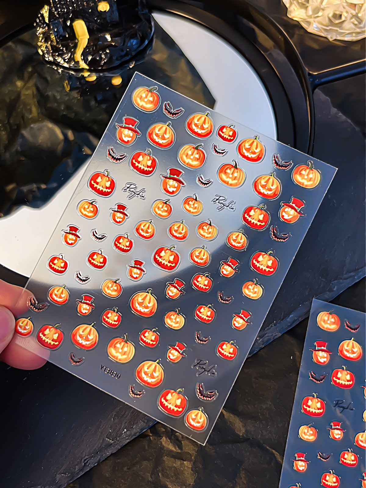 할로윈 시리즈 네일 아트 스티커 절묘한 복고풍 스타일 재미있는 유령 호박 접착제 네일 장식 도매