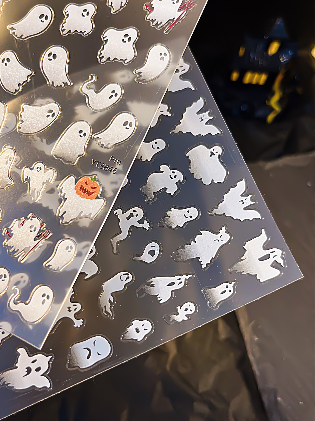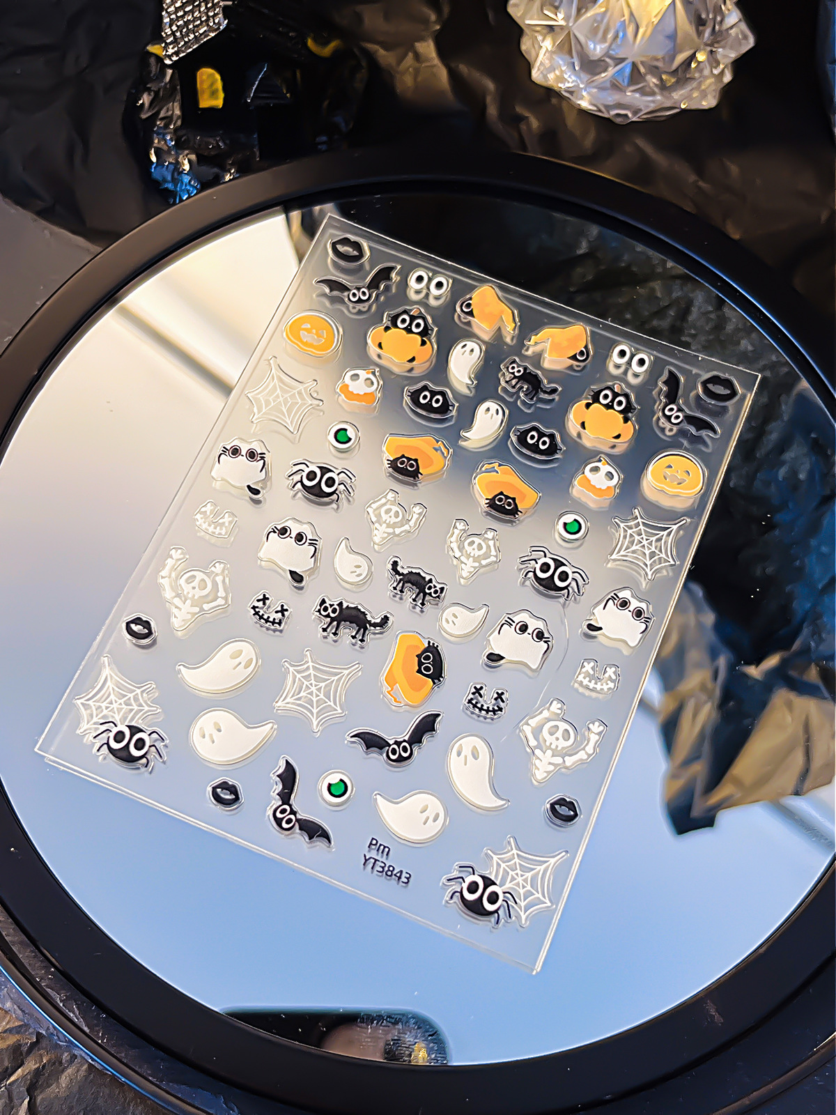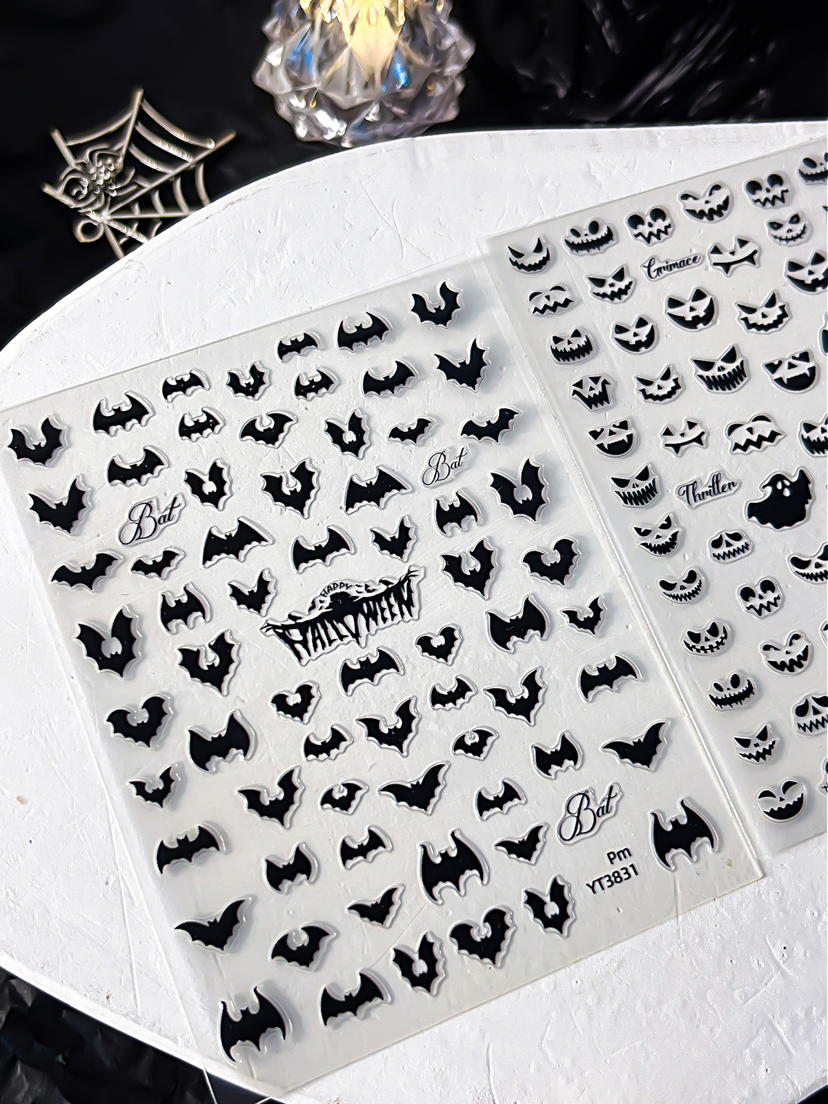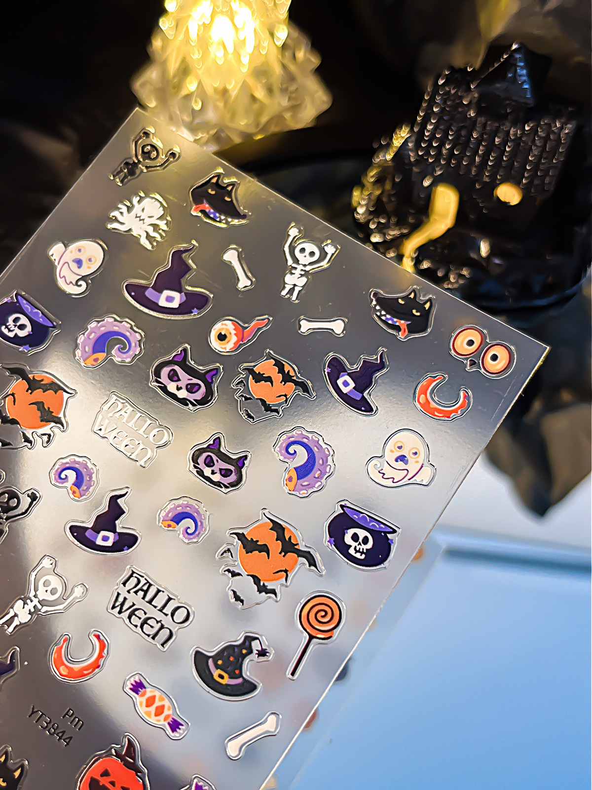 할로윈 시리즈 네일 아트 스티커 절묘한 복고풍 스타일 재미있는 유령 호박 접착제 네일 장식 도매