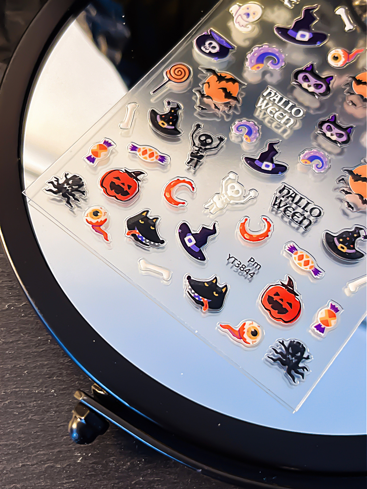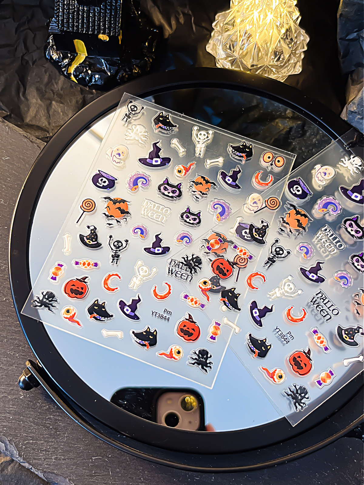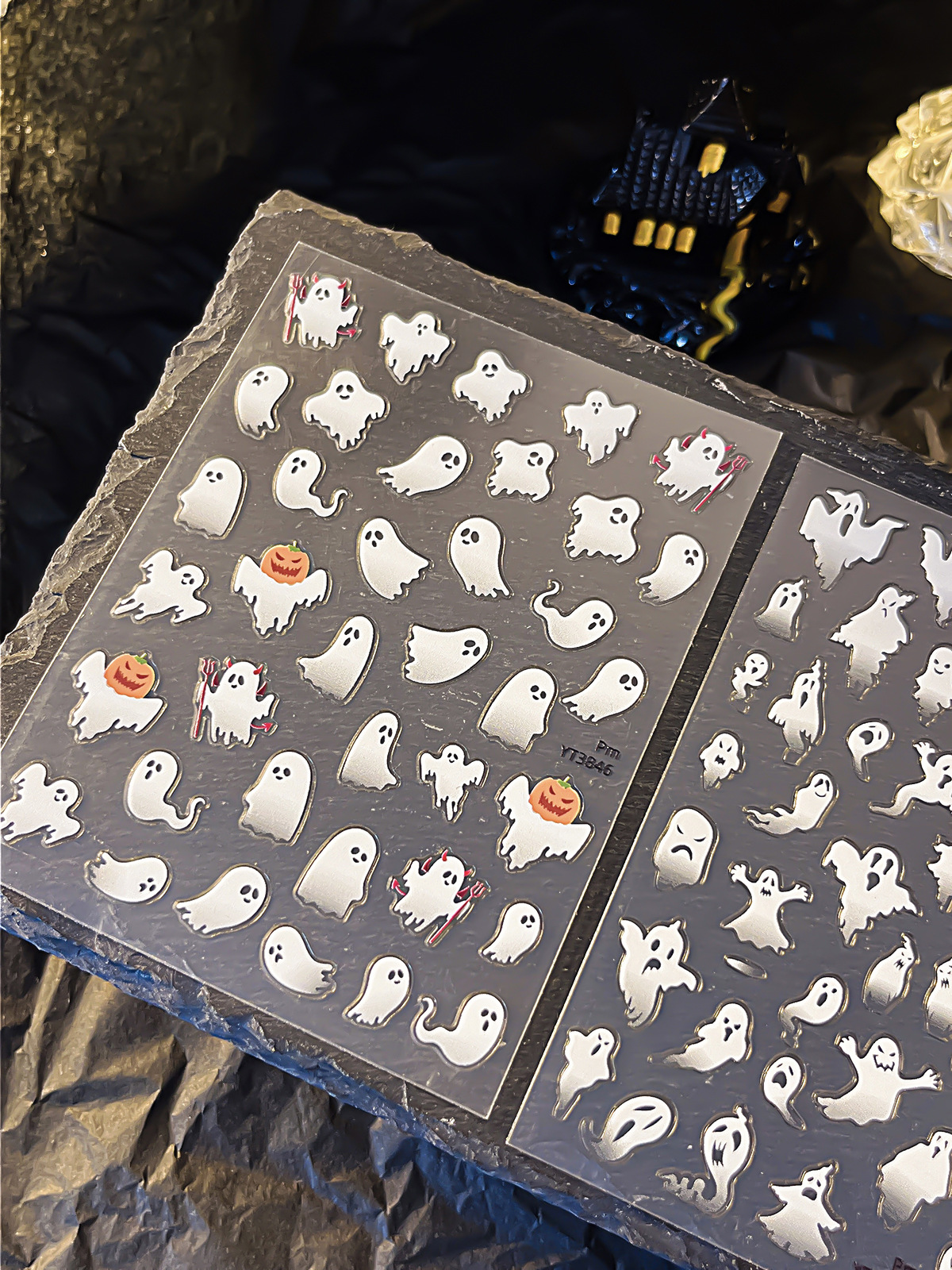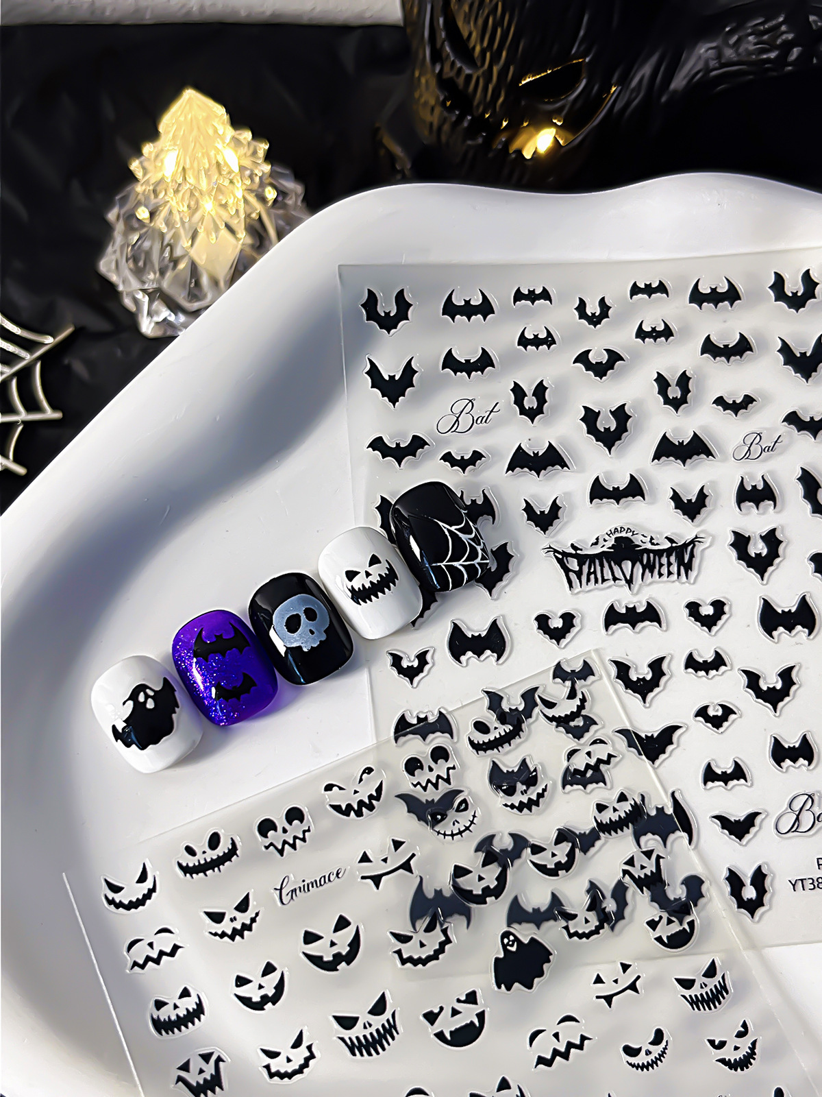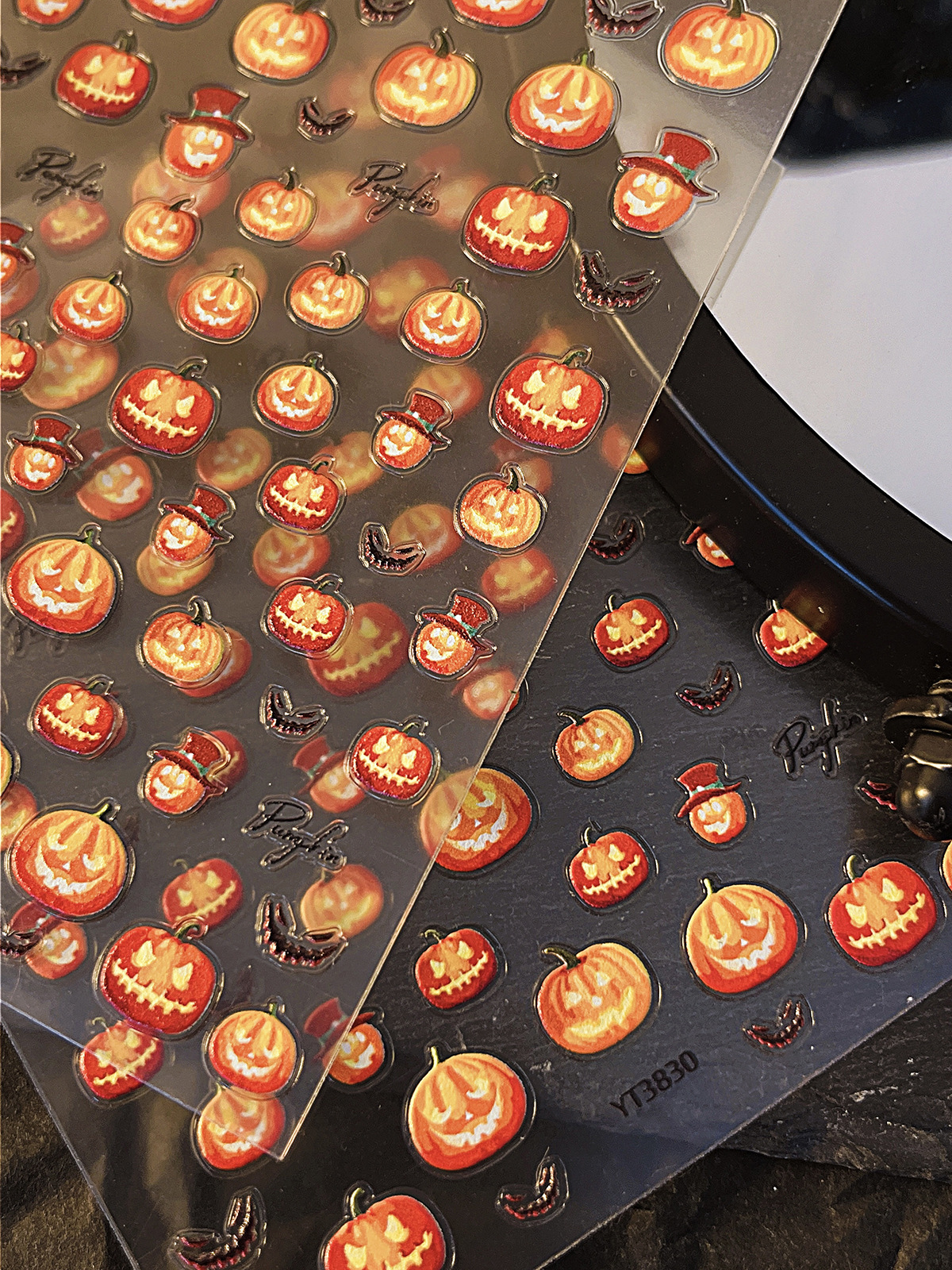 할로윈 시리즈 네일 아트 스티커 절묘한 복고풍 스타일 재미있는 유령 호박 접착제 네일 장식 도매스토어 가기