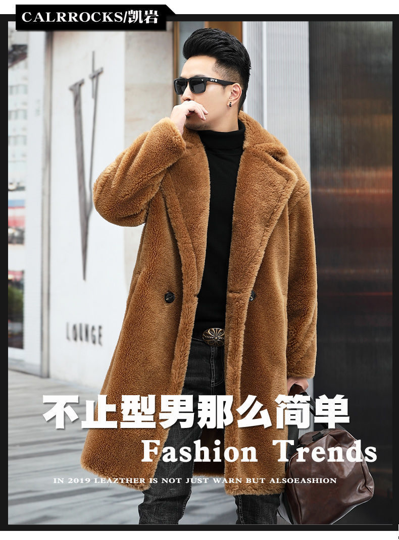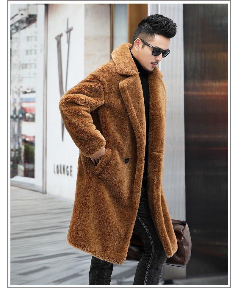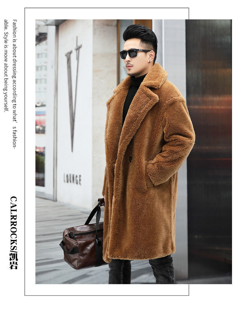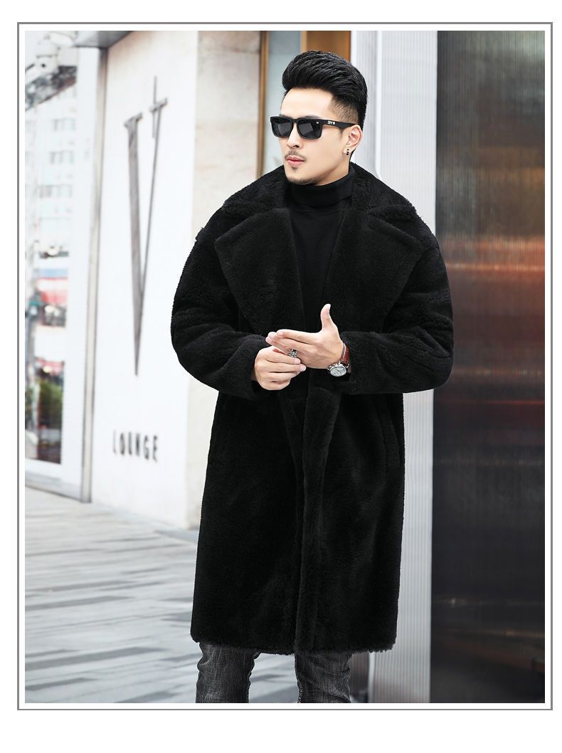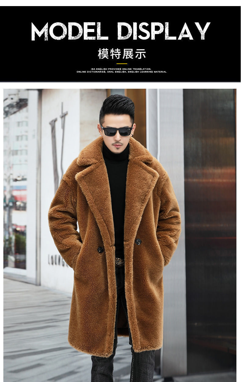 따뜻한 겨울 남자 가죽 2024 새로운 캐시미어 긴 알파카 코트 남자 모피 코트 코트스토어 가기