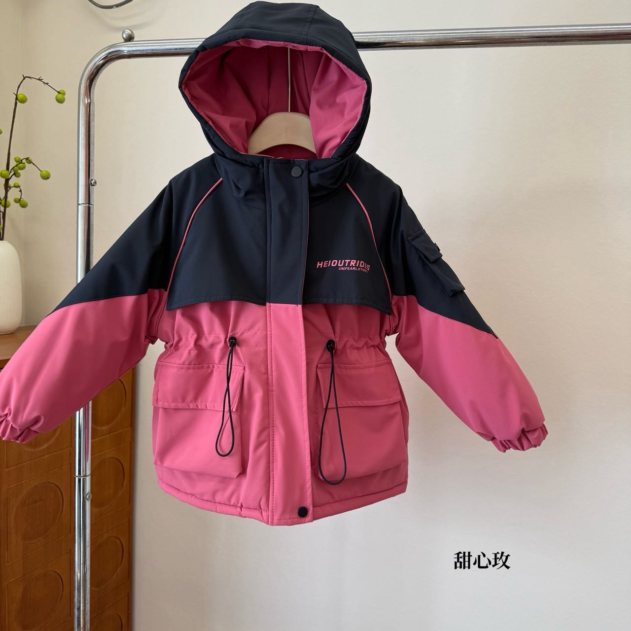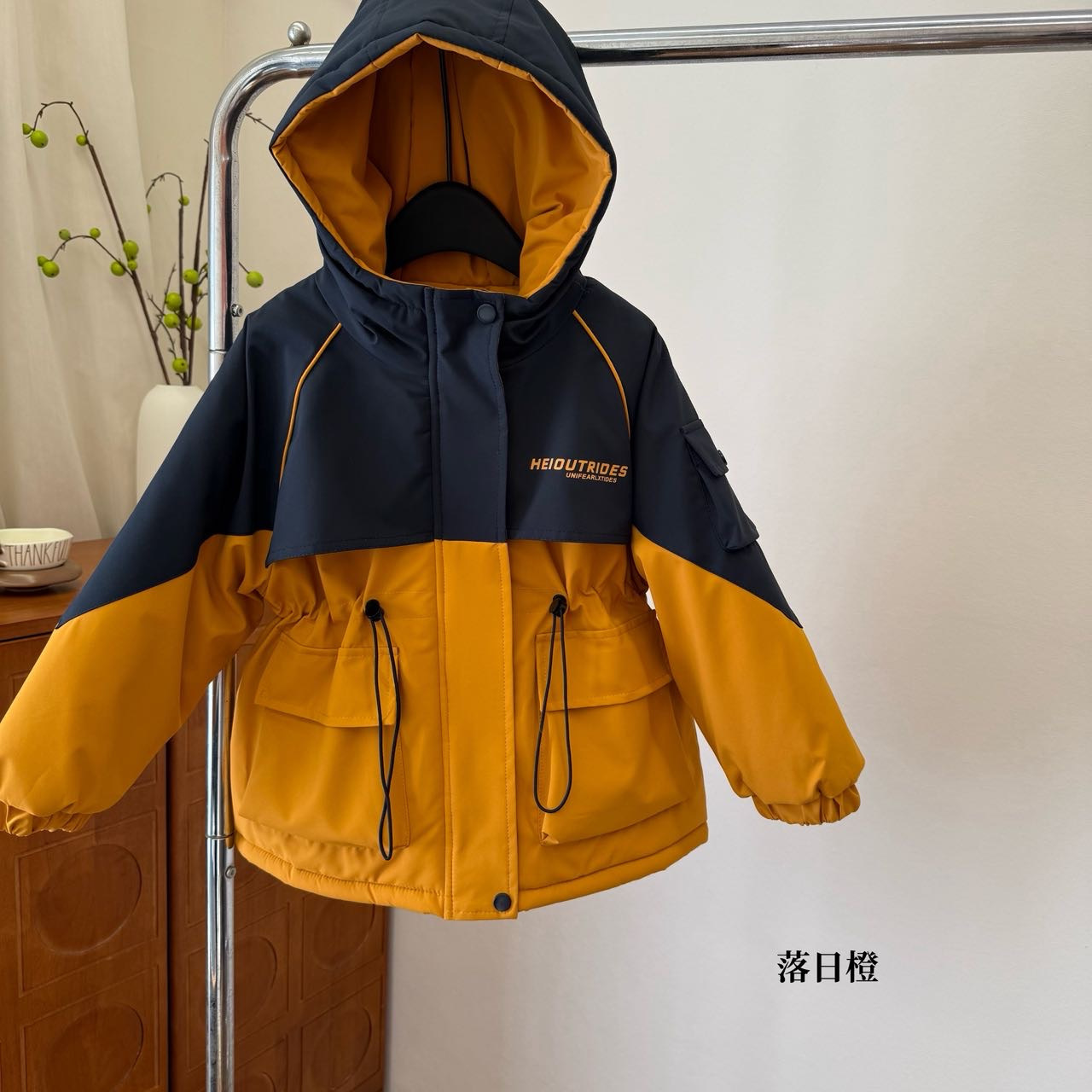 2025 어린이 겨울용 남녀 공용 플리스 안감 두꺼운 재킷 어린이용 따뜻한 작업복 스타일 후드 패딩 재킷