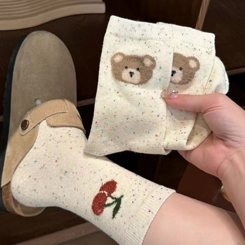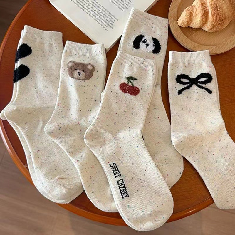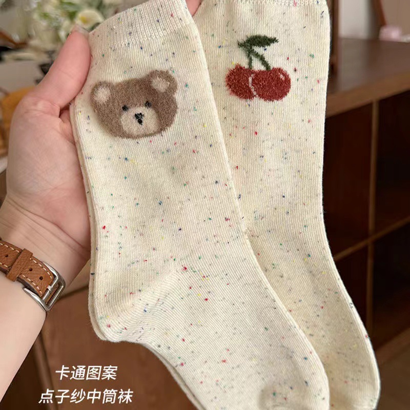 양말 여성의 가을과 겨울 만화 잠금 중간 튜브 양말 일본 스타일 귀여운 학술 스타일 포인트 원사 양말은 트렌디 한 JK 양말